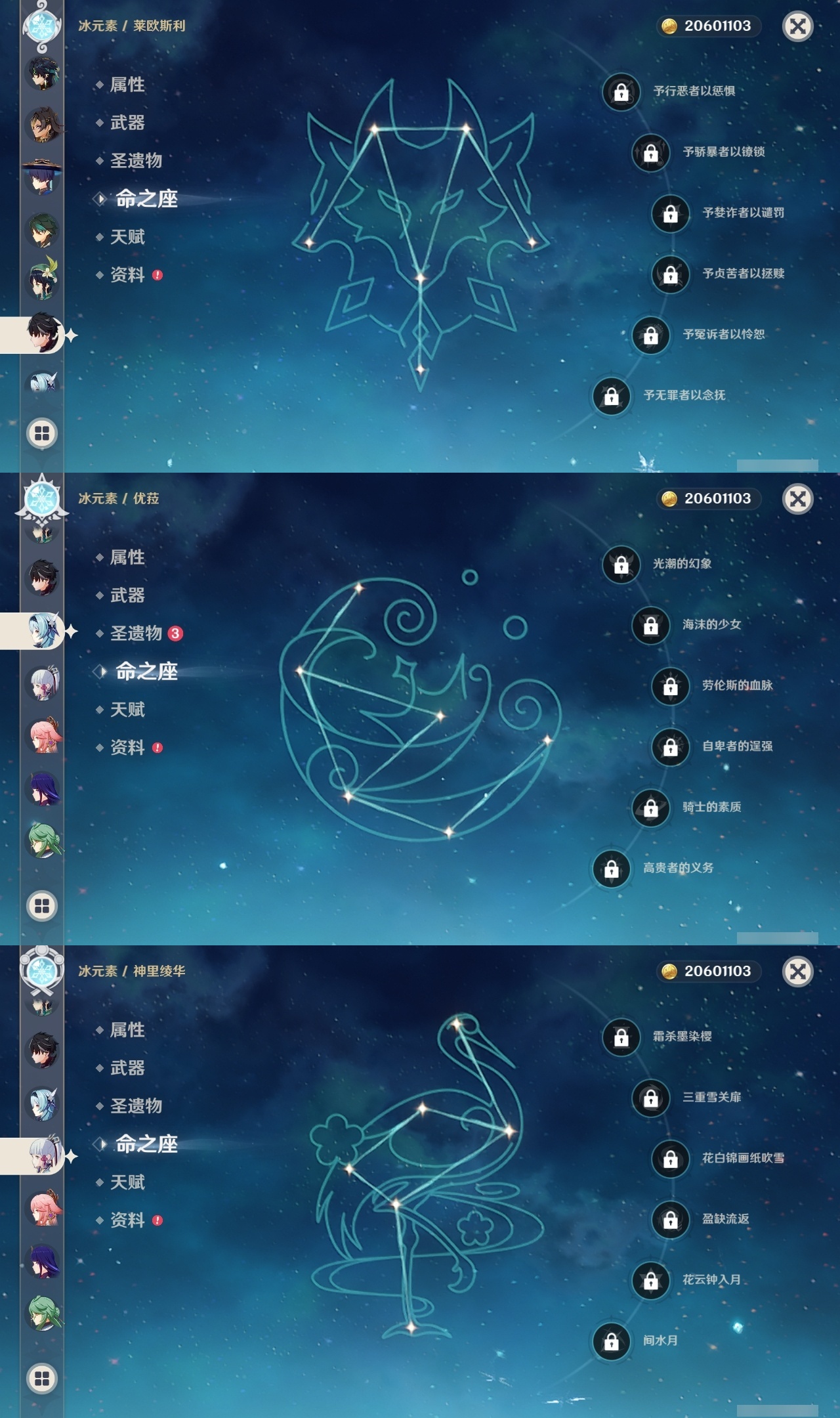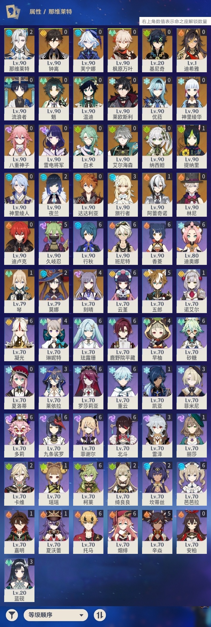 【原神】【lyys8299】冒险等级:60,五星数量:37,五星角色:刻晴 4命那维莱特 2命莫娜 2命夜兰 2命阿蕾奇诺 1命琴 1命提纳里 1命基尼奇白术神里绫华温迪优菈迪希雅钟离达达利亚八重神子神里绫人林尼莱欧斯利芙宁娜纳西妲艾尔海森流浪者迪卢克枫原万叶魈雷电将军__五星武器:万世流涌大典风鹰剑和璞鸢天空之刃天空之翼薙草之稻光冬极白星神乐之真意若水猎人之径__四星角色:班尼特 6命行秋 6命九条裟罗 6命香菱 6命鹿野院平藏 6命珐露珊 6命凝光 6命迪奥娜 6命砂糖 6命多莉 6命柯莱 6命芭芭拉 6命云堇 6命托马 6命烟绯 6命重云 6命罗莎莉亚 6命菲谢尔 6命北斗 6命久岐忍 5命五郎 5命辛焱 5命早柚 4命琳妮特 4命莱依拉 3命蓝砚 3命雷泽 3命菲米尼 3命绮良良 2命坎蒂丝 2命卡维 2命瑶瑶 1命诺艾尔 1命夏沃蕾 1命嘉明 1命夏洛蒂