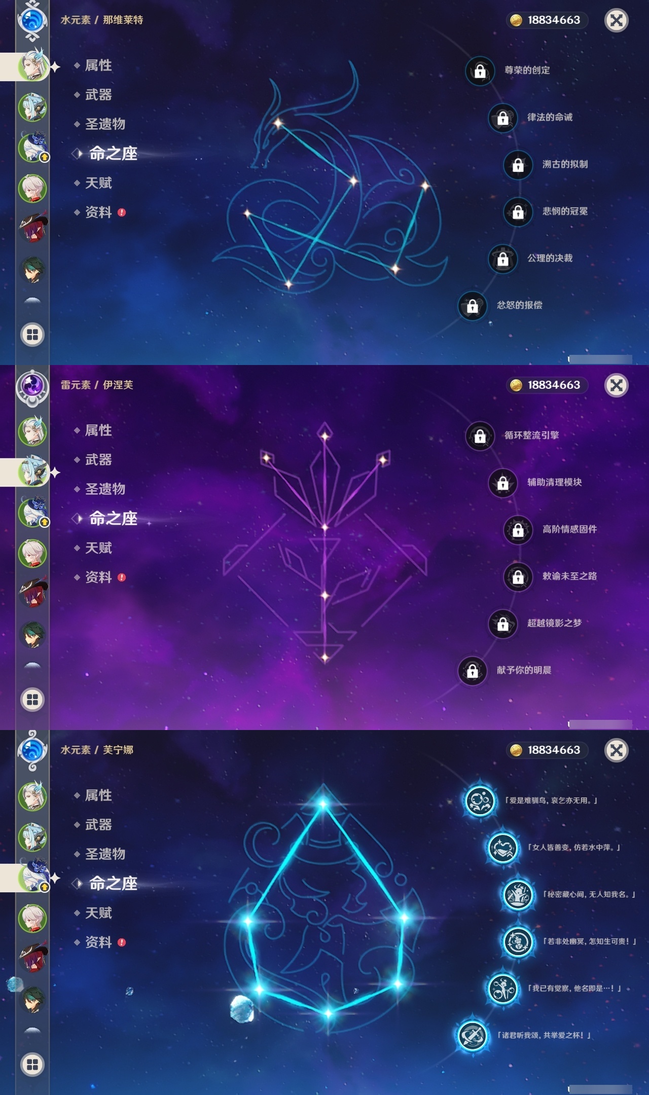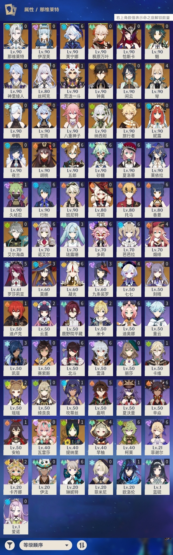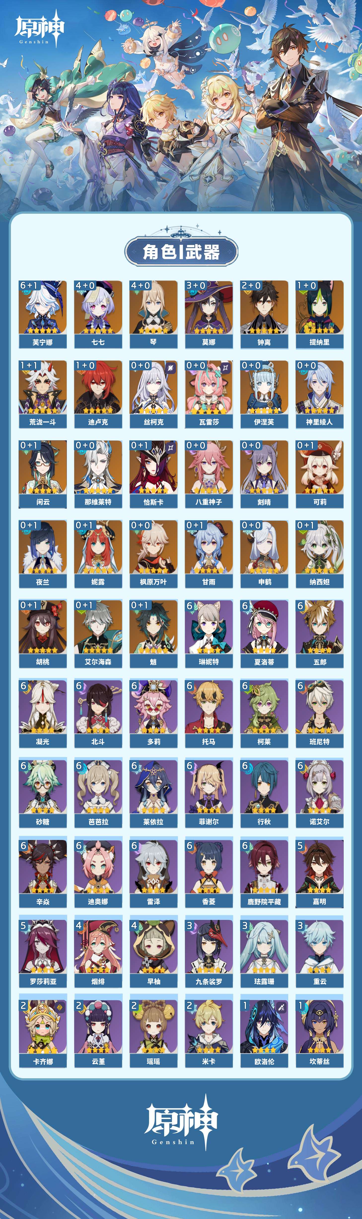 【原神】【lyys8313】冒险等级:60,五星数量:46,五星角色:芙宁娜 6命七七 4命琴 4命莫娜 3命钟离 2命迪卢克 1命荒泷一斗 1命提纳里 1命恰斯卡申鹤瓦雷莎八重神子神里绫人那维莱特夜兰闲云丝柯克妮露伊涅芙纳西妲艾尔海森枫原万叶甘雨魈胡桃可莉刻晴__五星武器:碧落之珑星鹫赤羽静水流涌之辉鹤鸣余音裁叶萃光阿莫斯之弓飞雷之弦振和璞鸢护摩之杖四风原典天空之傲天空之卷天空之刃天空之翼赤角石溃杵若水圣显之钥千夜浮梦白雨心弦__四星角色:班尼特 6命行秋 6命香菱 6命鹿野院平藏 6命凝光 6命迪奥娜 6命砂糖 6命莱依拉 6命多莉 6命柯莱 6命芭芭拉 6命托马 6命五郎 6命辛焱 6命诺艾尔 6命雷泽 6命菲谢尔 6命北斗 6命琳妮特 6命夏洛蒂 6命罗莎莉亚 5命嘉明 5命早柚 4命烟绯 4命九条裟罗 3命珐露珊 3命重云 3命卡齐娜 2命瑶瑶 2命米卡 2命云堇 2命久岐忍 1命坎蒂丝 1命卡维 1命欧洛伦 1命夏沃蕾 1命绮良良蓝砚菲米尼伊法爱诺赛索斯