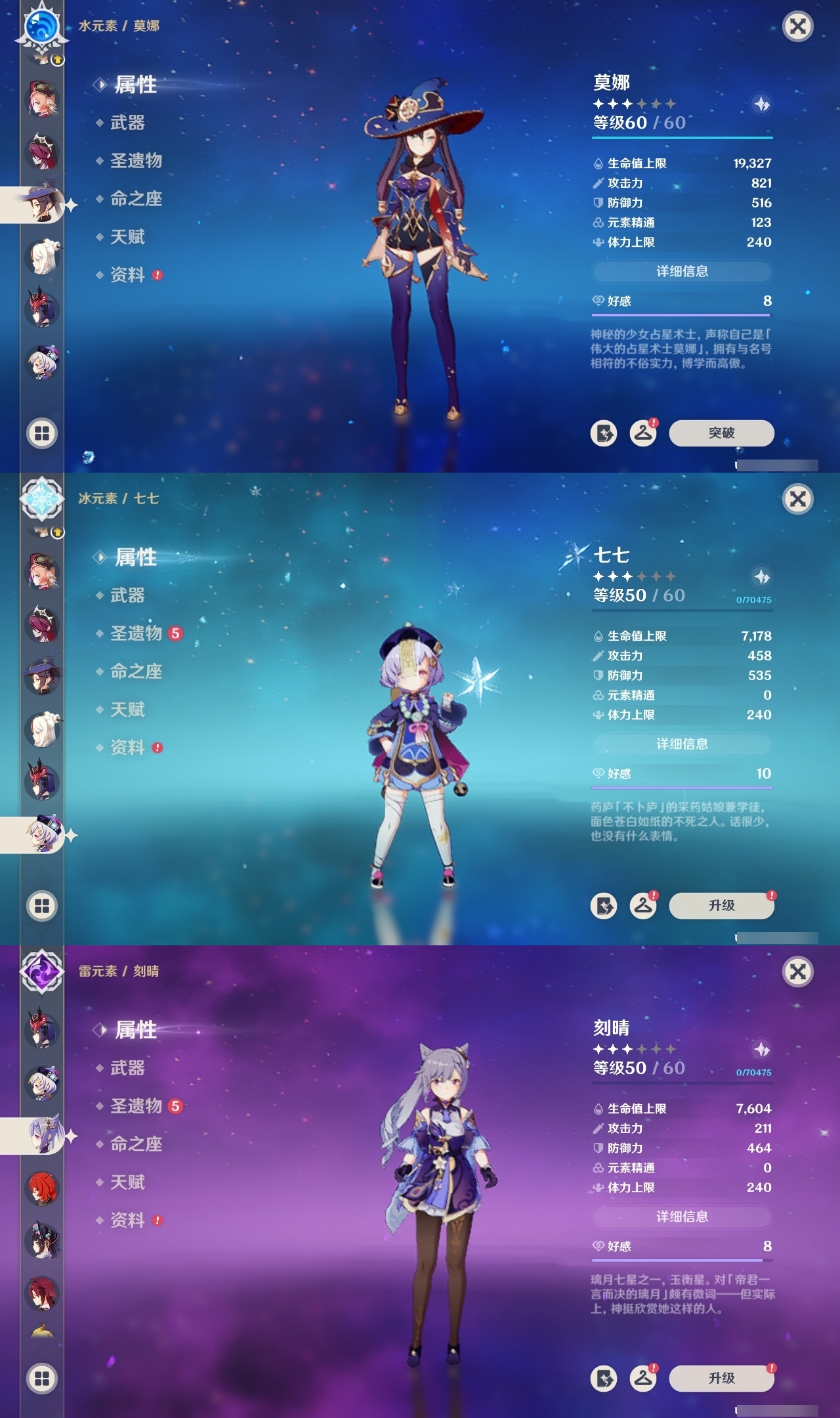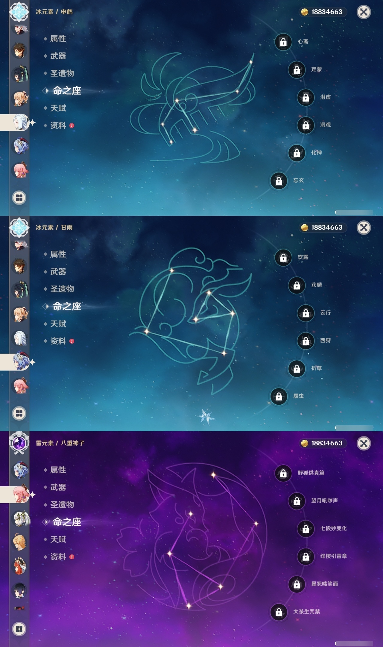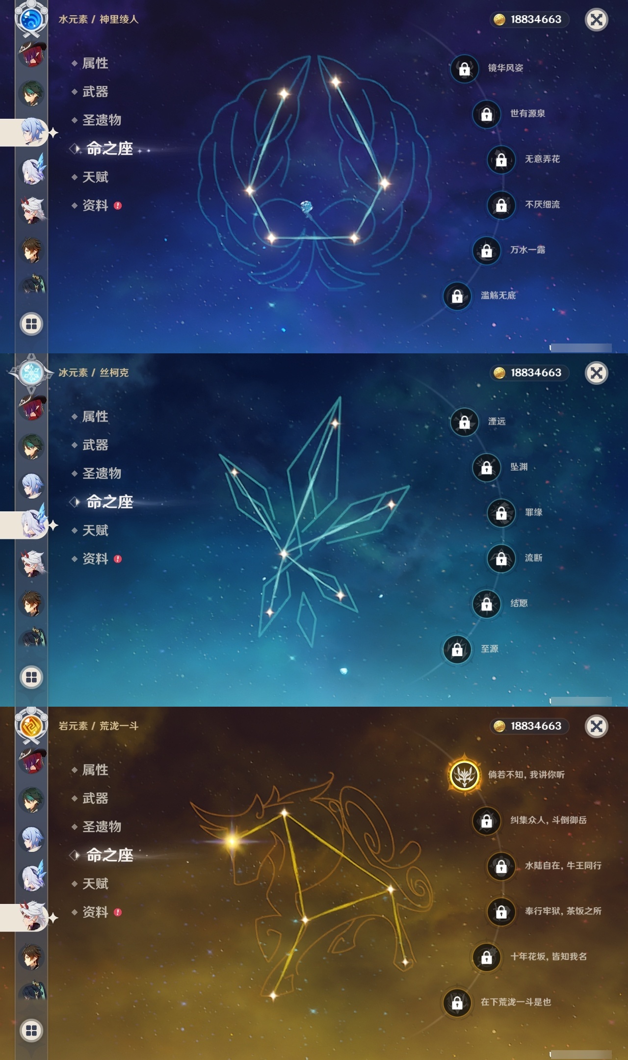 【原神】【lyys8313】冒险等级:60,五星数量:46,五星角色:芙宁娜 6命七七 4命琴 4命莫娜 3命钟离 2命迪卢克 1命荒泷一斗 1命提纳里 1命恰斯卡申鹤瓦雷莎八重神子神里绫人那维莱特夜兰闲云丝柯克妮露伊涅芙纳西妲艾尔海森枫原万叶甘雨魈胡桃可莉刻晴__五星武器:碧落之珑星鹫赤羽静水流涌之辉鹤鸣余音裁叶萃光阿莫斯之弓飞雷之弦振和璞鸢护摩之杖四风原典天空之傲天空之卷天空之刃天空之翼赤角石溃杵若水圣显之钥千夜浮梦白雨心弦__四星角色:班尼特 6命行秋 6命香菱 6命鹿野院平藏 6命凝光 6命迪奥娜 6命砂糖 6命莱依拉 6命多莉 6命柯莱 6命芭芭拉 6命托马 6命五郎 6命辛焱 6命诺艾尔 6命雷泽 6命菲谢尔 6命北斗 6命琳妮特 6命夏洛蒂 6命罗莎莉亚 5命嘉明 5命早柚 4命烟绯 4命九条裟罗 3命珐露珊 3命重云 3命卡齐娜 2命瑶瑶 2命米卡 2命云堇 2命久岐忍 1命坎蒂丝 1命卡维 1命欧洛伦 1命夏沃蕾 1命绮良良蓝砚菲米尼伊法爱诺赛索斯