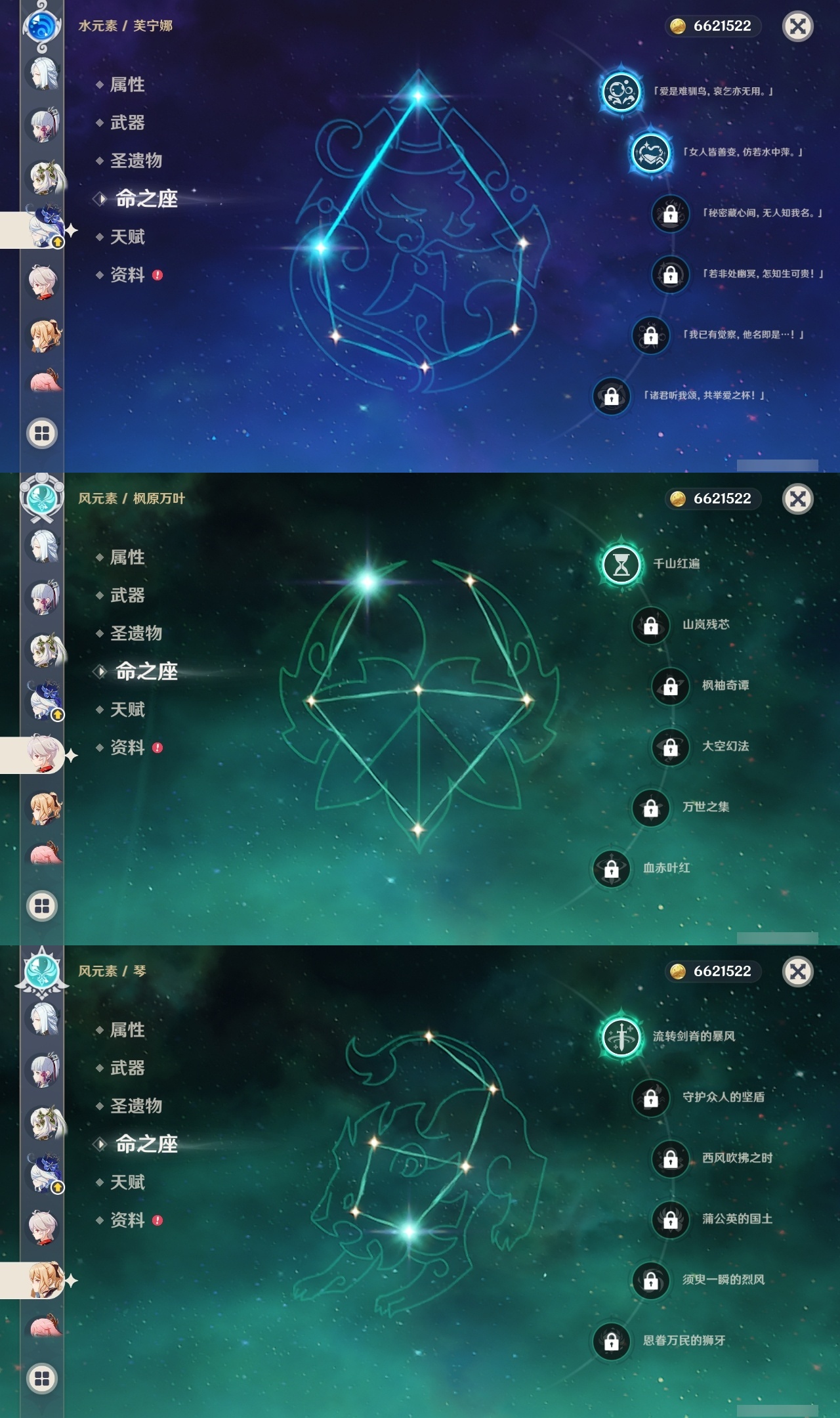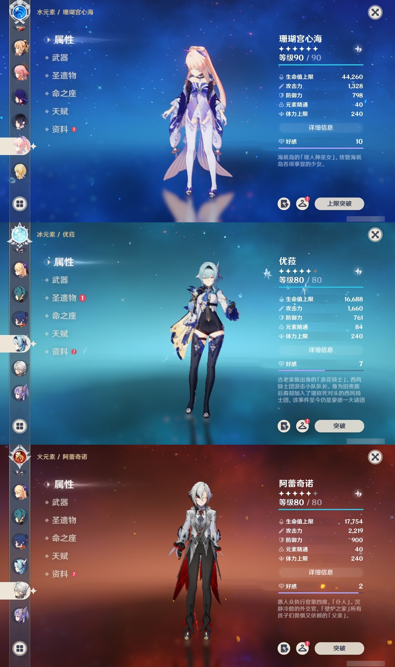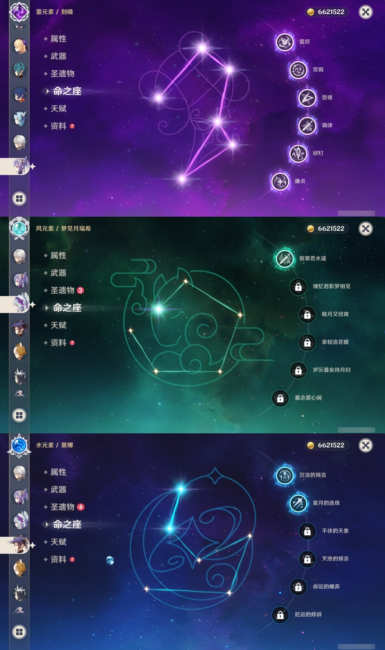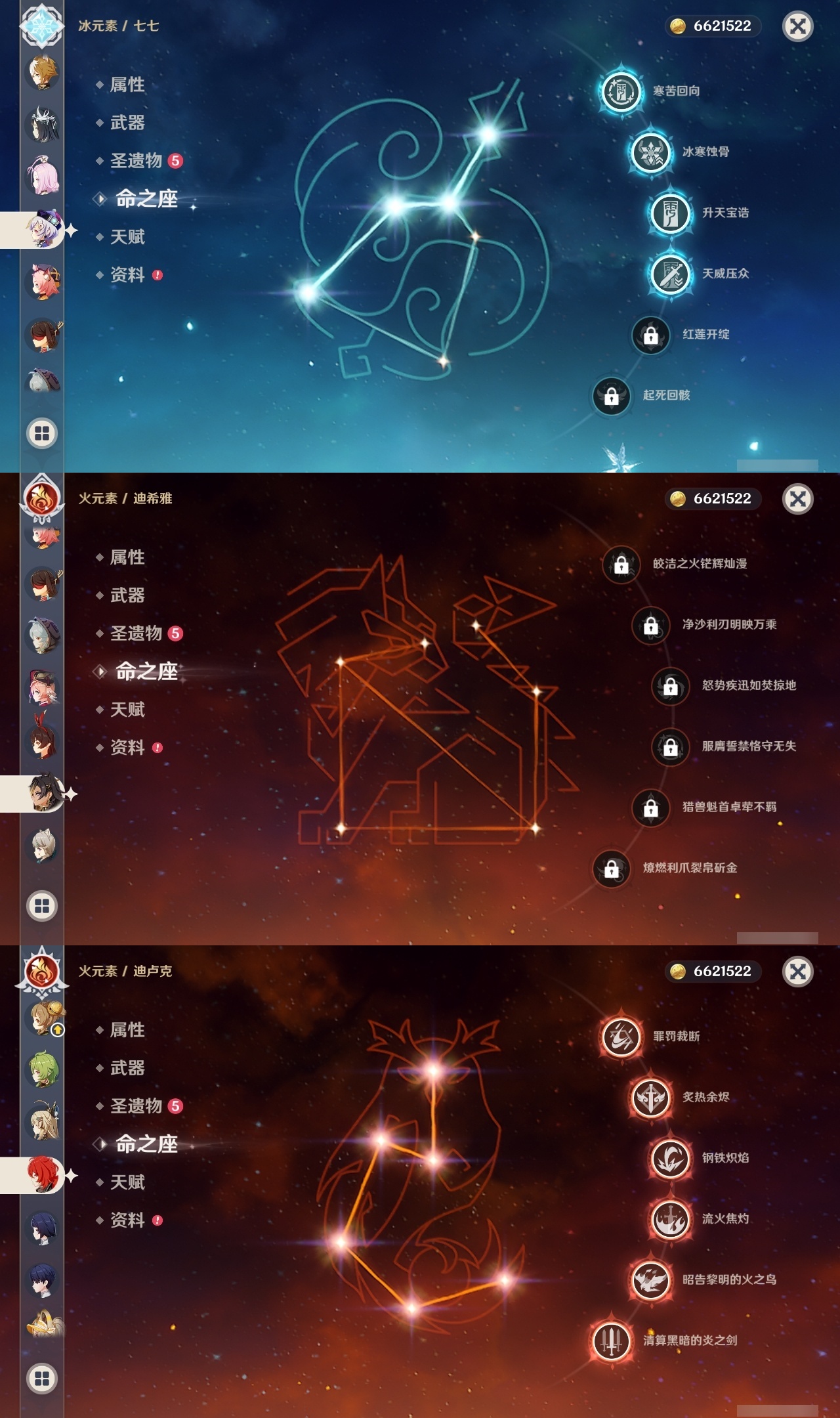 【原神】满命,冒险等级:60,五星数量:38,五星角色:迪卢克 6命刻晴 6命宵宫 6命八重神子 6命七七 4命神里绫华 4命雷电将军 3命芙宁娜 2命莫娜 2命申鹤 2命夜兰 2命梦见月瑞希 1命枫原万叶 1命琴 1命纳西妲 1命珊瑚宫心海希诺宁优菈迪希雅钟离阿蕾奇诺__五星武器:飞雷之弦振 2精四风原典 2精天空之卷 2精冬极白星 2精神乐之真意 2精赤月之形不灭月华和璞鸢天空之翼雾切之回光薙草之稻光息灾贯虹之槊若水千夜浮梦__四星角色:班尼特 6命行秋 6命九条裟罗 6命香菱 6命久岐忍 6命鹿野院平藏 6命凝光 6命迪奥娜 6命砂糖 6命瑶瑶 6命莱依拉 6命米卡 6命柯莱 6命芭芭拉 6命云堇 6命早柚 6命托马 6命五郎 6命烟绯 6命辛焱 6命诺艾尔 6命罗莎莉亚 6命雷泽 6命菲谢尔 6命北斗 6命蓝砚 4命卡齐娜 3命珐露珊 3命重云 3命多莉 2命爱诺 1命奇偶·女性奇偶·男性绮良良坎蒂丝菲米尼琳妮特嘉明伊法