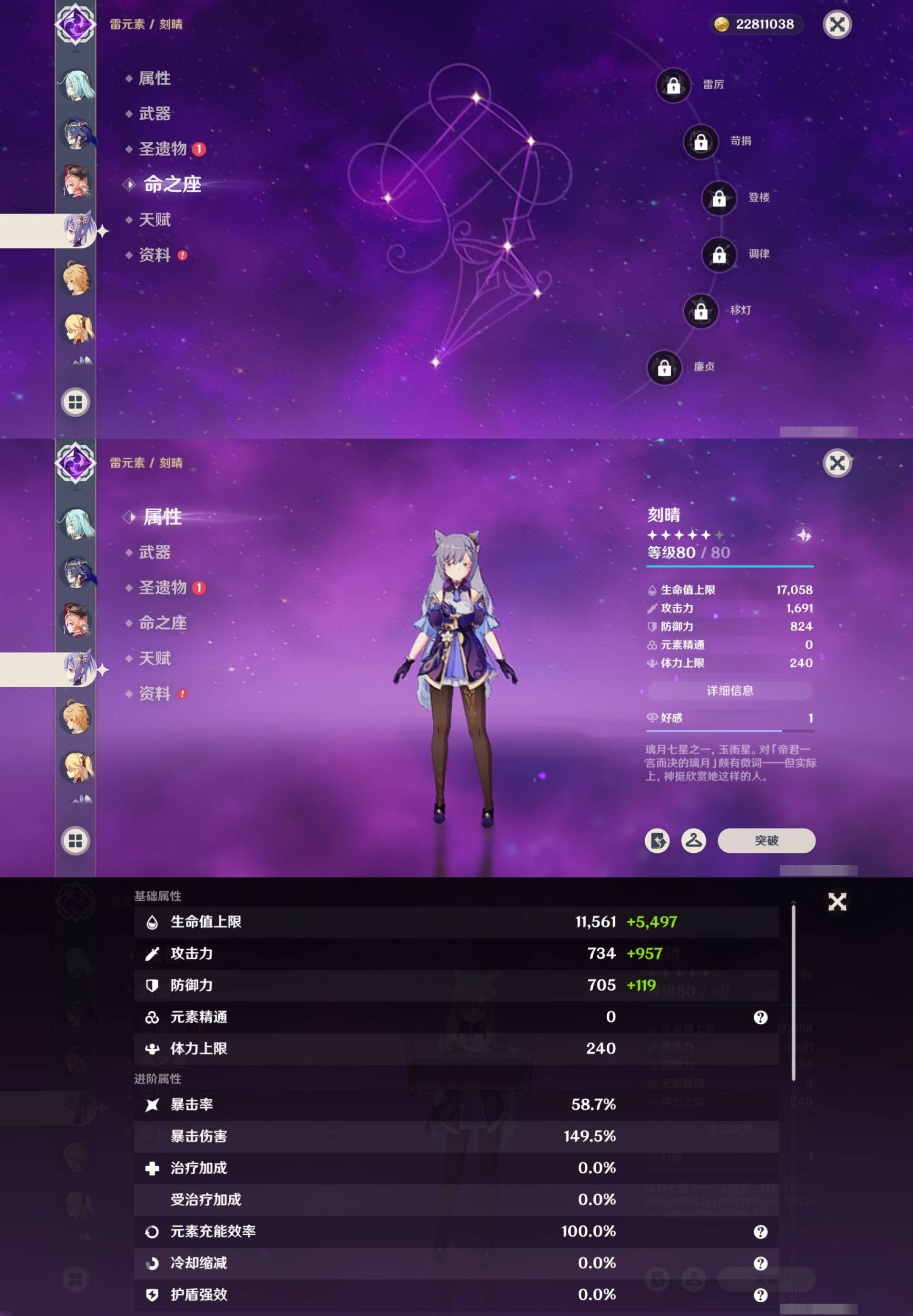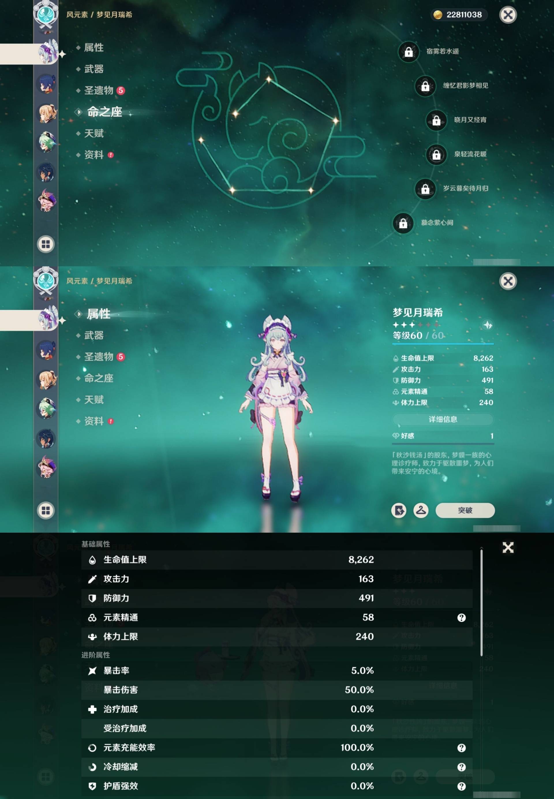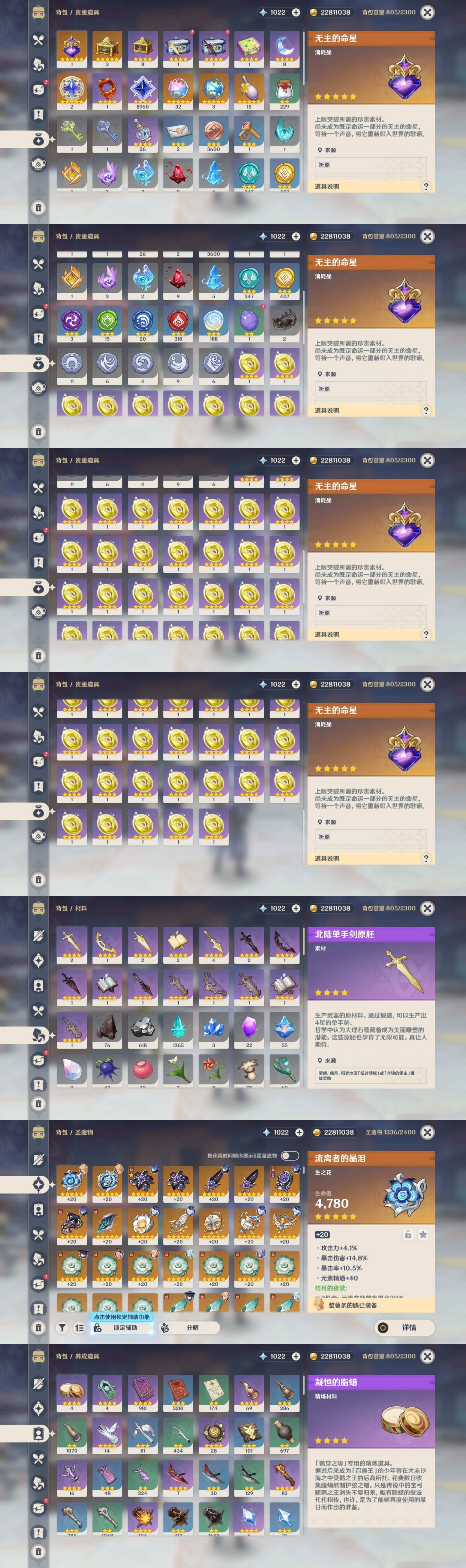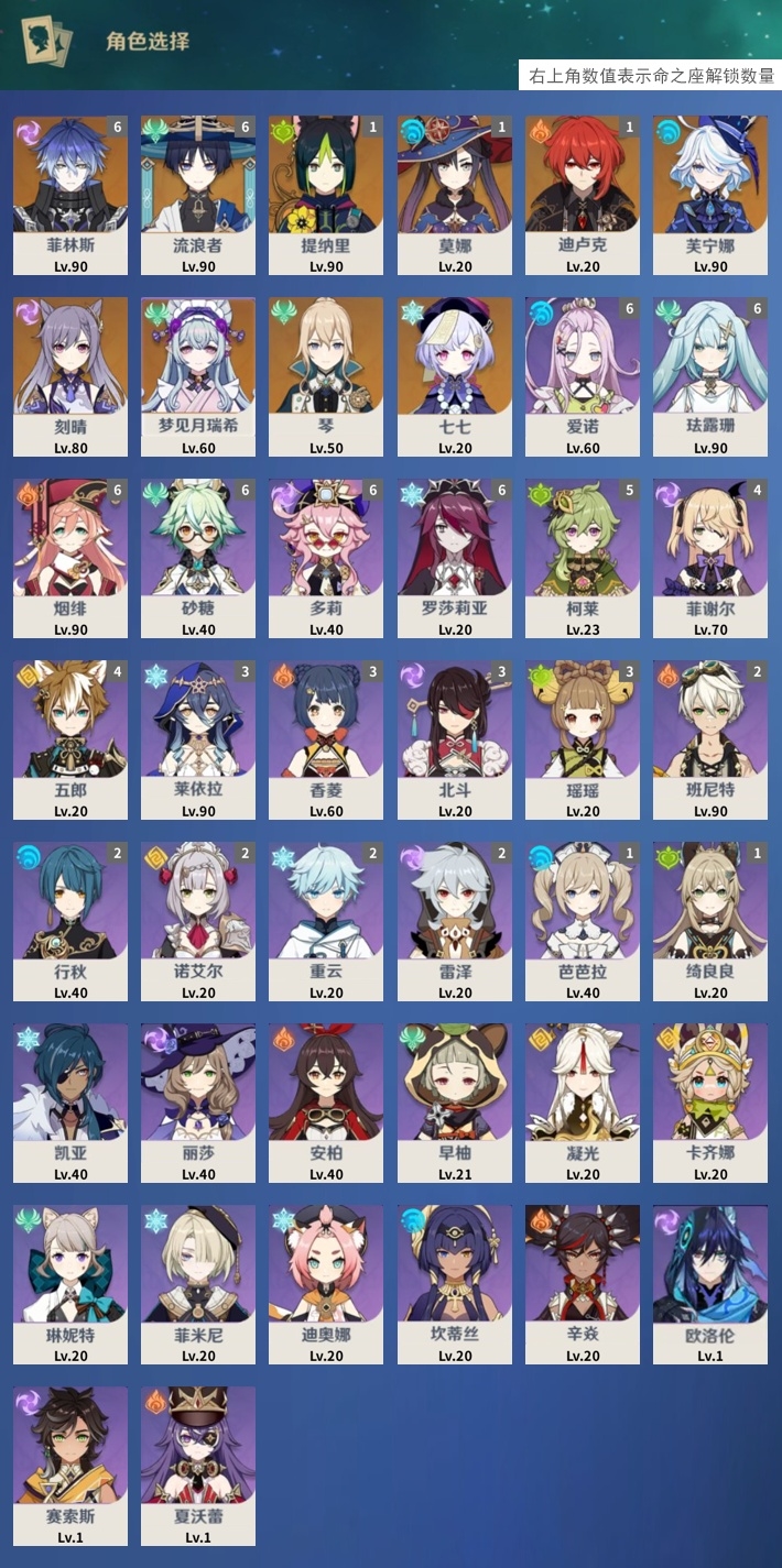 [14062891]25黄 风系:6命流浪者/0命梦见月瑞希/0命琴 火系:1命迪卢克 水系:1命莫娜/0命芙宁娜 冰系:0命七七 岩系: 雷系:0命刻晴 草系:1命提纳里 [四星角色等级及命座] 风系: 6命珐露珊/6命砂糖/0命早柚/0命琳妮特 火系: 6命烟绯/3命香菱/0命安柏/0命辛焱/0命夏沃蕾/2命班尼特 水系:2命行秋/1命芭芭拉/0命坎蒂丝 冰系:3命莱依拉/0命凯亚/0命菲米尼/6命罗莎莉亚/0命迪奥娜/2命重云 岩系:4命五郎/2命诺艾尔/0命凝光 雷系:4命菲谢尔/6命多莉/0命丽莎/3命北斗/2命雷泽/0命欧洛伦/0命赛索斯 草系:5命柯莱/3命瑶瑶/1命绮良良 [角色经验书] 紫色981/蓝色3281/绿色174 [小物品] 脆弱树脂8/嬗变之尘229 [特殊材料] [神瞳剩余数量] 风神瞳1/岩神瞳1/雷神瞳3/绯红玉髓9