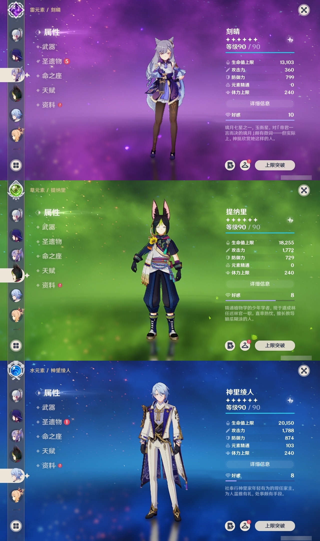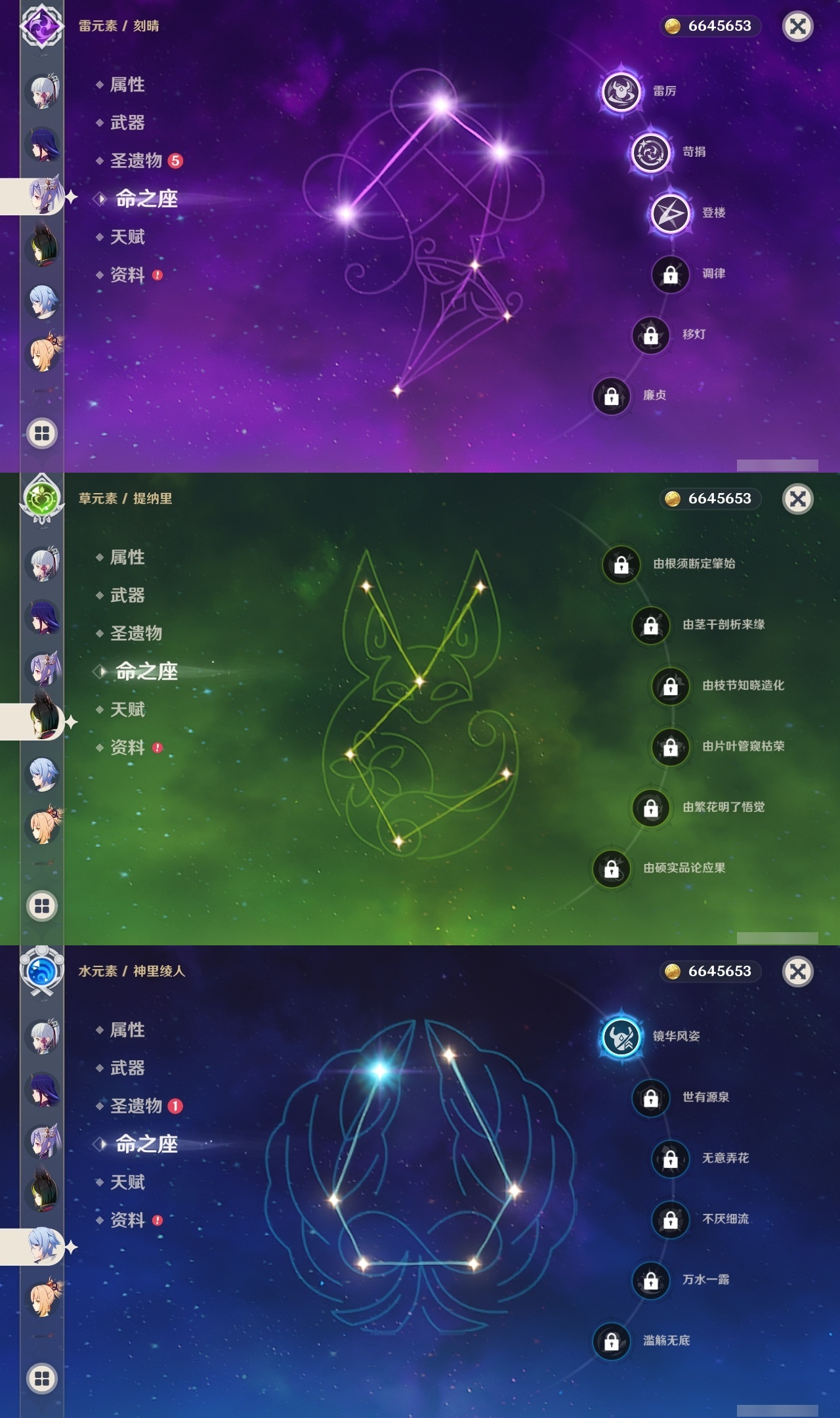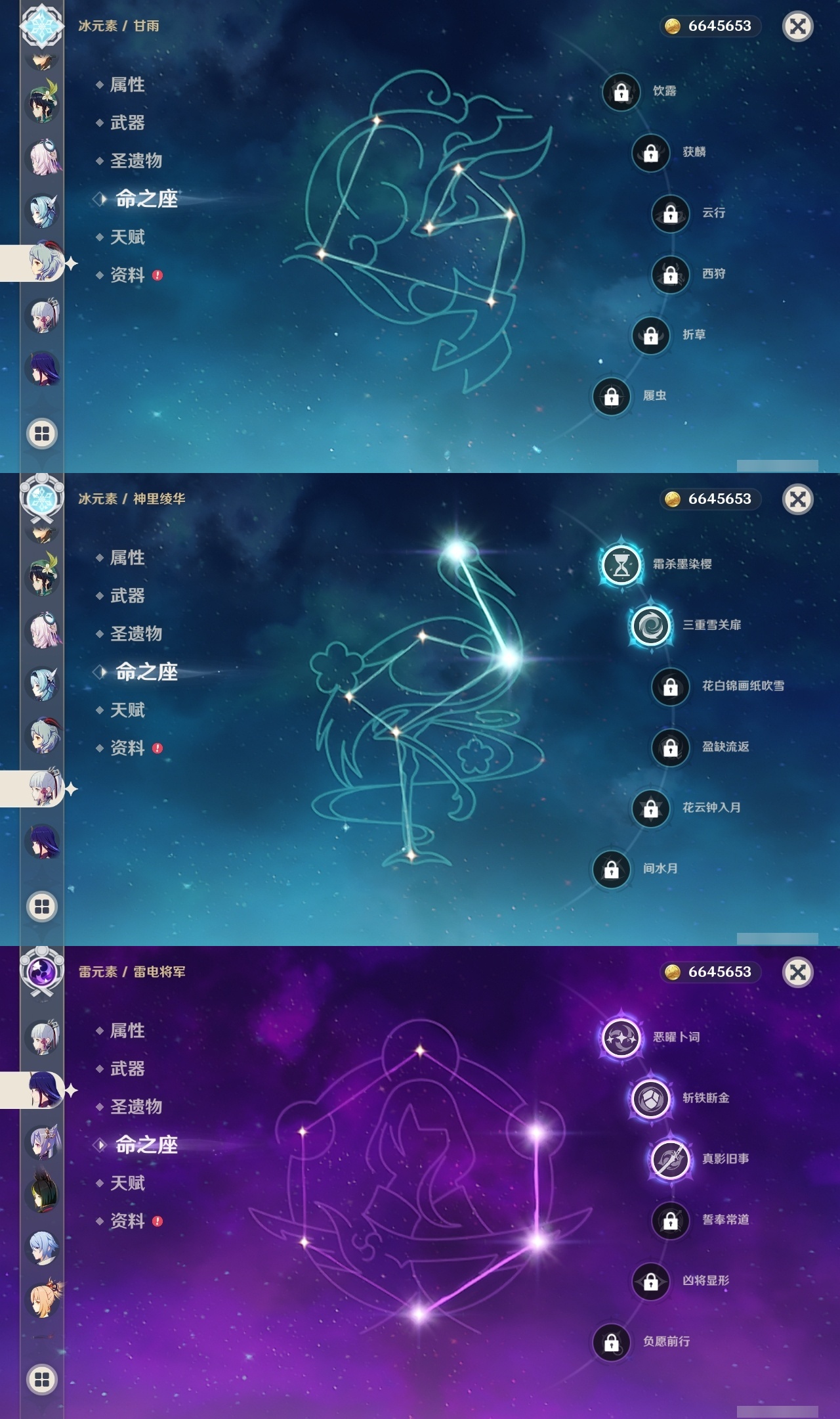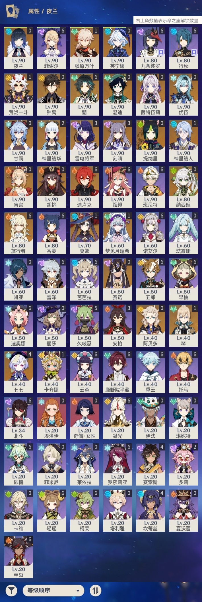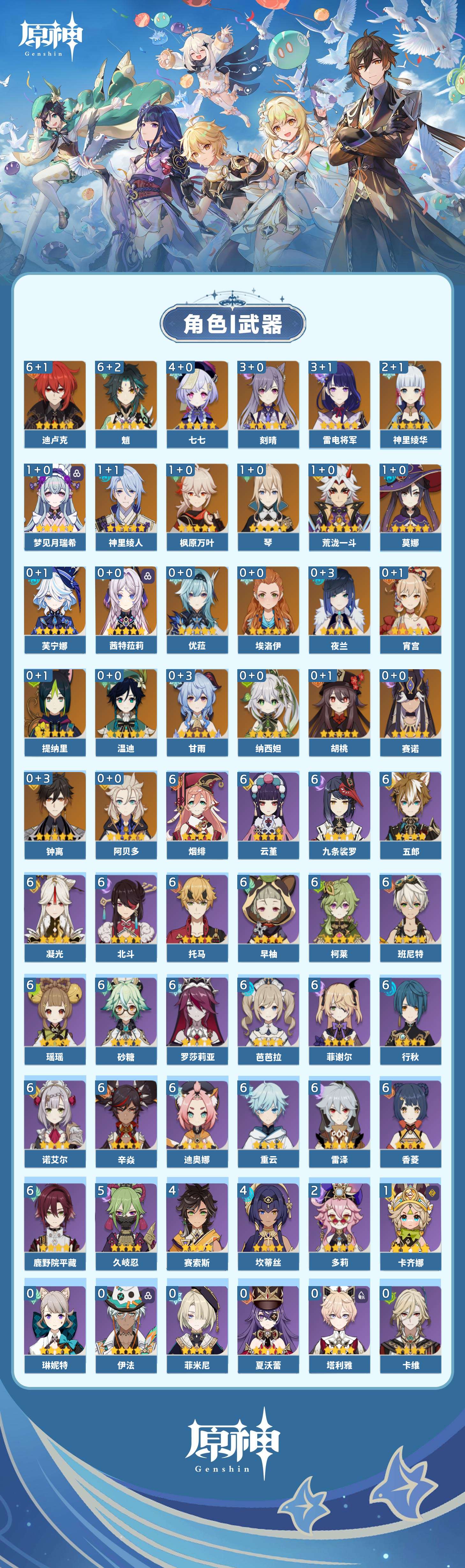 【原神】【lyys8339】冒险等级:59,五星数量:48,五星角色:迪卢克 6命魈 6命七七 4命刻晴 3命雷电将军 3命神里绫华 2命梦见月瑞希 1命枫原万叶 1命莫娜 1命琴 1命荒泷一斗 1命神里绫人 1命温迪茜特菈莉宵宫优菈钟离阿贝多夜兰芙宁娜提纳里赛诺纳西妲甘雨胡桃__五星武器:阿莫斯之弓 3精贯虹之槊 3精若水 3精和璞鸢 2精天空之翼 2精无工之剑 2精静水流涌之辉真语秘匣尘世之锁飞雷之弦振风鹰剑护摩之杖狼的末路磐岩结绿天空之脊天空之卷雾切之回光薙草之稻光斫峰之刃波乱月白经津猎人之径__四星角色:班尼特 6命行秋 6命九条裟罗 6命香菱 6命鹿野院平藏 6命凝光 6命迪奥娜 6命砂糖 6命瑶瑶 6命柯莱 6命芭芭拉 6命云堇 6命早柚 6命托马 6命五郎 6命烟绯 6命重云 6命辛焱 6命诺艾尔 6命罗莎莉亚 6命雷泽 6命菲谢尔 6命北斗 6命久岐忍 5命坎蒂丝 4命赛索斯 4命多莉 2命卡齐娜 1命埃洛伊奇偶·女性珐露珊莱依拉卡维菲米尼琳妮特夏沃蕾伊法塔利雅