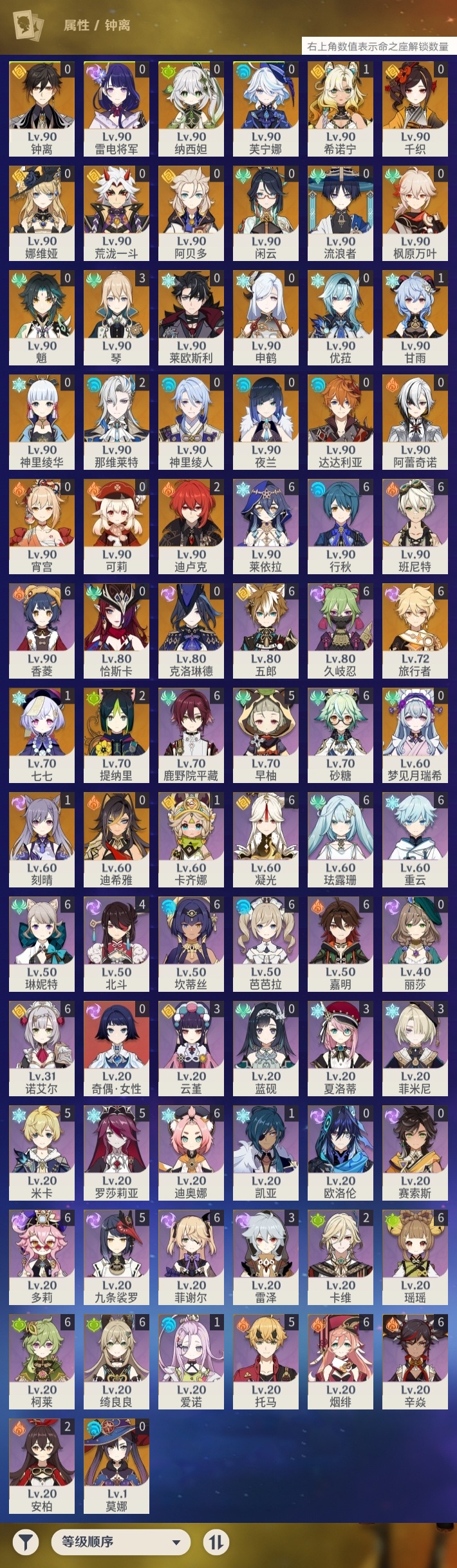 【原神】【lyys8344】冒险等级:60,五星数量:60,五星角色:琴 3命那维莱特 2命迪卢克 2命提纳里 2命希诺宁 1命甘雨 1命刻晴 1命七七 1命莫娜神里绫华恰斯卡宵宫优菈迪希雅钟离荒泷一斗达达利亚梦见月瑞希申鹤神里绫人阿贝多莱欧斯利夜兰芙宁娜娜维娅闲云千织阿蕾奇诺纳西妲流浪者枫原万叶魈克洛琳德可莉雷电将军__五星武器:岩峰巡歌万世流涌大典静水流涌之辉鹤鸣余音有乐御簾切赤月之形图莱杜拉的回忆苍古自由之誓飞雷之弦振和璞鸢狼的末路磐岩结绿四风原典天空之傲天空之脊天空之卷天空之翼雾切之回光薙草之稻光赤角石溃杵冬极白星若水赤沙之杖圣显之钥__四星角色:班尼特 6命行秋 6命香菱 6命久岐忍 6命鹿野院平藏 6命珐露珊 6命凝光 6命迪奥娜 6命砂糖 6命绮良良 6命瑶瑶 6命莱依拉 6命坎蒂丝 6命多莉 6命柯莱 6命芭芭拉 6命五郎 6命烟绯 6命重云 6命辛焱 6命诺艾尔 6命菲谢尔 6命琳妮特 6命嘉明 6命九条裟罗 5命米卡 5命早柚 5命托马 5命罗莎莉亚 5命北斗 4命云堇 3命雷泽 3命菲米尼 3命夏洛蒂 3命卡维 2命卡齐娜 1命爱诺 1命奇偶·女性欧洛伦蓝砚赛索斯