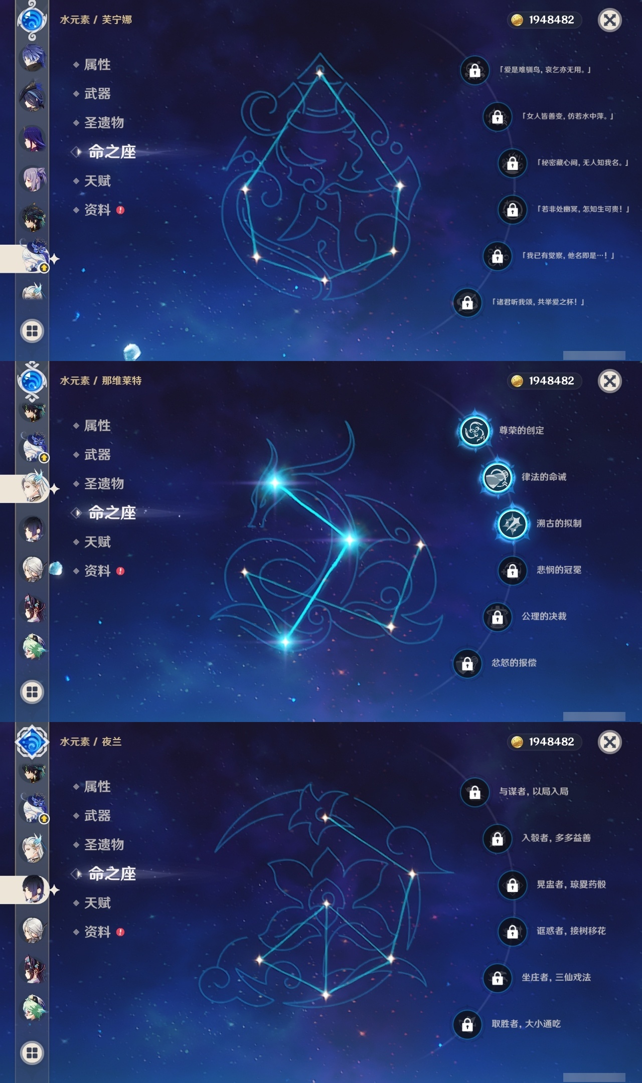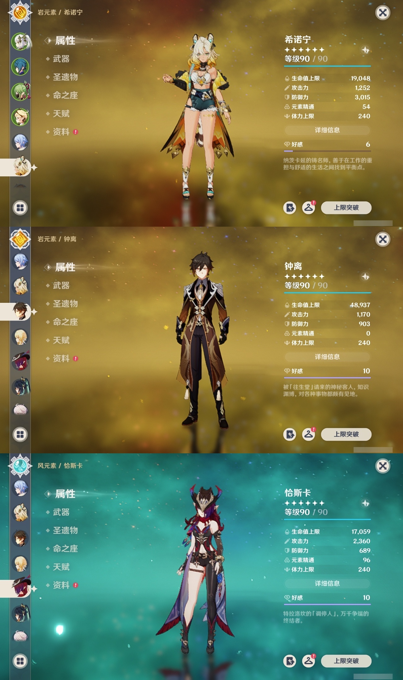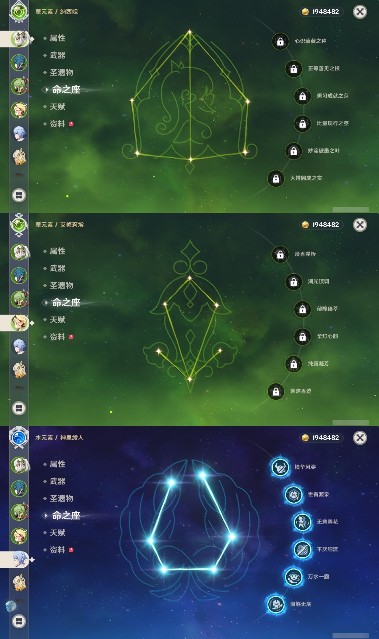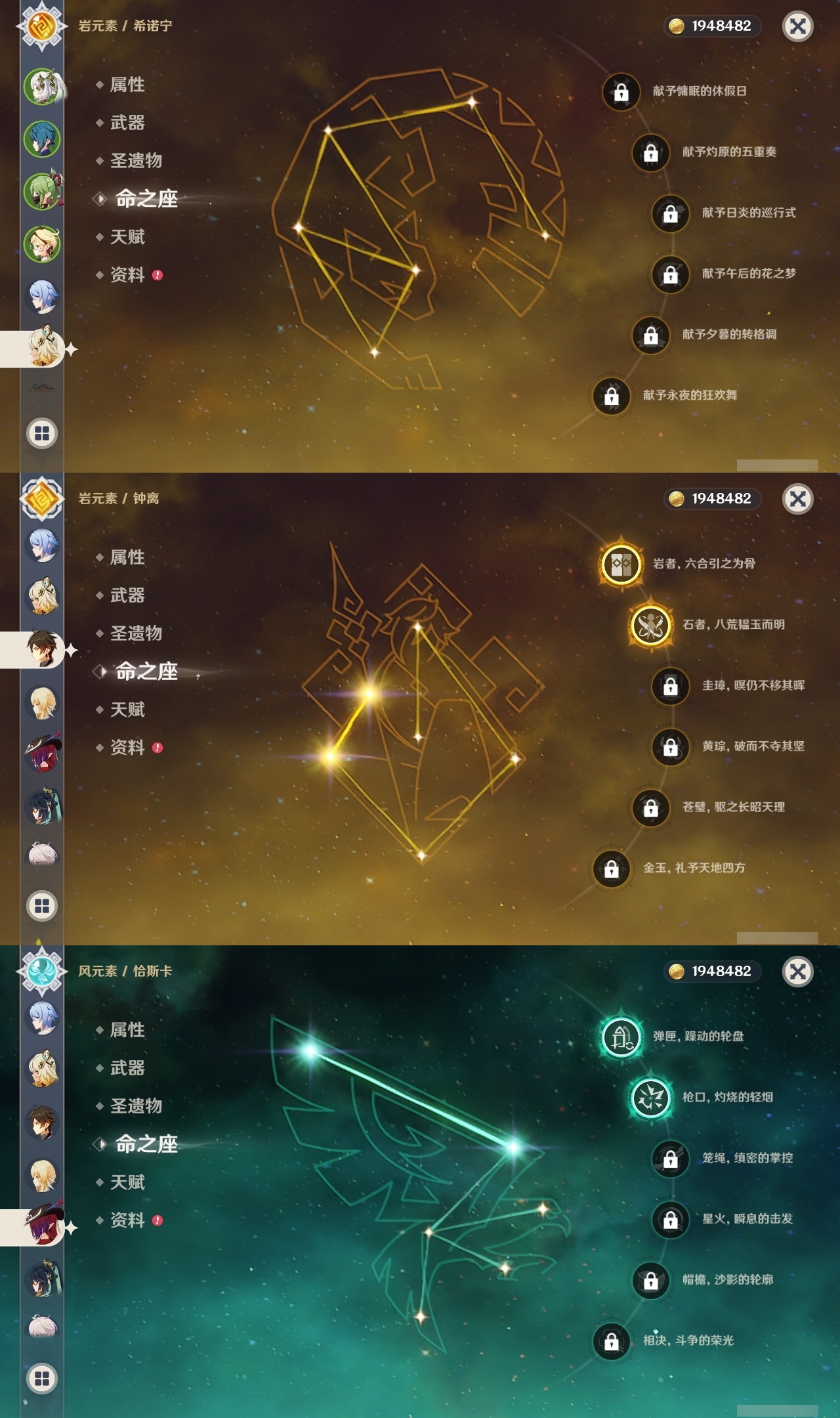 【原神】【lyys8366】冒险等级:60,五星数量:48,五星角色:琴 6命神里绫人 6命刻晴 5命七七 4命那维莱特 3命阿蕾奇诺 3命雷电将军 3命恰斯卡 2命迪希雅 2命莫娜 2命钟离 2命克洛琳德 2命基尼奇 1命迪卢克 1命艾梅莉埃希诺宁梦见月瑞希申鹤夜兰芙宁娜提纳里闲云纳西妲菲林斯枫原万叶甘雨__五星武器:和璞鸢 5精阿莫斯之弓 2精星鹫赤羽万世流涌大典赤月之形真语秘匣裁叶萃光风鹰剑护摩之杖磐岩结绿四风原典天空之脊天空之翼无工之剑雾切之回光薙草之稻光波乱月白经津若水千夜浮梦赦罪__四星角色:班尼特 6命行秋 6命九条裟罗 6命香菱 6命凝光 6命迪奥娜 6命砂糖 6命芭芭拉 6命云堇 6命早柚 6命托马 6命五郎 6命烟绯 6命重云 6命辛焱 6命罗莎莉亚 6命北斗 6命菲米尼 6命琳妮特 6命夏沃蕾 6命瑶瑶 5命多莉 5命柯莱 5命诺艾尔 5命绮良良 4命欧洛伦 4命雷泽 4命菲谢尔 4命卡维 3命爱诺 3命赛索斯 3命卡齐娜 2命久岐忍 2命鹿野院平藏 2命坎蒂丝 2命蓝砚 2命珐露珊 1命莱依拉 1命夏洛蒂 1命嘉明 1命奇偶·女性奇偶·男性米卡
