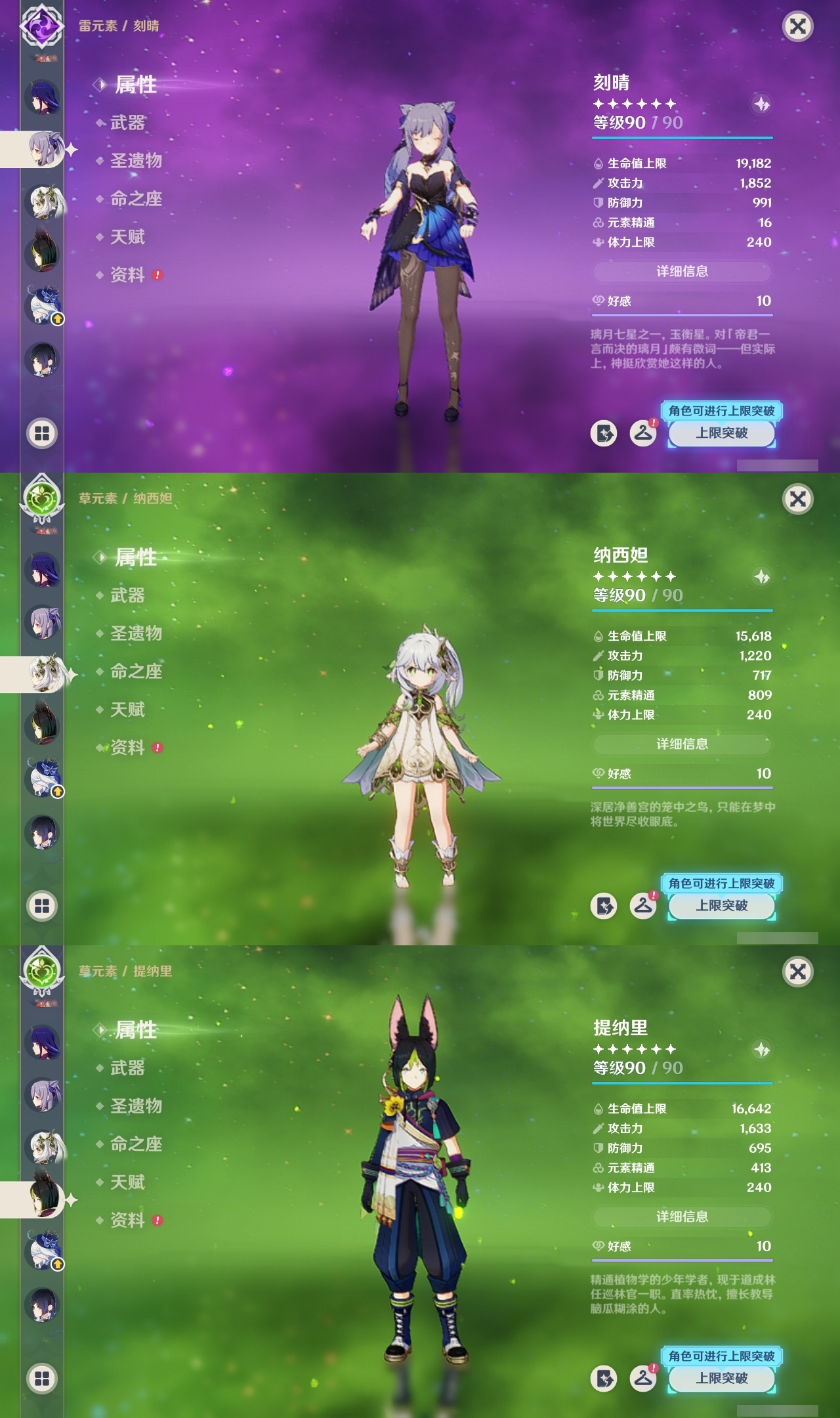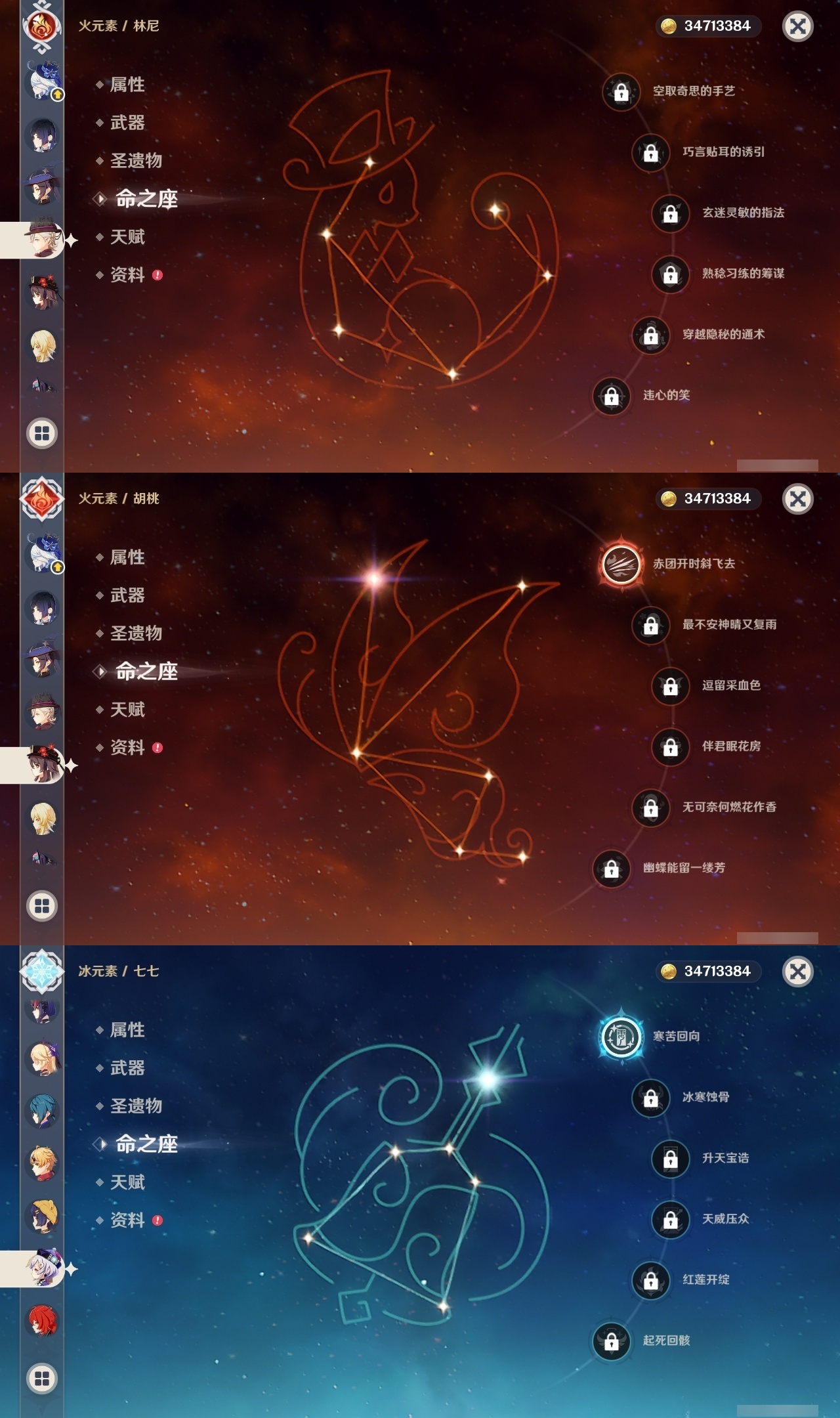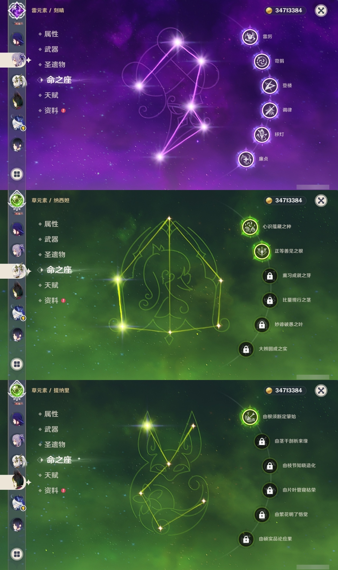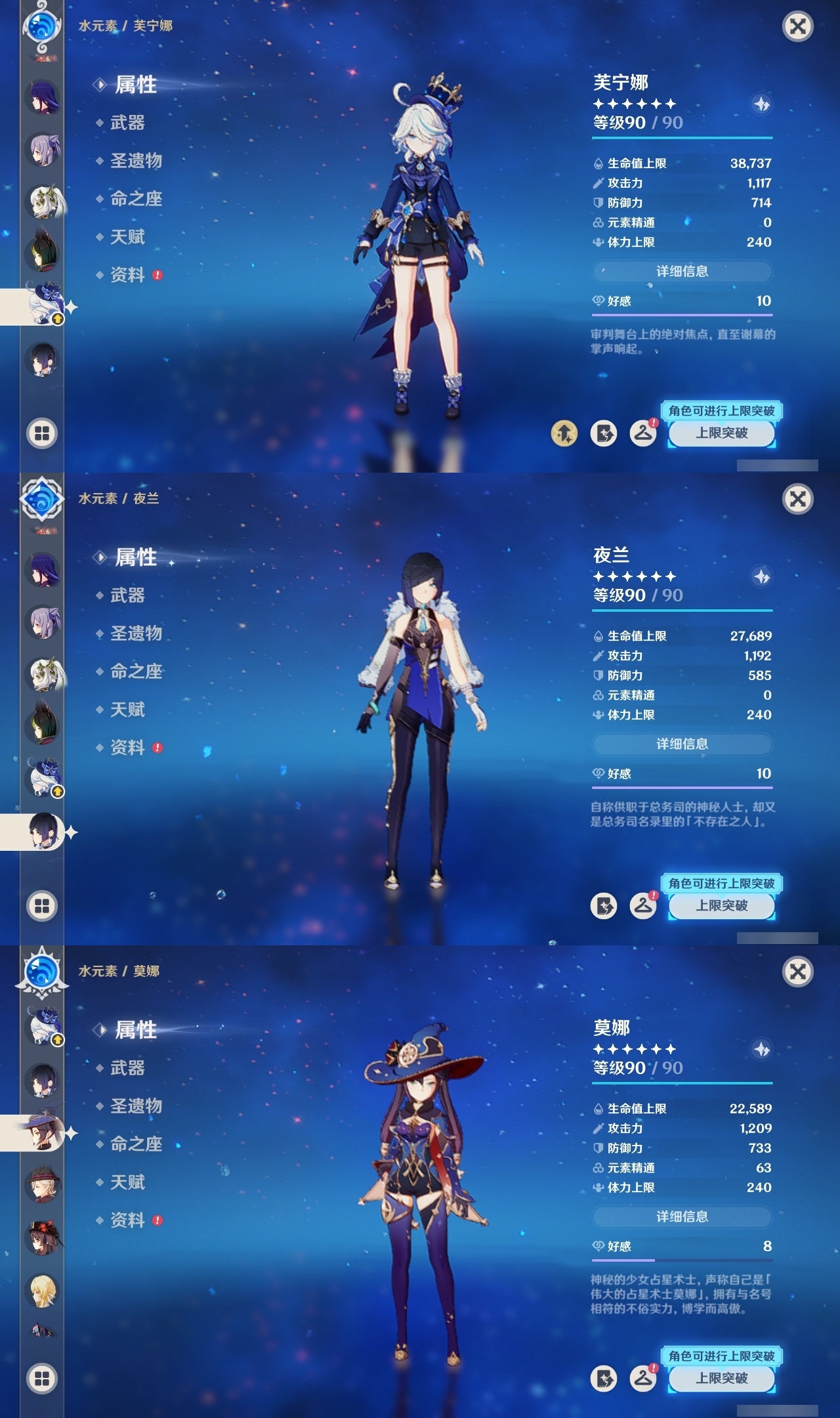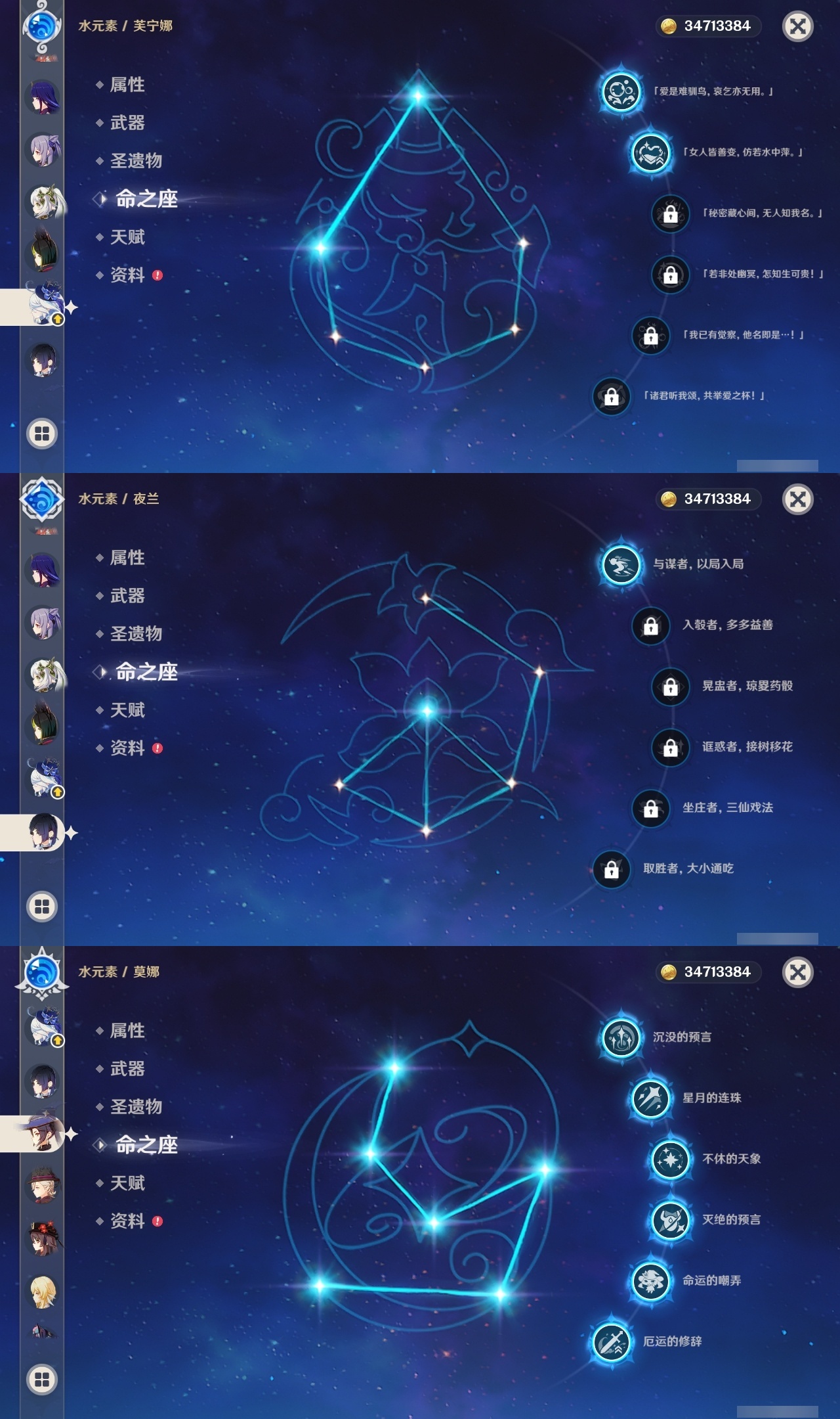 【原神】满命,冒险等级:60,五星数量:36,五星角色:玛薇卡 6命刻晴 6命莫娜 6命克洛琳德 5命迪卢克 3命芙宁娜 2命雷电将军 2命八重神子 2命纳西妲 2命枫原万叶 1命胡桃 1命七七 1命琴 1命夜兰 1命提纳里 1命钟离申鹤林尼阿贝多流浪者甘雨魈__五星武器:阿莫斯之弓 2精天空之卷 2精焚曜千阳风鹰剑和璞鸢护摩之杖四风原典天空之脊天空之刃雾切之回光神乐之真意千夜浮梦赦罪__四星角色:卡齐娜 6命班尼特 6命行秋 6命九条裟罗 6命香菱 6命凝光 6命迪奥娜 6命砂糖 6命绮良良 6命柯莱 6命芭芭拉 6命云堇 6命早柚 6命托马 6命五郎 6命烟绯 6命重云 6命辛焱 6命诺艾尔 6命雷泽 6命菲谢尔 6命北斗 6命琳妮特 6命赛索斯 6命蓝砚 5命罗莎莉亚 5命夏洛蒂 5命鹿野院平藏 3命珐露珊 3命坎蒂丝 3命多莉 3命久岐忍 2命夏沃蕾 2命嘉明 2命瑶瑶 1命莱依拉 1命欧洛伦 1命埃洛伊米卡菲米尼