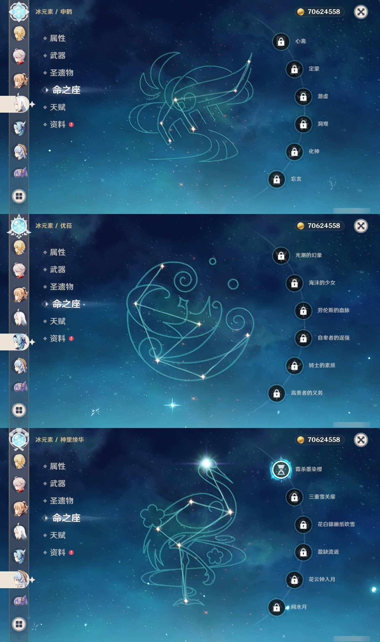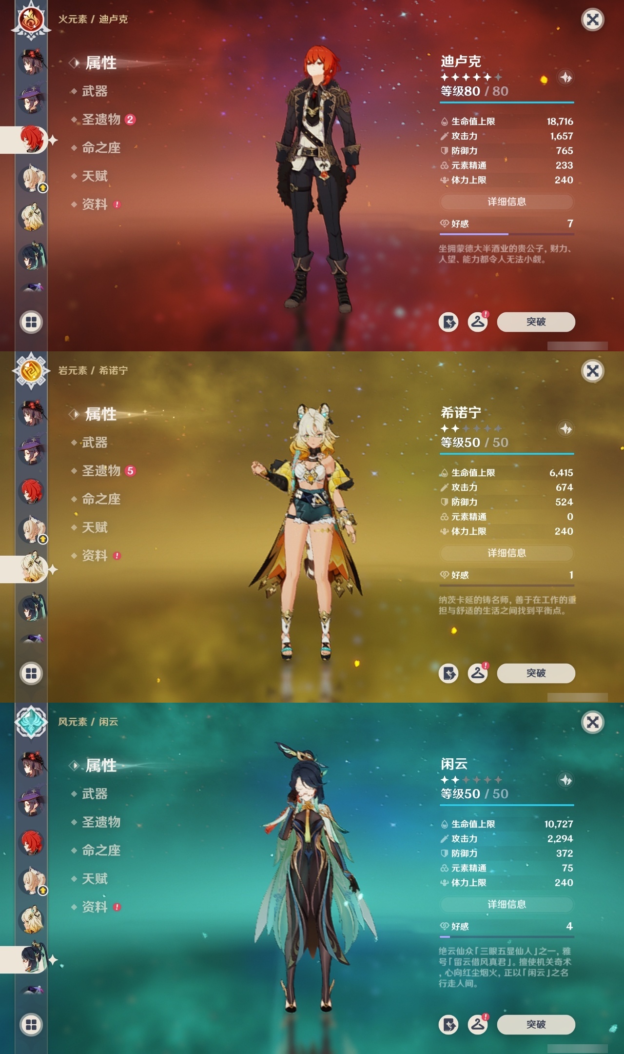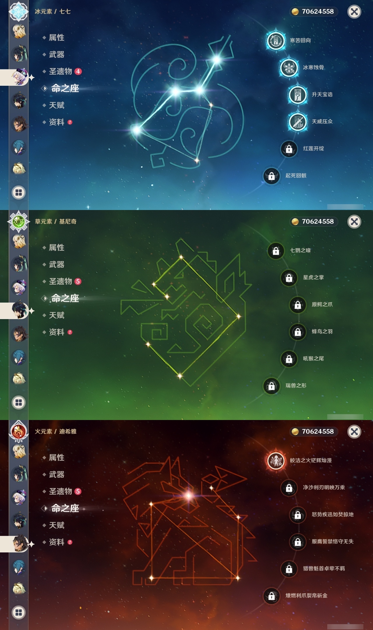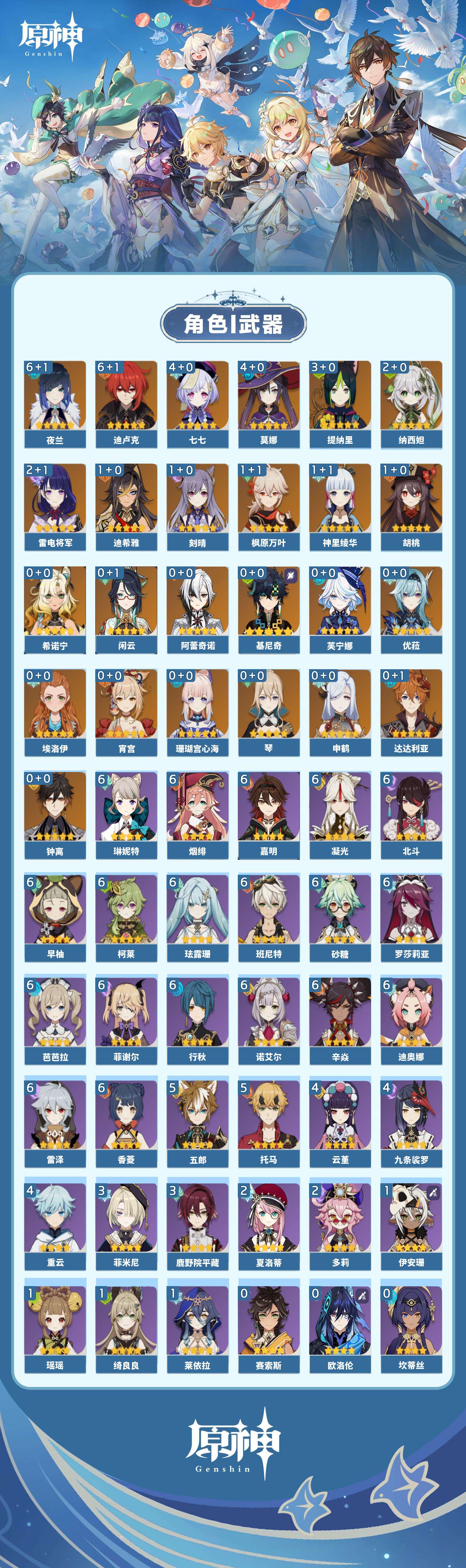 【原神】【lyys8368】冒险等级:60,五星数量:39,五星角色:迪卢克 6命夜兰 6命莫娜 4命七七 4命提纳里 3命雷电将军 2命纳西妲 2命迪希雅 1命枫原万叶 1命胡桃 1命刻晴 1命神里绫华 1命琴基尼奇珊瑚宫心海希诺宁宵宫优菈钟离达达利亚申鹤芙宁娜闲云阿蕾奇诺__五星武器:天空之脊 3精鹤鸣余音苍古自由之誓风鹰剑和璞鸢狼的末路磐岩结绿四风原典天空之刃天空之翼雾切之回光薙草之稻光冬极白星若水__四星角色:班尼特 6命行秋 6命香菱 6命珐露珊 6命凝光 6命迪奥娜 6命砂糖 6命柯莱 6命芭芭拉 6命早柚 6命烟绯 6命辛焱 6命诺艾尔 6命罗莎莉亚 6命雷泽 6命菲谢尔 6命北斗 6命琳妮特 6命嘉明 6命托马 5命五郎 5命九条裟罗 4命云堇 4命重云 4命鹿野院平藏 3命菲米尼 3命多莉 2命夏洛蒂 2命绮良良 1命瑶瑶 1命莱依拉 1命伊安珊 1命埃洛伊坎蒂丝卡维欧洛伦赛索斯