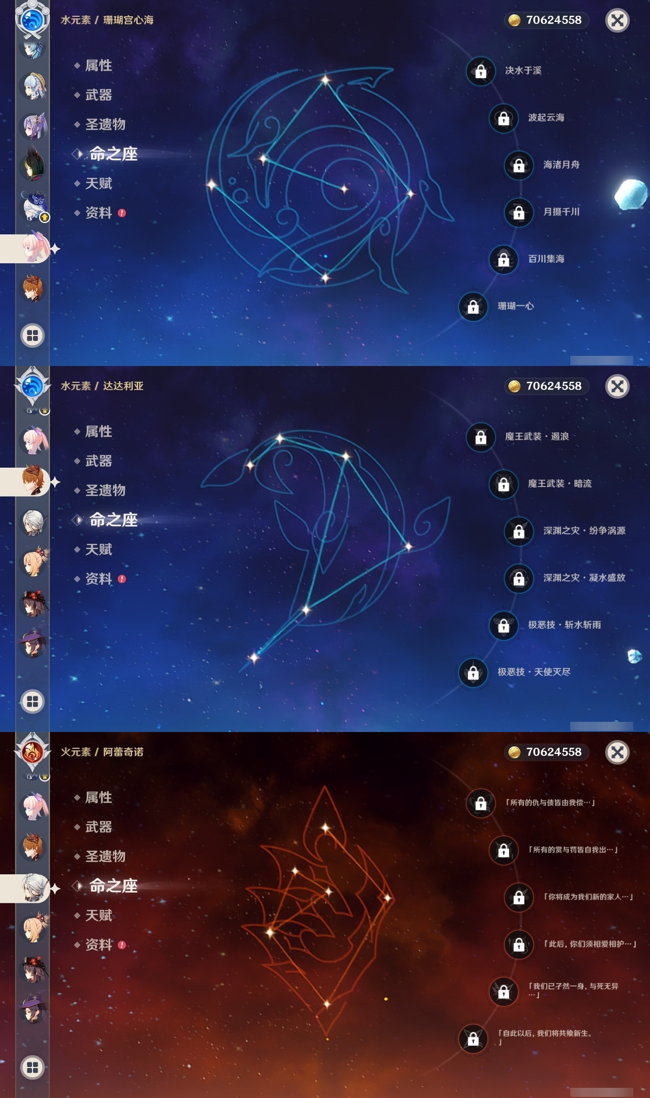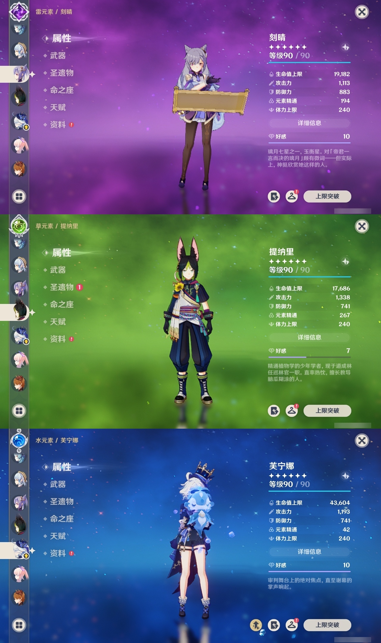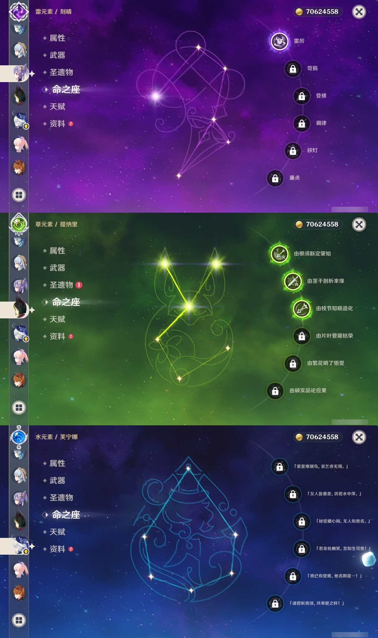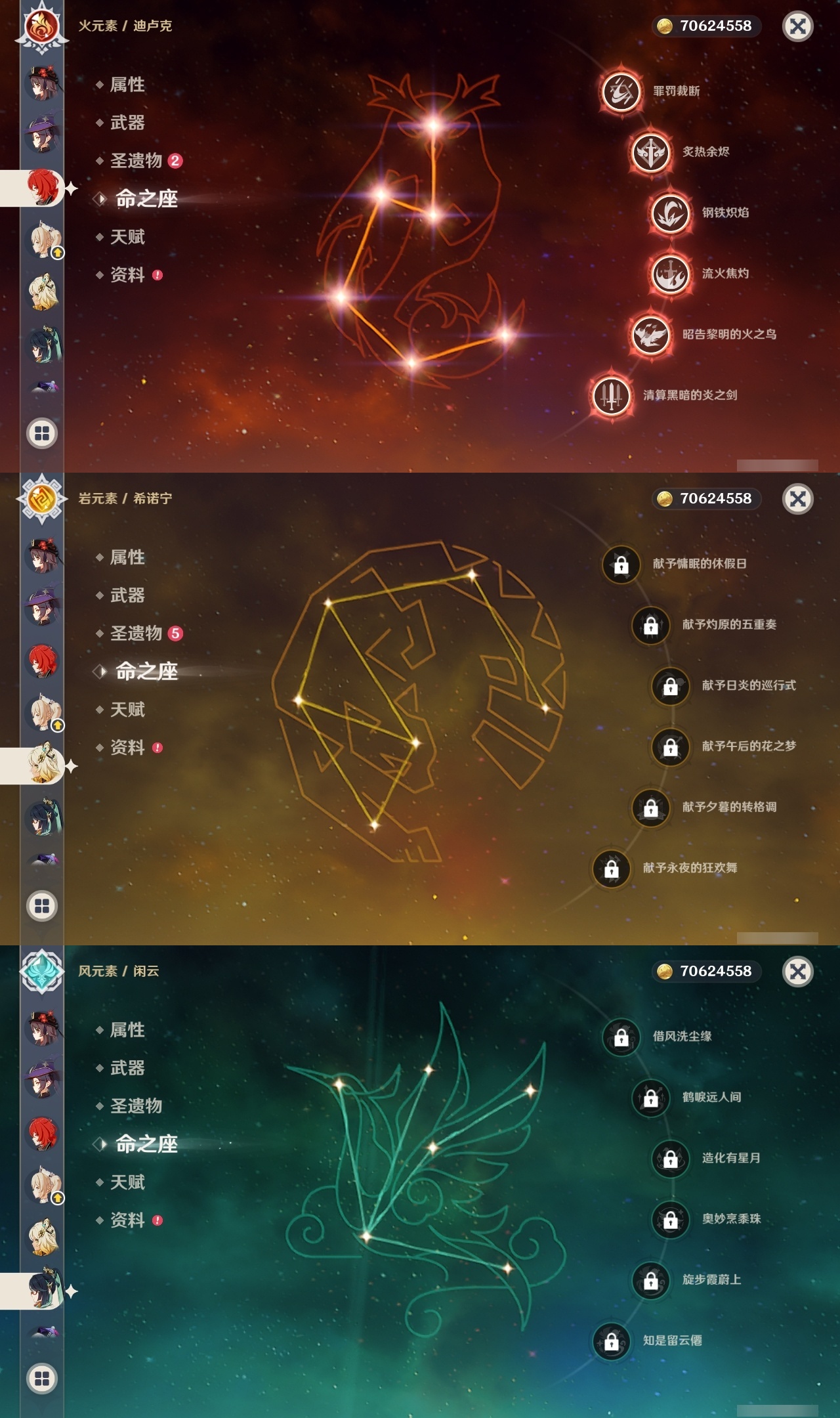 【原神】【lyys8368】冒险等级:60,五星数量:39,五星角色:迪卢克 6命夜兰 6命莫娜 4命七七 4命提纳里 3命雷电将军 2命纳西妲 2命迪希雅 1命枫原万叶 1命胡桃 1命刻晴 1命神里绫华 1命琴基尼奇珊瑚宫心海希诺宁宵宫优菈钟离达达利亚申鹤芙宁娜闲云阿蕾奇诺__五星武器:天空之脊 3精鹤鸣余音苍古自由之誓风鹰剑和璞鸢狼的末路磐岩结绿四风原典天空之刃天空之翼雾切之回光薙草之稻光冬极白星若水__四星角色:班尼特 6命行秋 6命香菱 6命珐露珊 6命凝光 6命迪奥娜 6命砂糖 6命柯莱 6命芭芭拉 6命早柚 6命烟绯 6命辛焱 6命诺艾尔 6命罗莎莉亚 6命雷泽 6命菲谢尔 6命北斗 6命琳妮特 6命嘉明 6命托马 5命五郎 5命九条裟罗 4命云堇 4命重云 4命鹿野院平藏 3命菲米尼 3命多莉 2命夏洛蒂 2命绮良良 1命瑶瑶 1命莱依拉 1命伊安珊 1命埃洛伊坎蒂丝卡维欧洛伦赛索斯