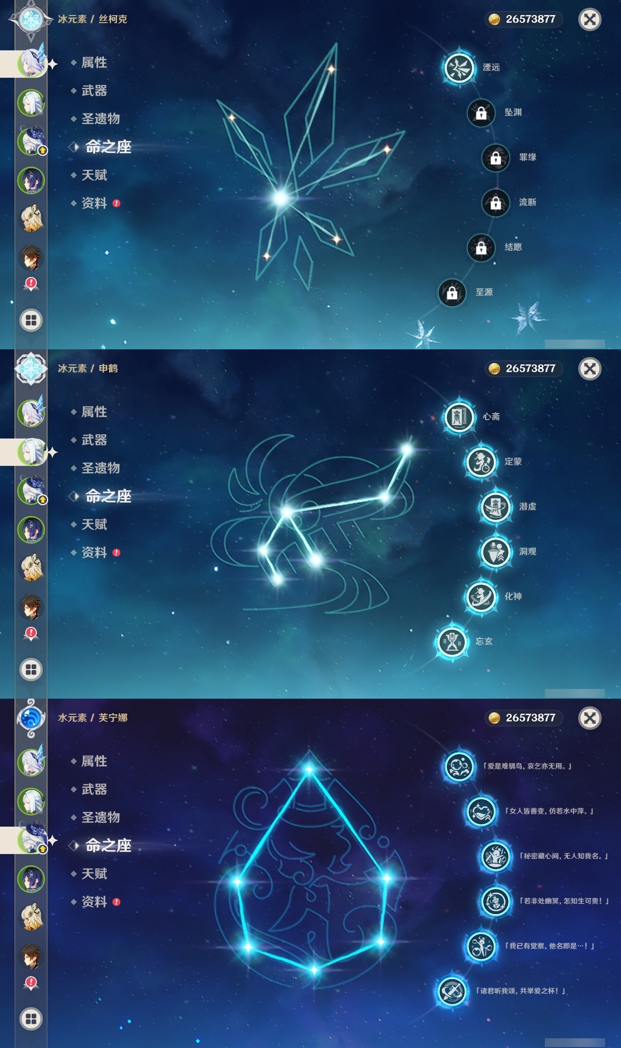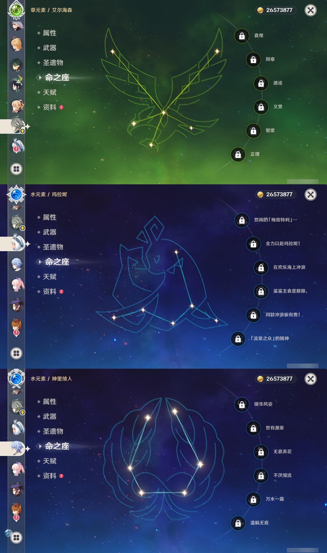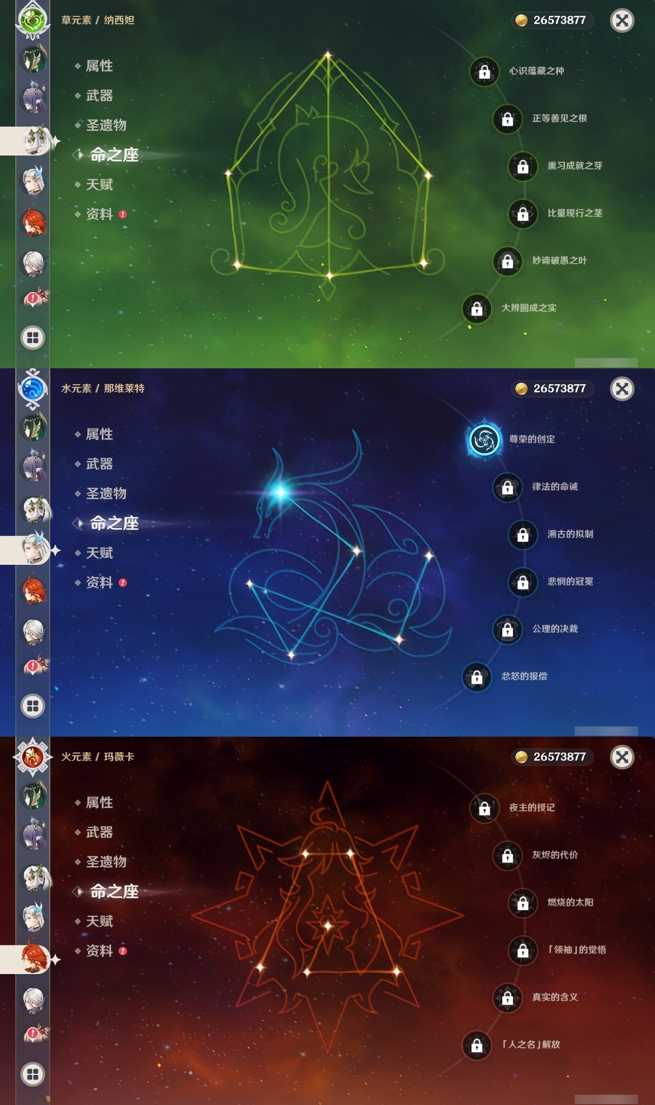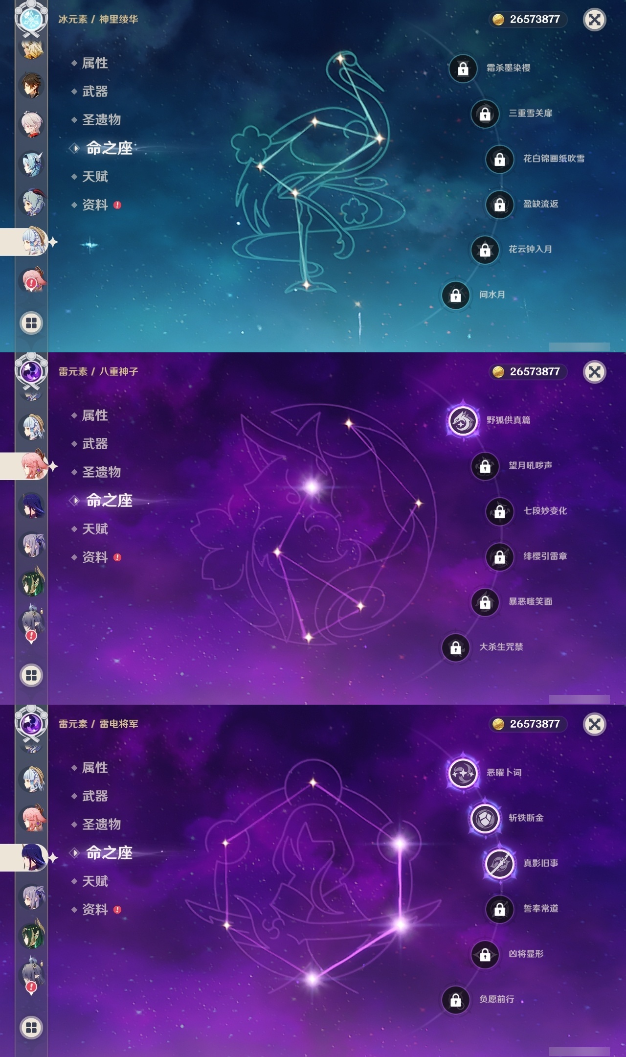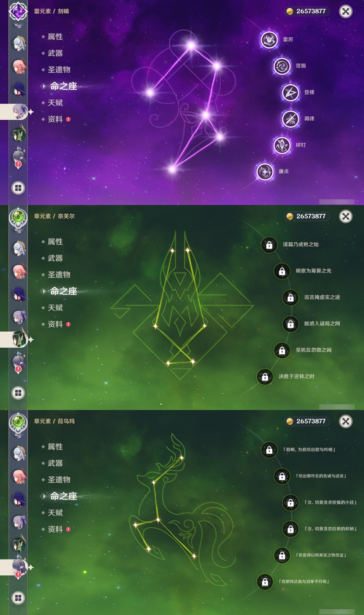 【原神】满命,冒险等级:60,五星数量:66,五星角色:芙宁娜 6命迪卢克 6命刻晴 6命莫娜 6命七七 6命琴 6命优菈 6命申鹤 6命夜兰 6命胡桃 4命雷电将军 3命阿蕾奇诺 2命达达利亚 2命枫原万叶 2命荒泷一斗 2命提纳里 2命那维莱特 1命丝柯克 1命魈 1命可莉 1命珊瑚宫心海 1命八重神子 1命玛拉妮希诺宁神里绫华温迪玛薇卡宵宫钟离神里绫人纳西妲菈乌玛艾尔海森奈芙尔甘雨__五星武器:护摩之杖 4精狼的末路 4精天空之翼 4精飞雷之弦振 3精风鹰剑 3精和璞鸢 3精天空之刃 3精阿莫斯之弓 2精松籁响起之时 2精无工之剑 2精薙草之稻光 2精碧落之珑万世流涌大典静水流涌之辉赤月之形苍耀纺夜天镜不灭月华磐岩结绿四风原典天空之傲天空之脊天空之卷雾切之回光赤角石溃杵息灾神乐之真意若水千夜浮梦__四星角色:班尼特 6命行秋 6命九条裟罗 6命香菱 6命凝光 6命迪奥娜 6命砂糖 6命瑶瑶 6命多莉 6命柯莱 6命芭芭拉 6命云堇 6命早柚 6命托马 6命五郎 6命烟绯 6命重云 6命辛焱 6命诺艾尔 6命罗莎莉亚 6命雷泽 6命菲谢尔 6命北斗 6命夏洛蒂 6命鹿野院平藏 5命坎蒂丝 5命菲米尼 5命伊安珊 5命夏沃蕾 4命嘉明 4命卡齐娜 3命琳妮特 3命塔利雅 3命绮良良 2命米卡 2命欧洛伦 2命赛索斯 2命久岐忍 1命爱诺 1命埃洛伊奇偶·女性珐露珊卡维蓝砚