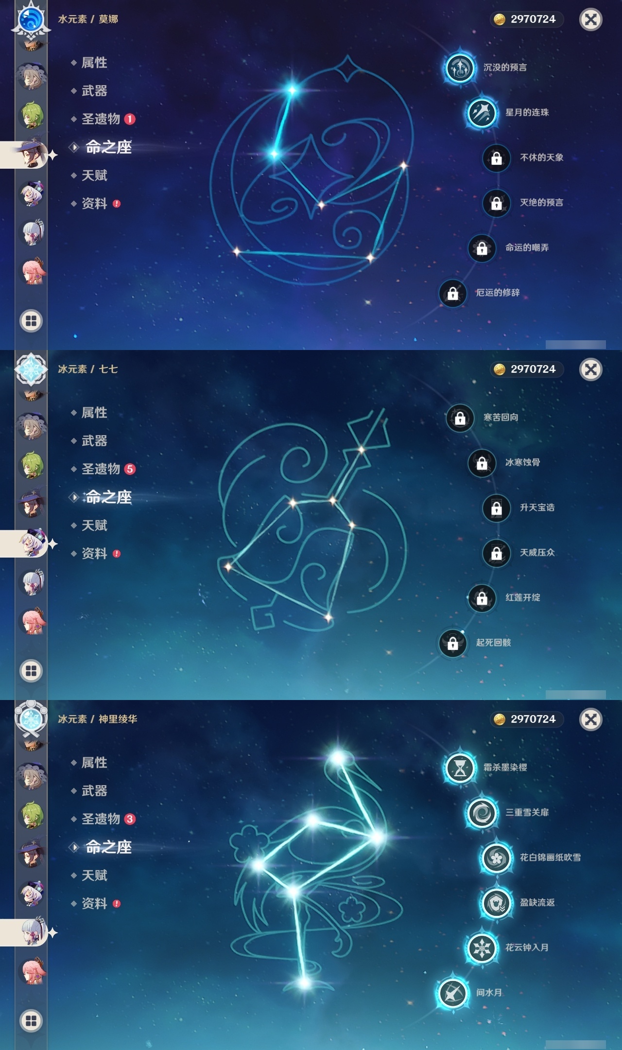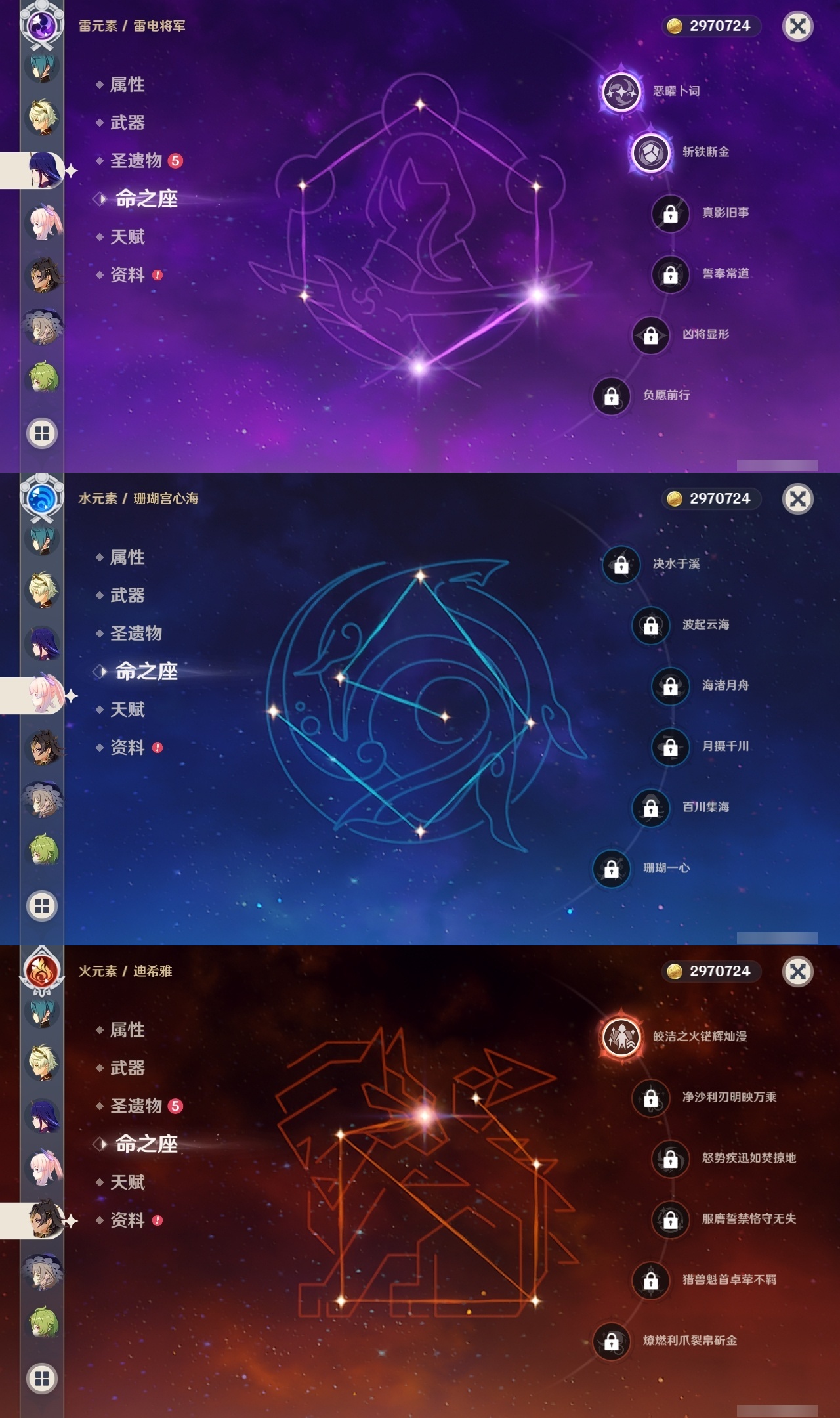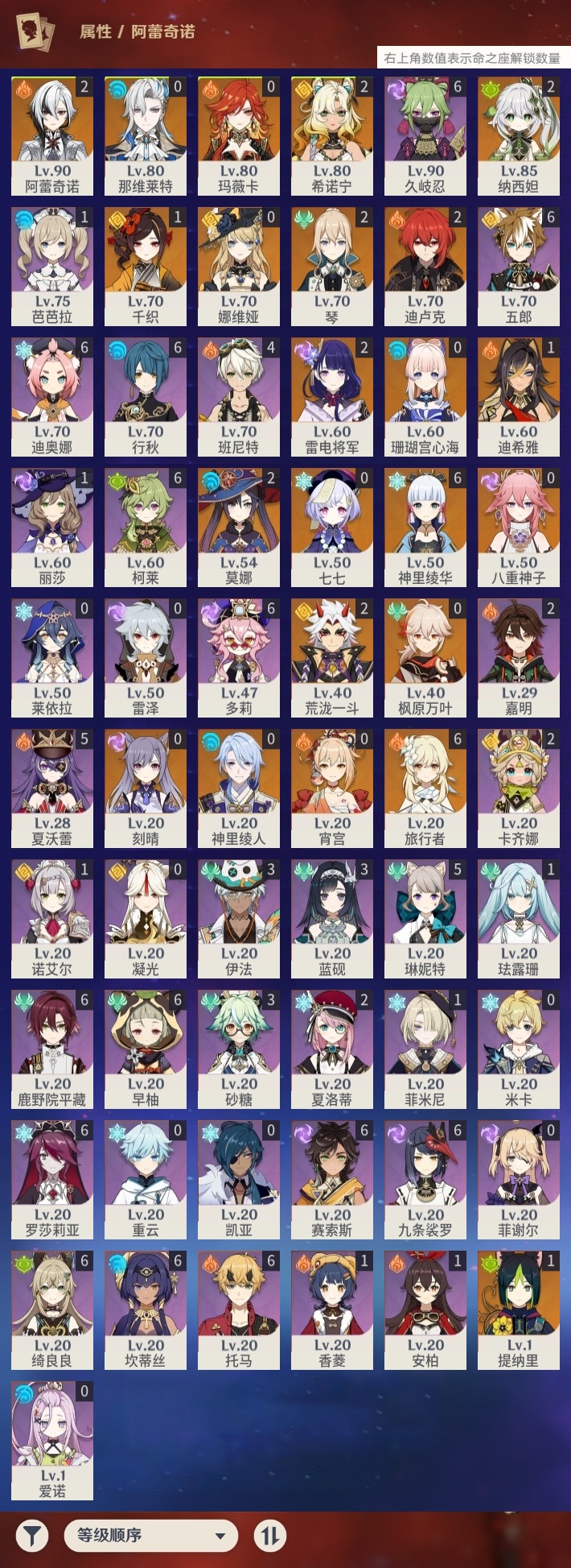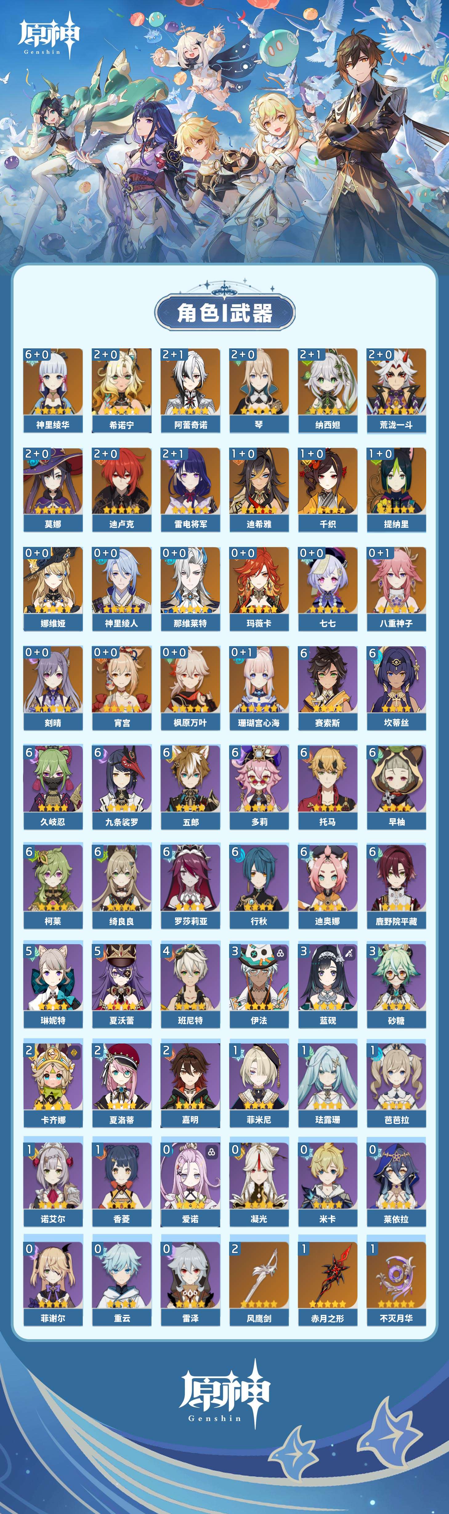【原神】【lyys8442】冒险等级:55,五星数量:31,五星角色:神里绫华 6命希诺宁 2命阿蕾奇诺 2命迪卢克 2命雷电将军 2命莫娜 2命琴 2命荒泷一斗 2命纳西妲 2命迪希雅 1命千织 1命提纳里 1命七七珊瑚宫心海玛薇卡宵宫八重神子神里绫人那维莱特娜维娅枫原万叶刻晴__五星武器:风鹰剑 2精赤月之形不灭月华四风原典天空之卷天空之刃薙草之稻光神乐之真意千夜浮梦__四星角色:行秋 6命九条裟罗 6命久岐忍 6命鹿野院平藏 6命迪奥娜 6命绮良良 6命坎蒂丝 6命多莉 6命柯莱 6命早柚 6命托马 6命五郎 6命罗莎莉亚 6命赛索斯 6命琳妮特 5命夏沃蕾 5命班尼特 4命砂糖 3命蓝砚 3命伊法 3命卡齐娜 2命夏洛蒂 2命嘉明 2命香菱 1命珐露珊 1命芭芭拉 1命诺艾尔 1命菲米尼 1命凝光莱依拉米卡重云雷泽菲谢尔爱诺