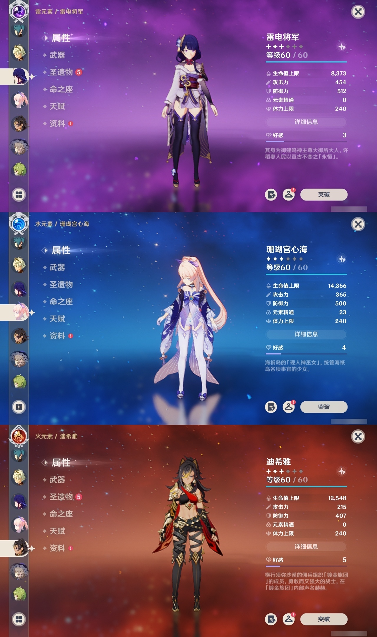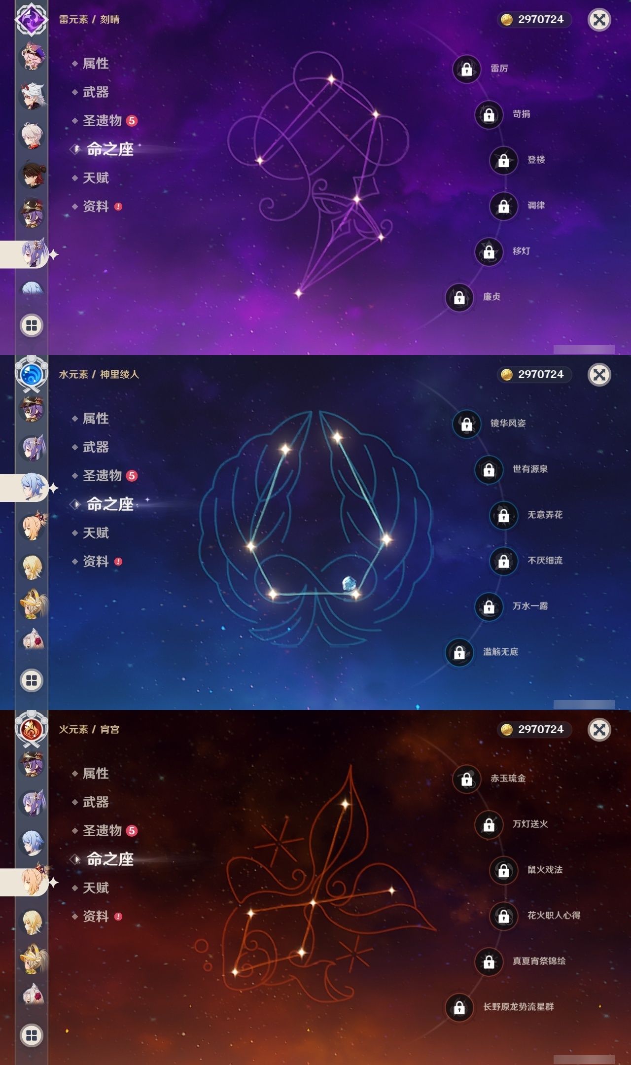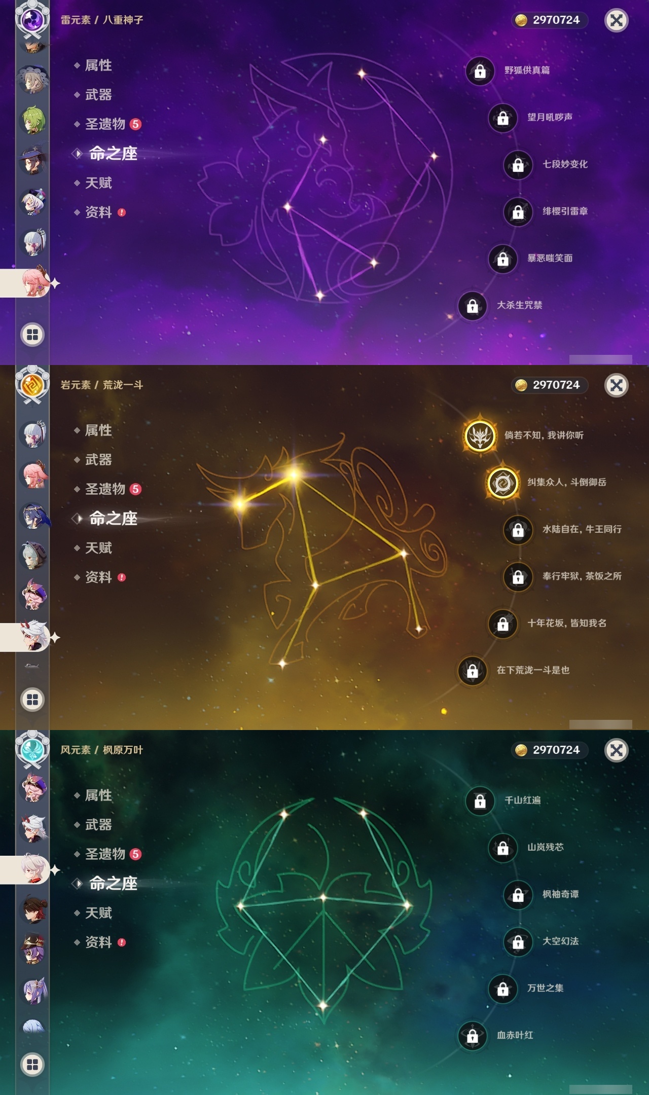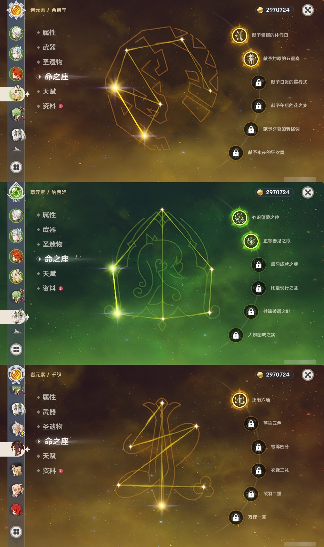 【原神】【lyys8442】冒险等级:55,五星数量:31,五星角色:神里绫华 6命希诺宁 2命阿蕾奇诺 2命迪卢克 2命雷电将军 2命莫娜 2命琴 2命荒泷一斗 2命纳西妲 2命迪希雅 1命千织 1命提纳里 1命七七珊瑚宫心海玛薇卡宵宫八重神子神里绫人那维莱特娜维娅枫原万叶刻晴__五星武器:风鹰剑 2精赤月之形不灭月华四风原典天空之卷天空之刃薙草之稻光神乐之真意千夜浮梦__四星角色:行秋 6命九条裟罗 6命久岐忍 6命鹿野院平藏 6命迪奥娜 6命绮良良 6命坎蒂丝 6命多莉 6命柯莱 6命早柚 6命托马 6命五郎 6命罗莎莉亚 6命赛索斯 6命琳妮特 5命夏沃蕾 5命班尼特 4命砂糖 3命蓝砚 3命伊法 3命卡齐娜 2命夏洛蒂 2命嘉明 2命香菱 1命珐露珊 1命芭芭拉 1命诺艾尔 1命菲米尼 1命凝光莱依拉米卡重云雷泽菲谢尔爱诺