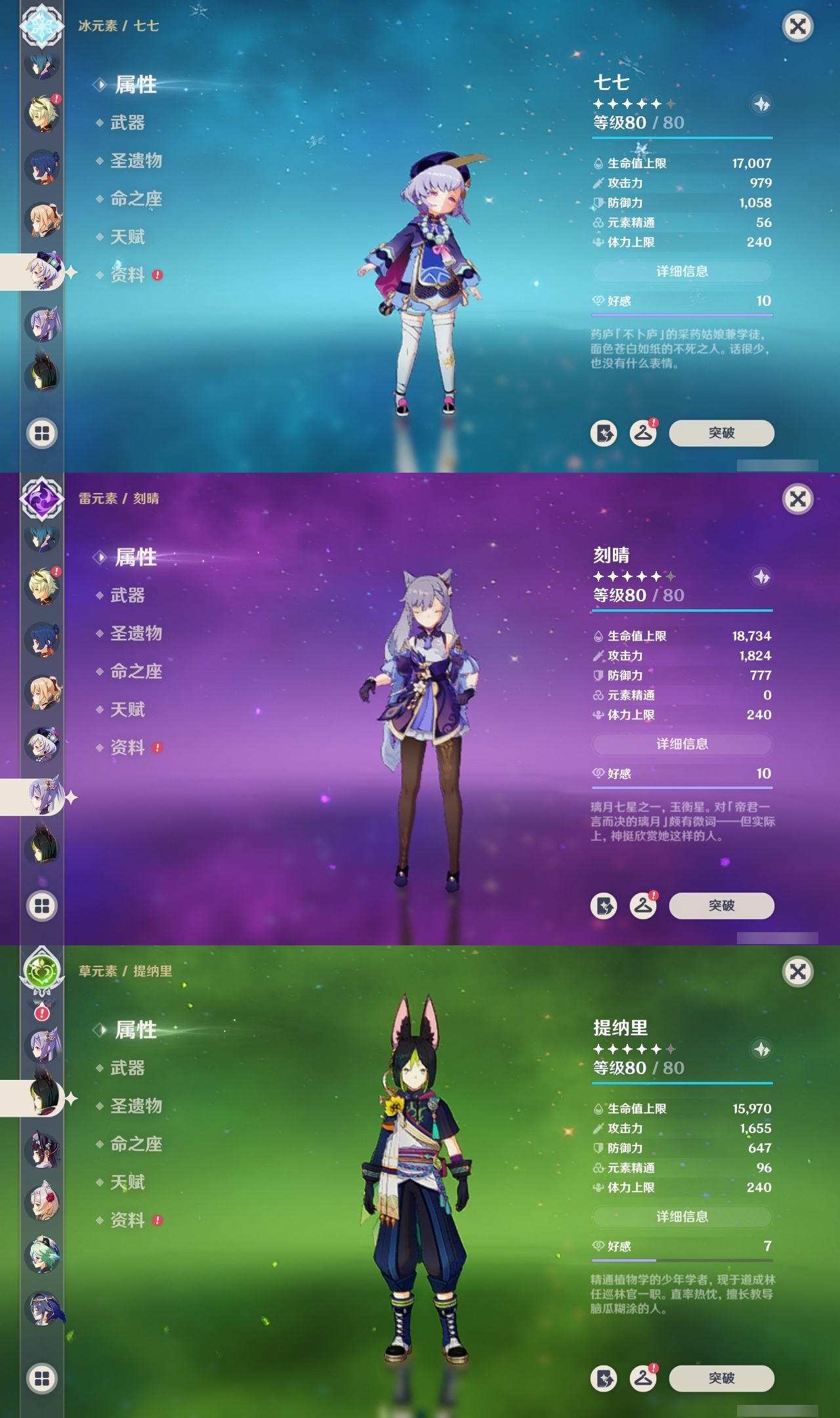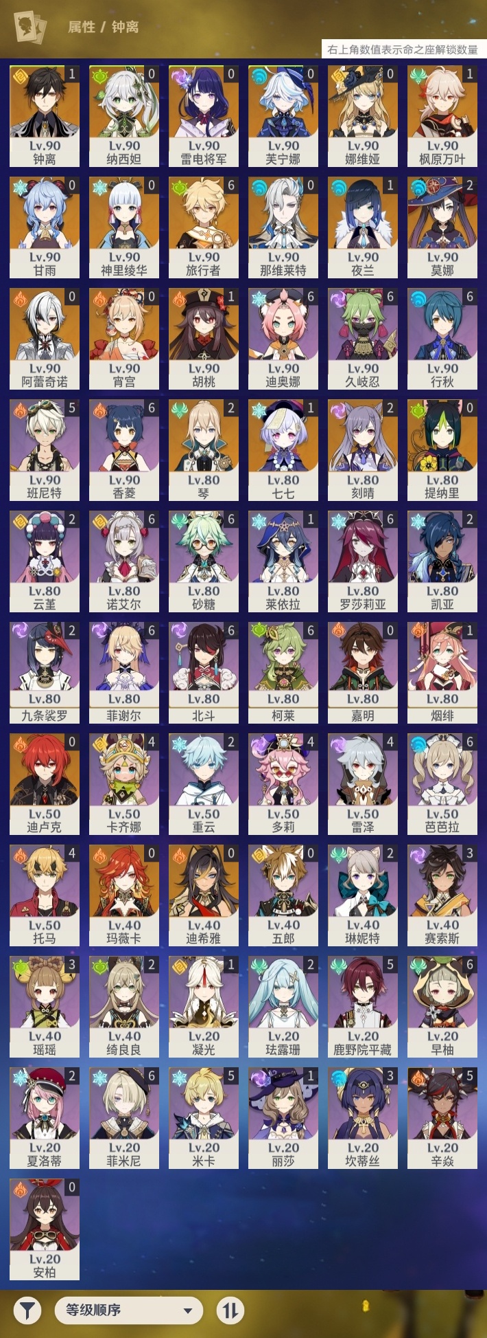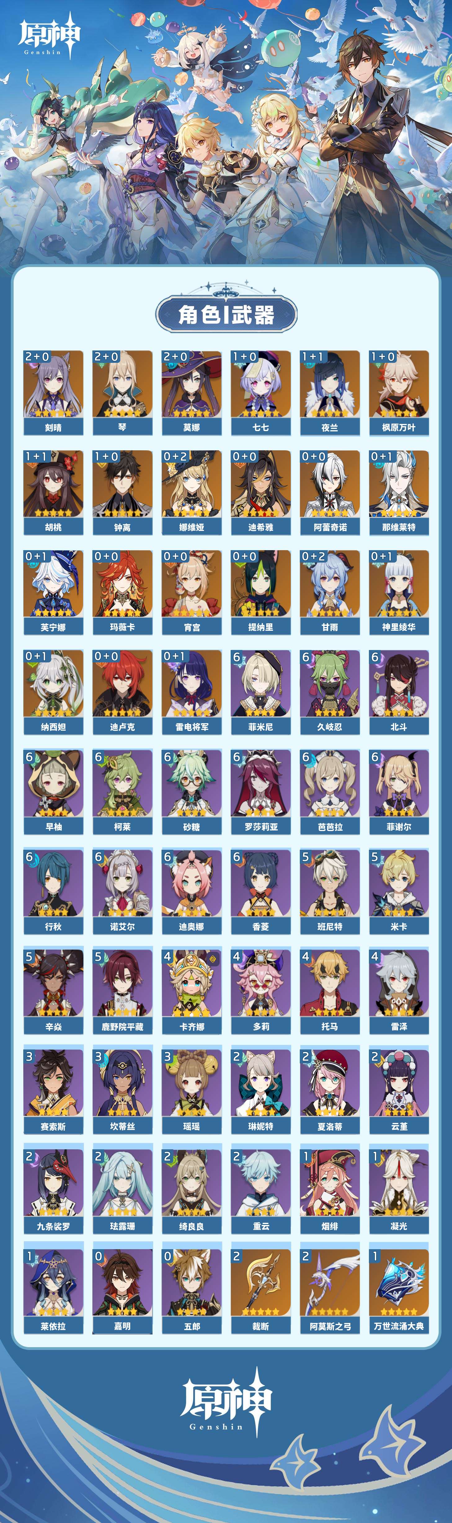 【原神】【lyys8465】冒险等级:60,五星数量:37,五星角色:刻晴 2命莫娜 2命琴 2命枫原万叶 1命胡桃 1命七七 1命钟离 1命夜兰 1命神里绫华玛薇卡宵宫迪希雅那维莱特芙宁娜娜维娅提纳里阿蕾奇诺纳西妲迪卢克甘雨雷电将军__五星武器:裁断 2精阿莫斯之弓 2精最初的大魔术万世流涌大典静水流涌之辉和璞鸢护摩之杖天空之傲天空之脊天空之刃天空之翼雾切之回光薙草之稻光波乱月白经津若水千夜浮梦__四星角色:行秋 6命香菱 6命久岐忍 6命迪奥娜 6命砂糖 6命柯莱 6命芭芭拉 6命早柚 6命诺艾尔 6命罗莎莉亚 6命菲谢尔 6命北斗 6命菲米尼 6命班尼特 5命鹿野院平藏 5命米卡 5命辛焱 5命卡齐娜 4命多莉 4命托马 4命雷泽 4命瑶瑶 3命坎蒂丝 3命赛索斯 3命九条裟罗 2命珐露珊 2命绮良良 2命云堇 2命重云 2命琳妮特 2命夏洛蒂 2命凝光 1命莱依拉 1命烟绯 1命五郎嘉明