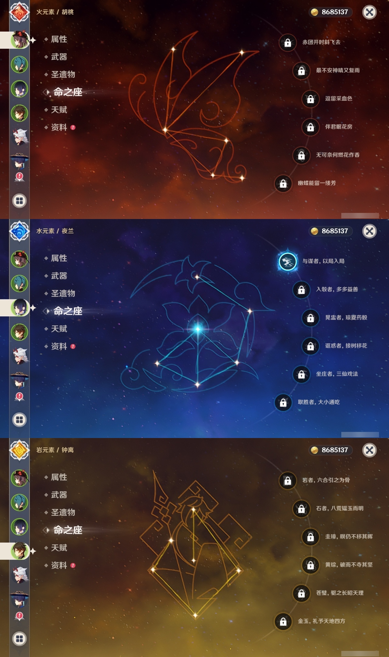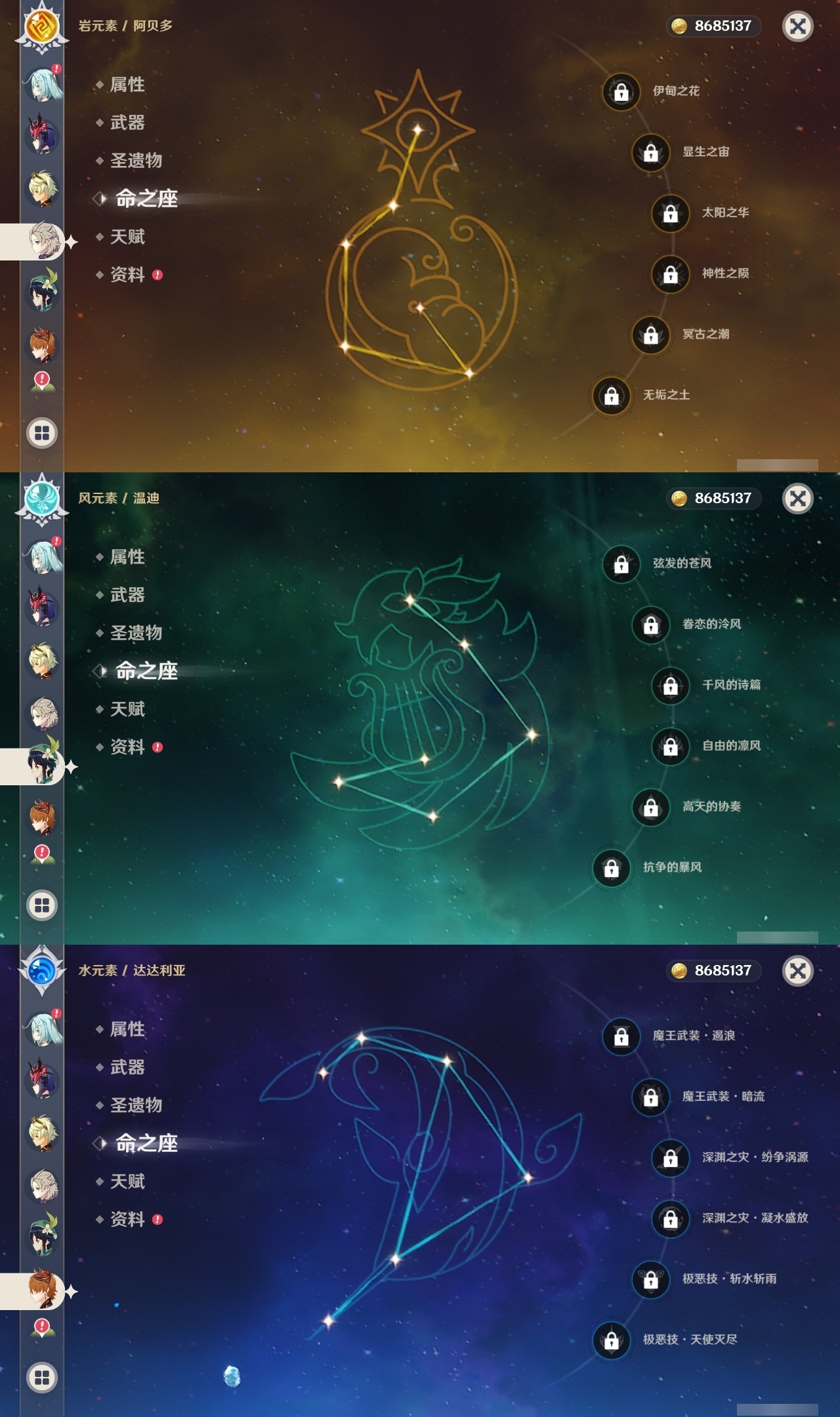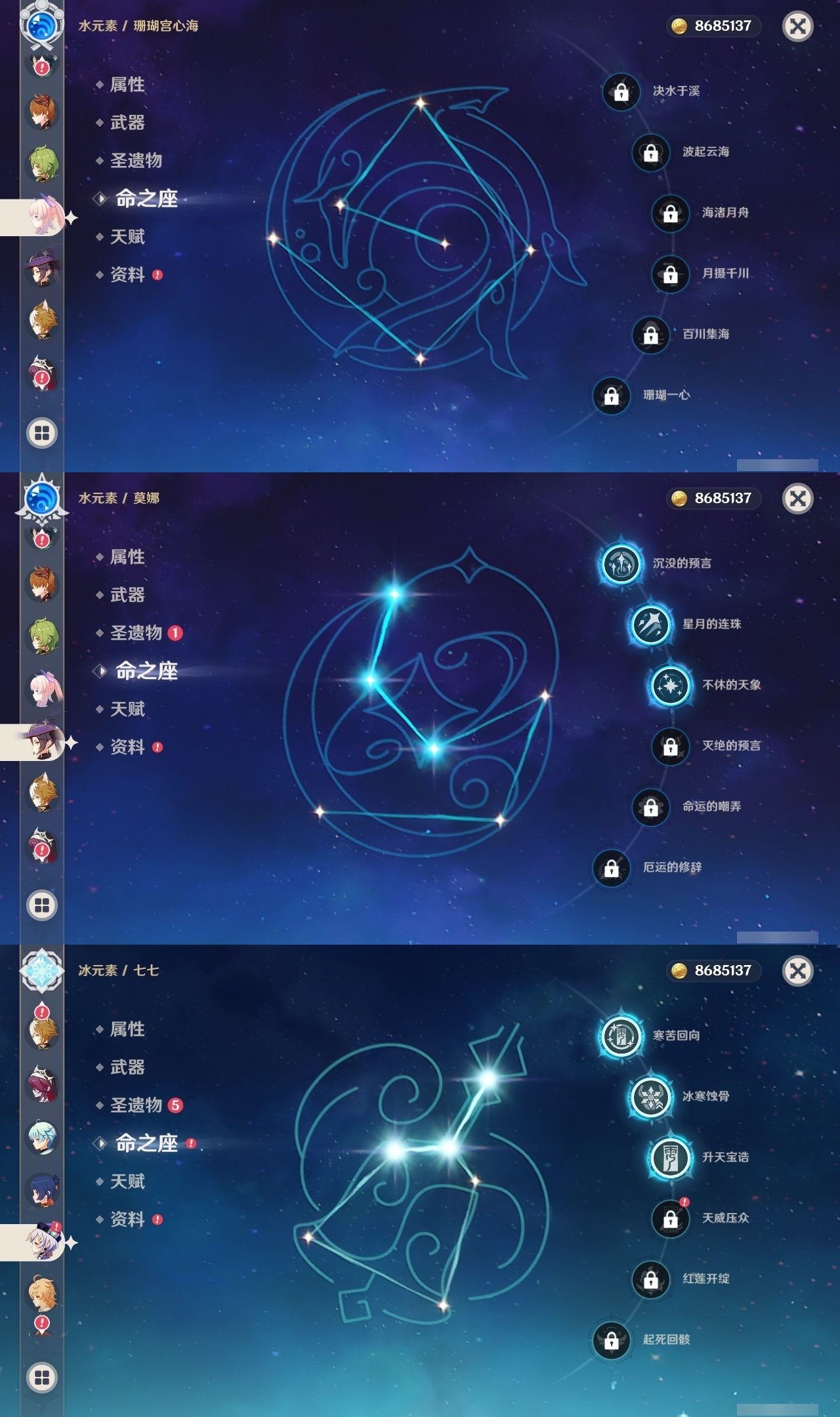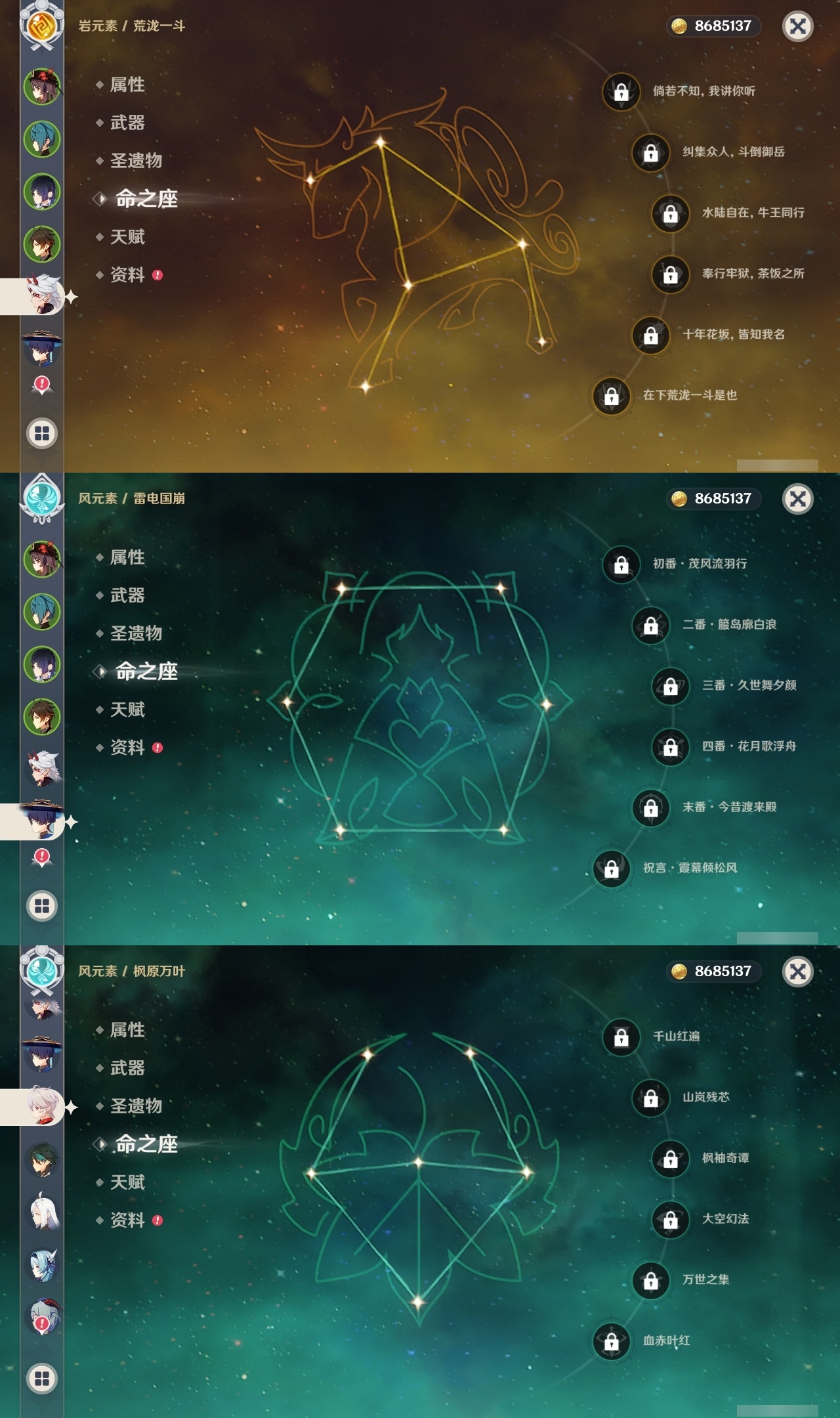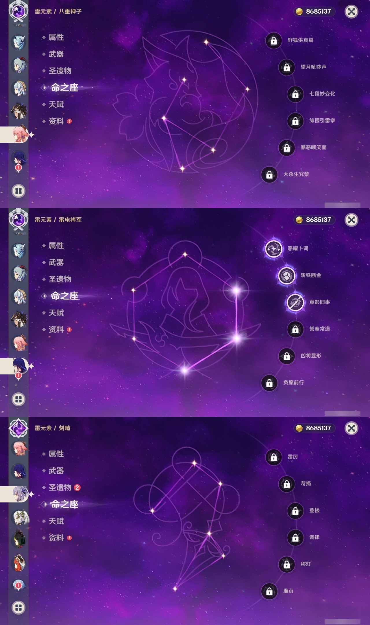 【原神】【lyys8466】冒险等级:60,五星数量:59,五星角色:迪卢克 5命雷电将军 3命莫娜 3命七七 3命神里绫华 2命琴 1命夜兰 1命提纳里 1命珊瑚宫心海温迪宵宫优菈钟离荒泷一斗达达利亚申鹤八重神子神里绫人阿贝多赛诺妮露纳西妲流浪者枫原万叶甘雨魈胡桃可莉刻晴__五星武器:飞雷之弦振 3精和璞鸢 3精四风原典 3精天空之刃 2精无工之剑 2精终末嗟叹之诗 2精神乐之真意 2精图莱杜拉的回忆阿莫斯之弓不灭月华苍古自由之誓尘世之锁护摩之杖狼的末路磐岩结绿天空之傲天空之翼雾切之回光薙草之稻光斫峰之刃赤角石溃杵冬极白星贯虹之槊波乱月白经津若水猎人之径赤沙之杖圣显之钥千夜浮梦__四星角色:班尼特 6命行秋 6命九条裟罗 6命香菱 6命凝光 6命迪奥娜 6命砂糖 6命芭芭拉 6命云堇 6命早柚 6命托马 6命烟绯 6命重云 6命辛焱 6命诺艾尔 6命罗莎莉亚 6命雷泽 6命菲谢尔 6命北斗 6命珐露珊 4命五郎 4命鹿野院平藏 3命多莉 2命柯莱 2命久岐忍 1命莱依拉 1命米卡 1命坎蒂丝 1命埃洛伊瑶瑶嘉明