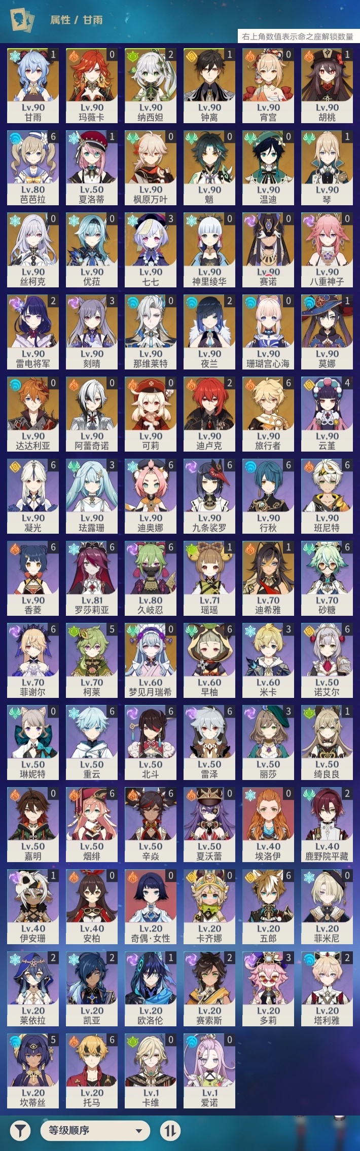 【原神】【lyys8467】冒险等级:60,五星数量:49,五星角色:刻晴 3命七七 3命迪卢克 2命雷电将军 2命夜兰 2命纳西妲 2命迪希雅 1命甘雨 1命胡桃 1命莫娜 1命琴 1命钟离 1命珊瑚宫心海神里绫华温迪玛薇卡宵宫优菈达达利亚梦见月瑞希八重神子那维莱特赛诺阿蕾奇诺丝柯克枫原万叶魈可莉__五星武器:阿莫斯之弓 2精风鹰剑 2精苇海信标飞雷之弦振和璞鸢护摩之杖四风原典天空之脊天空之卷天空之刃天空之翼雾切之回光薙草之稻光终末嗟叹之诗神乐之真意波乱月白经津若水猎人之径千夜浮梦__四星角色:班尼特 6命行秋 6命九条裟罗 6命香菱 6命久岐忍 6命凝光 6命迪奥娜 6命砂糖 6命芭芭拉 6命早柚 6命托马 6命五郎 6命烟绯 6命重云 6命辛焱 6命诺艾尔 6命罗莎莉亚 6命雷泽 6命菲谢尔 6命北斗 6命坎蒂丝 5命柯莱 5命云堇 4命珐露珊 3命米卡 3命多莉 3命鹿野院平藏 2命莱依拉 2命塔利雅 2命赛索斯 2命绮良良 1命瑶瑶 1命欧洛伦 1命夏洛蒂 1命伊安珊 1命埃洛伊奇偶·女性卡齐娜卡维菲米尼琳妮特夏沃蕾嘉明爱诺