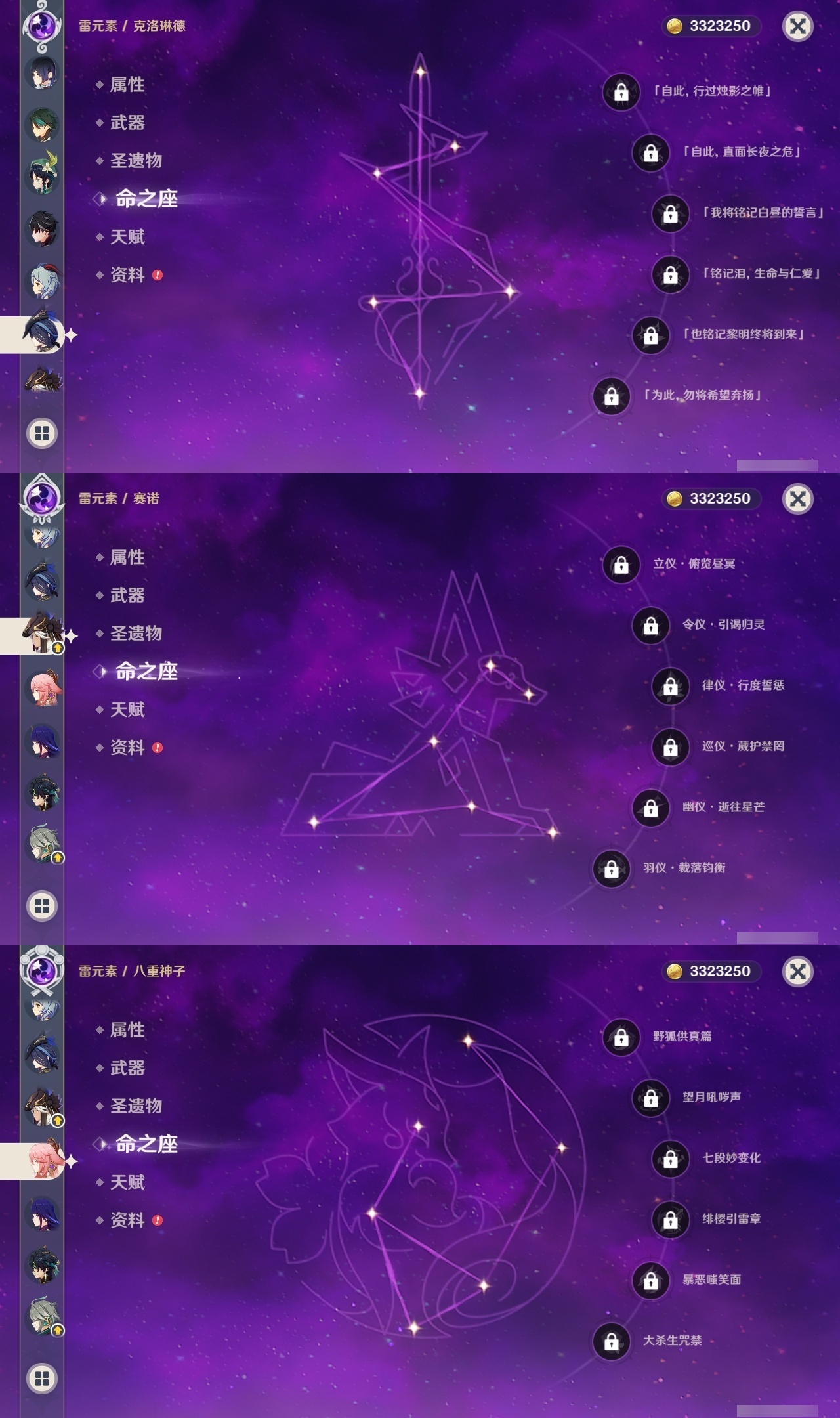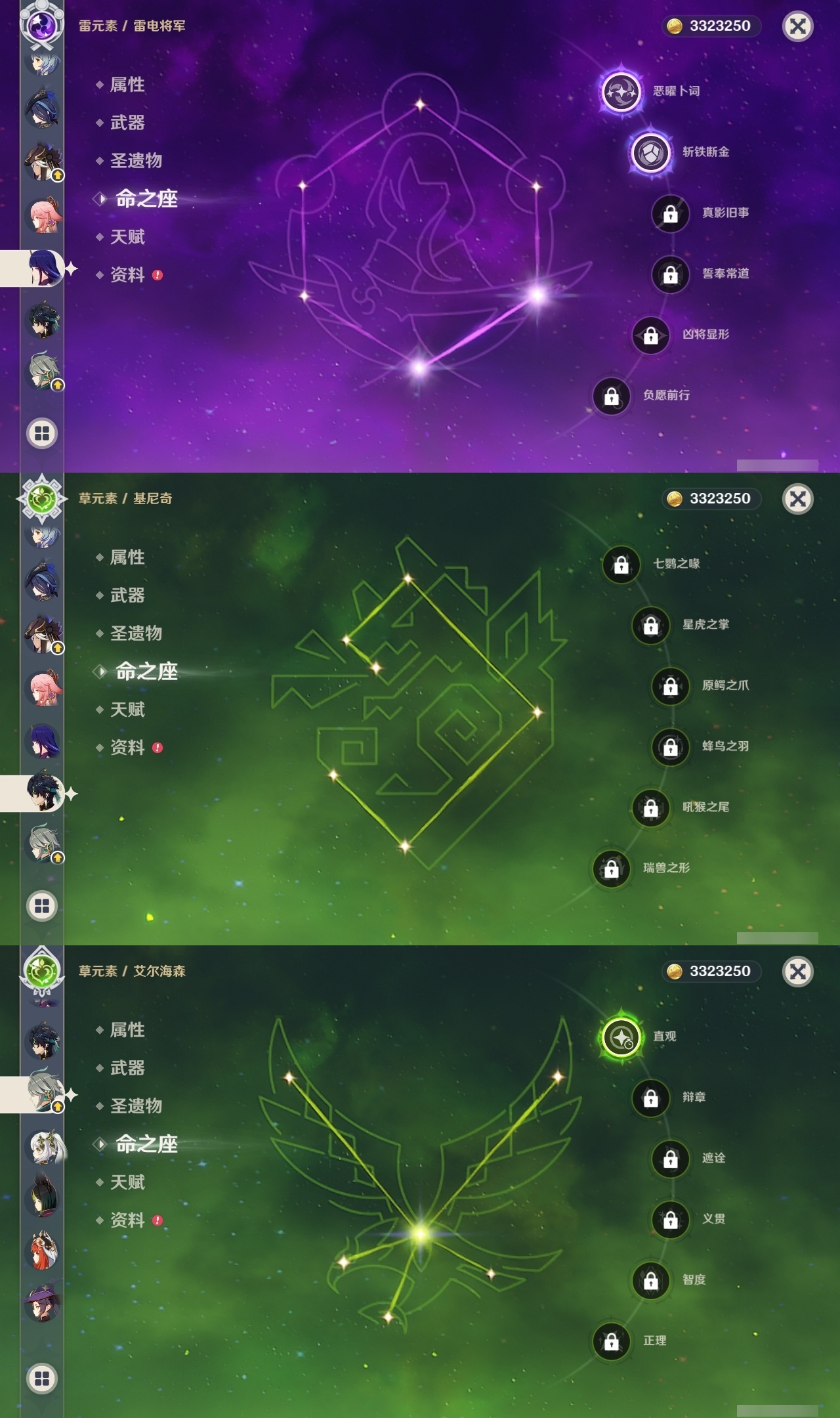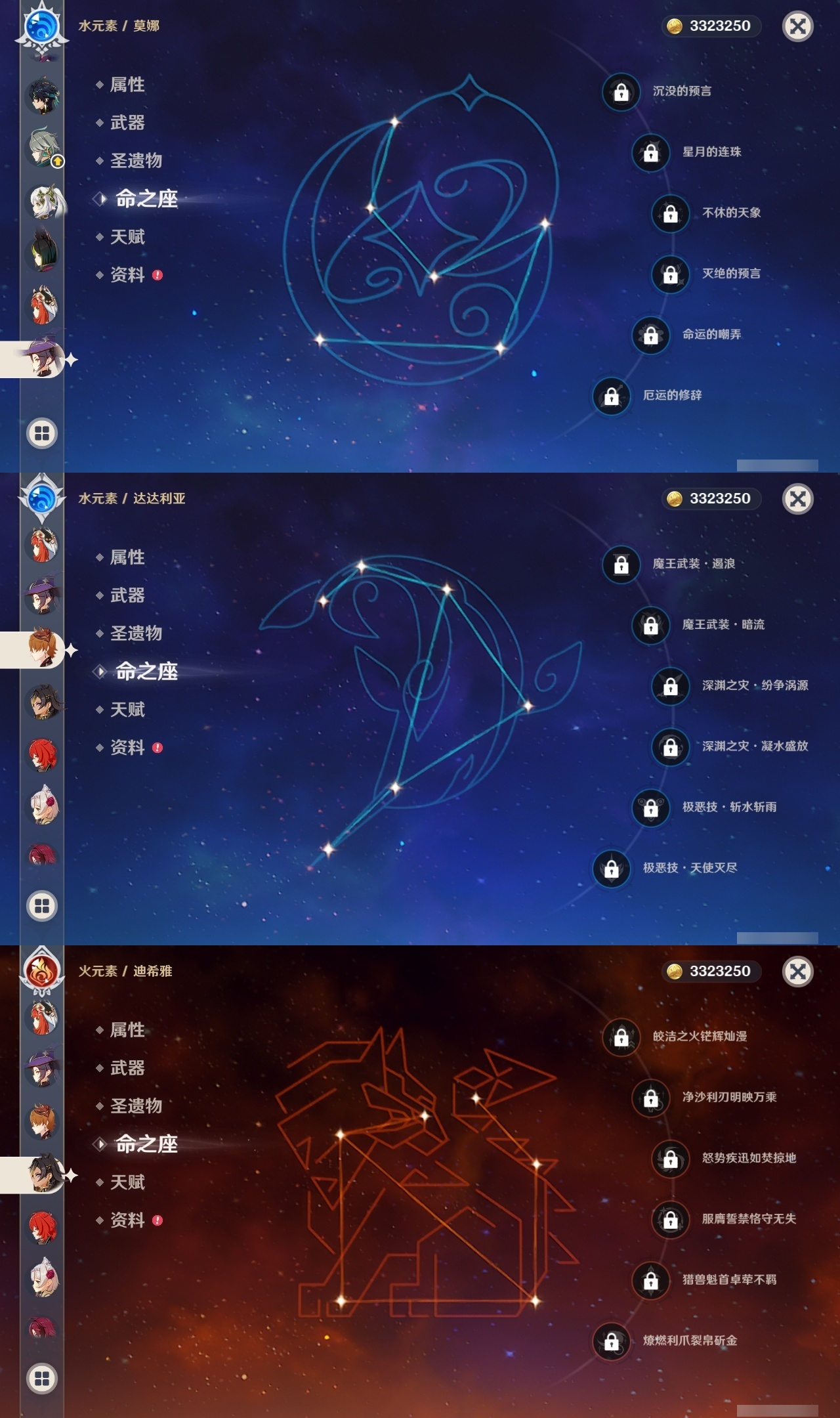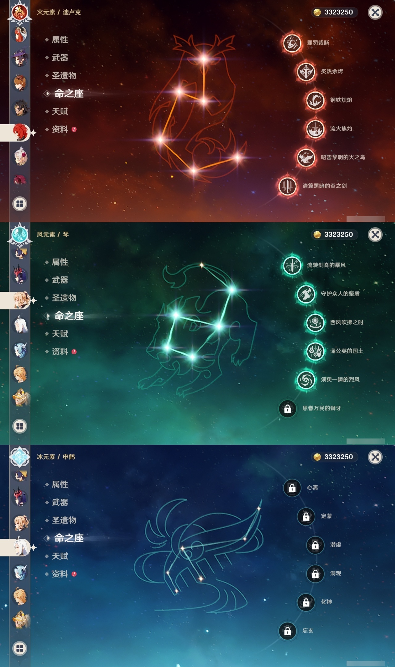 【原神】【lyys8478】冒险等级:60,五星数量:39,五星角色:迪卢克 6命夜兰 6命琴 5命七七 3命刻晴 2命雷电将军 2命甘雨 1命提纳里 1命艾尔海森 1命莫娜基尼奇温迪玛薇卡茜特菈莉优菈迪希雅钟离达达利亚申鹤八重神子莱欧斯利赛诺妮露纳西妲枫原万叶魈克洛琳德__五星武器:阿莫斯之弓 2精山王长牙鹤鸣余音裁叶萃光和璞鸢四风原典天空之傲天空之脊若水圣显之钥千夜浮梦赦罪__四星角色:班尼特 6命行秋 6命九条裟罗 6命香菱 6命久岐忍 6命鹿野院平藏 6命珐露珊 6命凝光 6命瑶瑶 6命莱依拉 6命米卡 6命多莉 6命芭芭拉 6命云堇 6命早柚 6命托马 6命辛焱 6命诺艾尔 6命雷泽 6命菲谢尔 6命北斗 6命菲米尼 6命伊安珊 6命柯莱 5命烟绯 5命夏沃蕾 5命迪奥娜 4命砂糖 4命五郎 4命嘉明 4命赛索斯 4命绮良良 3命卡维 3命欧洛伦 3命坎蒂丝 2命蓝砚 2命重云 2命琳妮特 2命卡齐娜 1命爱诺 1命罗莎莉亚夏洛蒂塔利雅