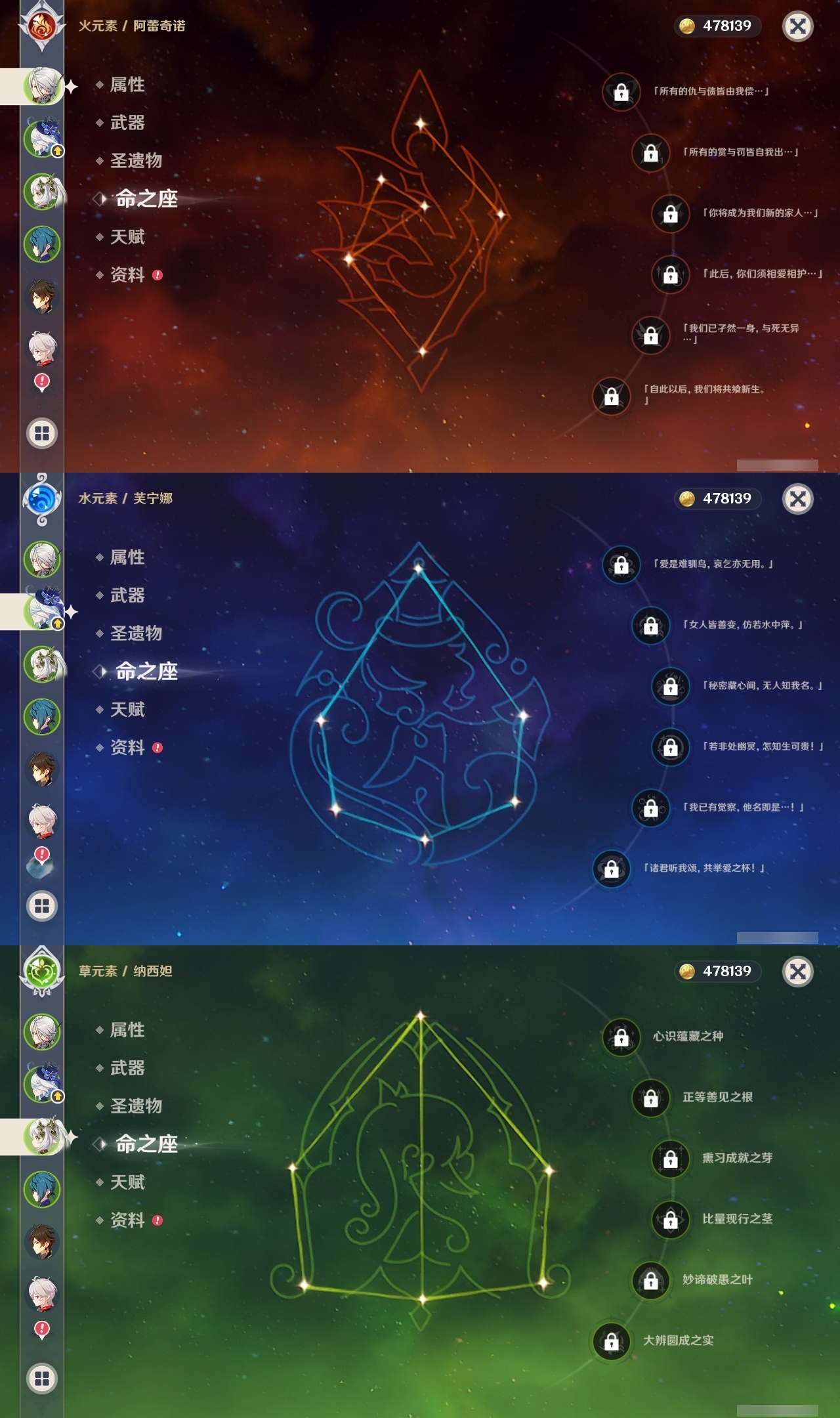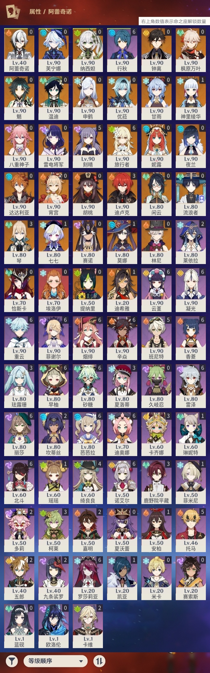 【原神】【lyys8484】冒险等级:60,五星数量:46,五星角色:刻晴 5命迪卢克 3命琴 3命迪希雅 1命莫娜 1命七七 1命神里绫华 1命温迪恰斯卡宵宫优菈钟离达达利亚申鹤八重神子林尼夜兰芙宁娜提纳里闲云赛诺阿蕾奇诺妮露纳西妲流浪者枫原万叶甘雨魈胡桃雷电将军__五星武器:碧落之珑苍古自由之誓飞雷之弦振护摩之杖狼的末路天空之傲天空之脊天空之刃天空之翼无工之剑冬极白星息灾波乱月白经津若水千夜浮梦__四星角色:行秋 6命香菱 6命凝光 6命迪奥娜 6命砂糖 6命芭芭拉 6命云堇 6命早柚 6命烟绯 6命重云 6命辛焱 6命诺艾尔 6命罗莎莉亚 6命雷泽 6命菲谢尔 6命北斗 6命班尼特 5命托马 5命绮良良 4命卡齐娜 3命鹿野院平藏 3命珐露珊 3命柯莱 3命夏洛蒂 3命九条裟罗 2命莱依拉 2命坎蒂丝 2命多莉 2命卡维 2命五郎 2命嘉明 2命瑶瑶 1命菲米尼 1命琳妮特 1命埃洛伊久岐忍米卡欧洛伦蓝砚夏沃蕾赛索斯