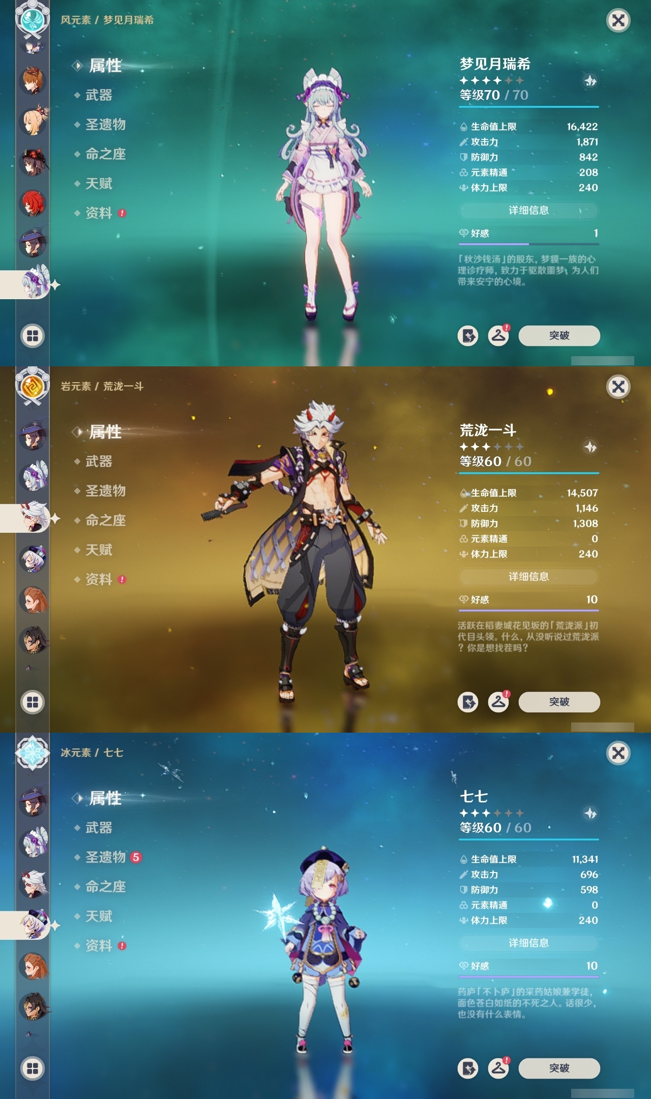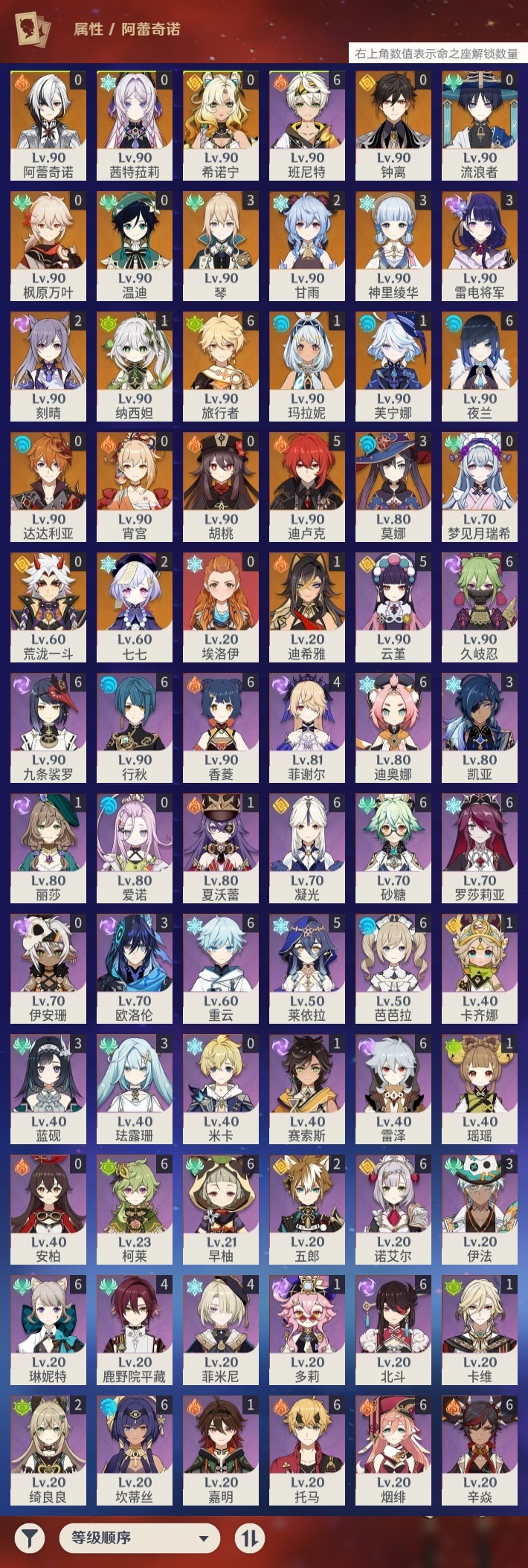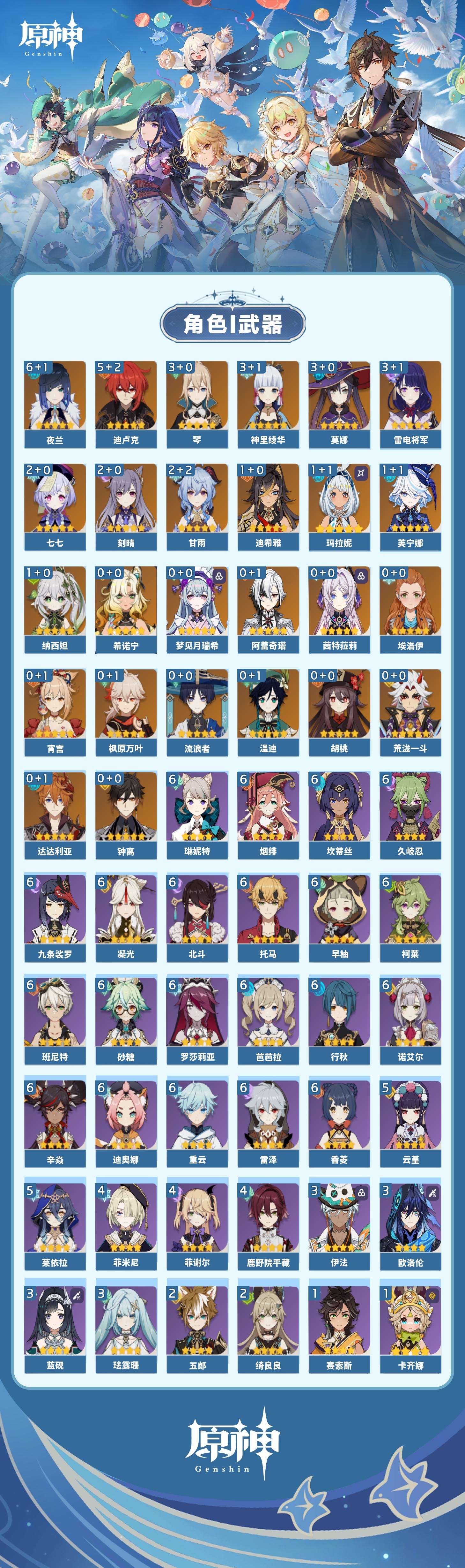 【原神】【lyys8485】冒险等级:60,五星数量:48,五星角色:夜兰 6命迪卢克 5命雷电将军 3命莫娜 3命琴 3命神里绫华 3命甘雨 2命刻晴 2命七七 2命玛拉妮 1命迪希雅 1命芙宁娜 1命纳西妲 1命希诺宁温迪茜特菈莉宵宫钟离荒泷一斗达达利亚梦见月瑞希阿蕾奇诺流浪者枫原万叶胡桃__五星武器:阿莫斯之弓 2精狼的末路 2精冲浪时光碧落之珑静水流涌之辉赤月之形不灭月华苍古自由之誓飞雷之弦振和璞鸢四风原典天空之傲天空之卷天空之刃天空之翼无工之剑雾切之回光薙草之稻光终末嗟叹之诗冬极白星波乱月白经津若水__四星角色:班尼特 6命行秋 6命九条裟罗 6命香菱 6命久岐忍 6命凝光 6命迪奥娜 6命砂糖 6命坎蒂丝 6命柯莱 6命芭芭拉 6命早柚 6命托马 6命烟绯 6命重云 6命辛焱 6命诺艾尔 6命罗莎莉亚 6命雷泽 6命北斗 6命琳妮特 6命莱依拉 5命云堇 5命鹿野院平藏 4命菲谢尔 4命菲米尼 4命珐露珊 3命欧洛伦 3命蓝砚 3命伊法 3命绮良良 2命五郎 2命卡齐娜 1命瑶瑶 1命多莉 1命卡维 1命夏沃蕾 1命嘉明 1命赛索斯 1命埃洛伊米卡伊安珊爱诺