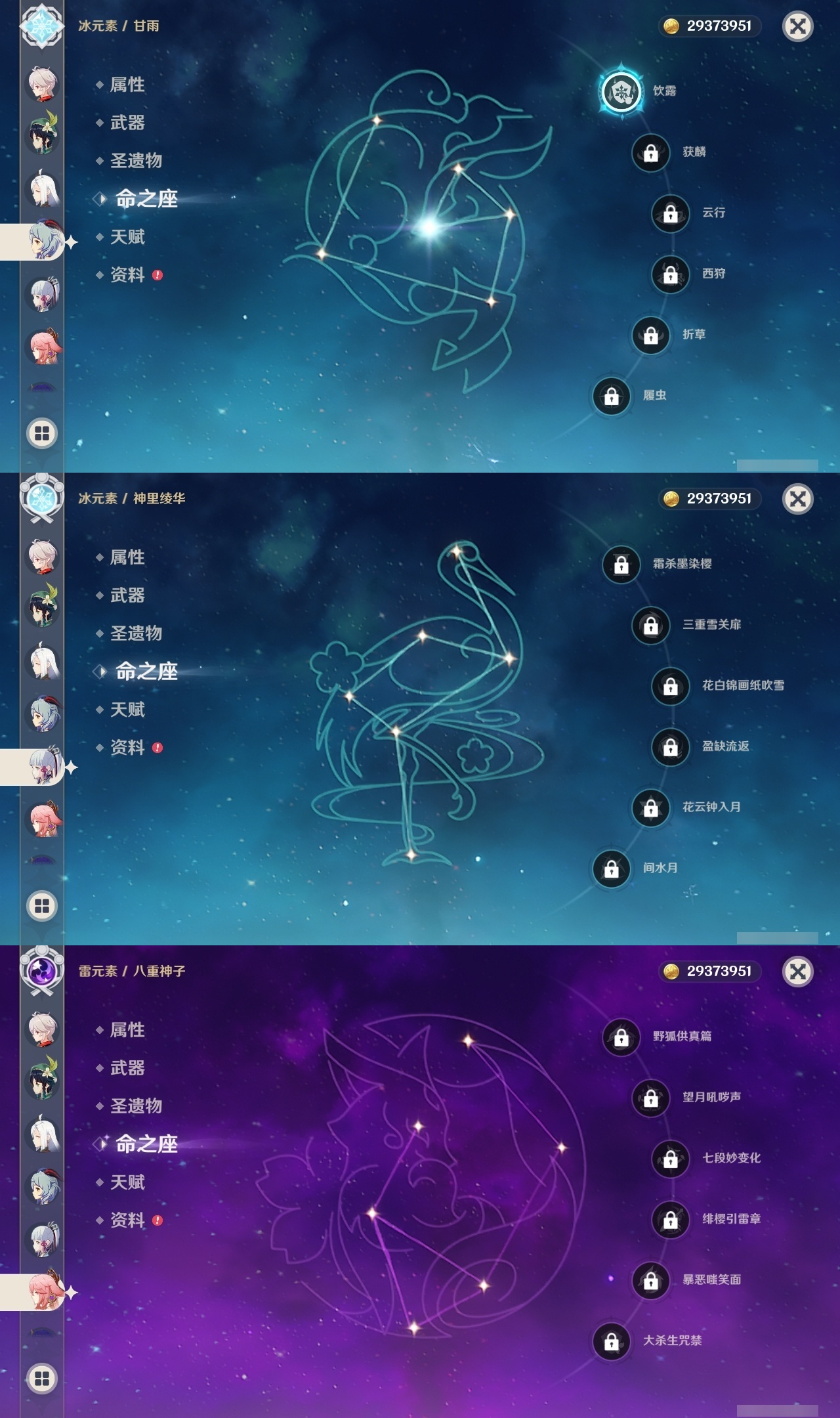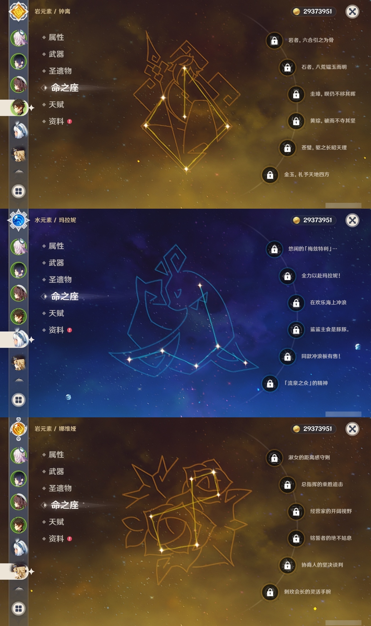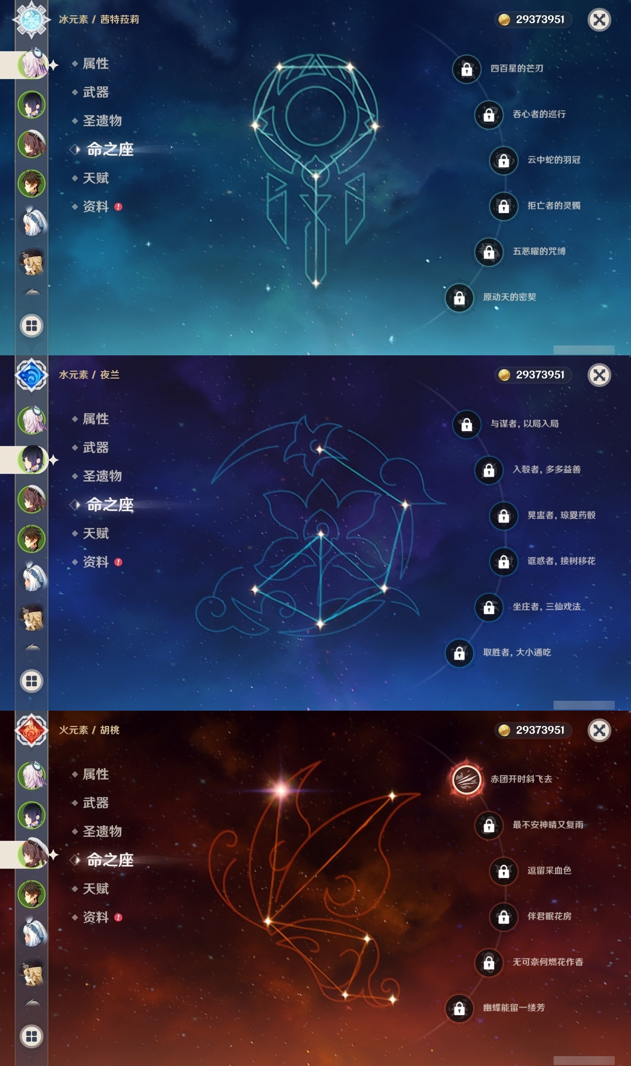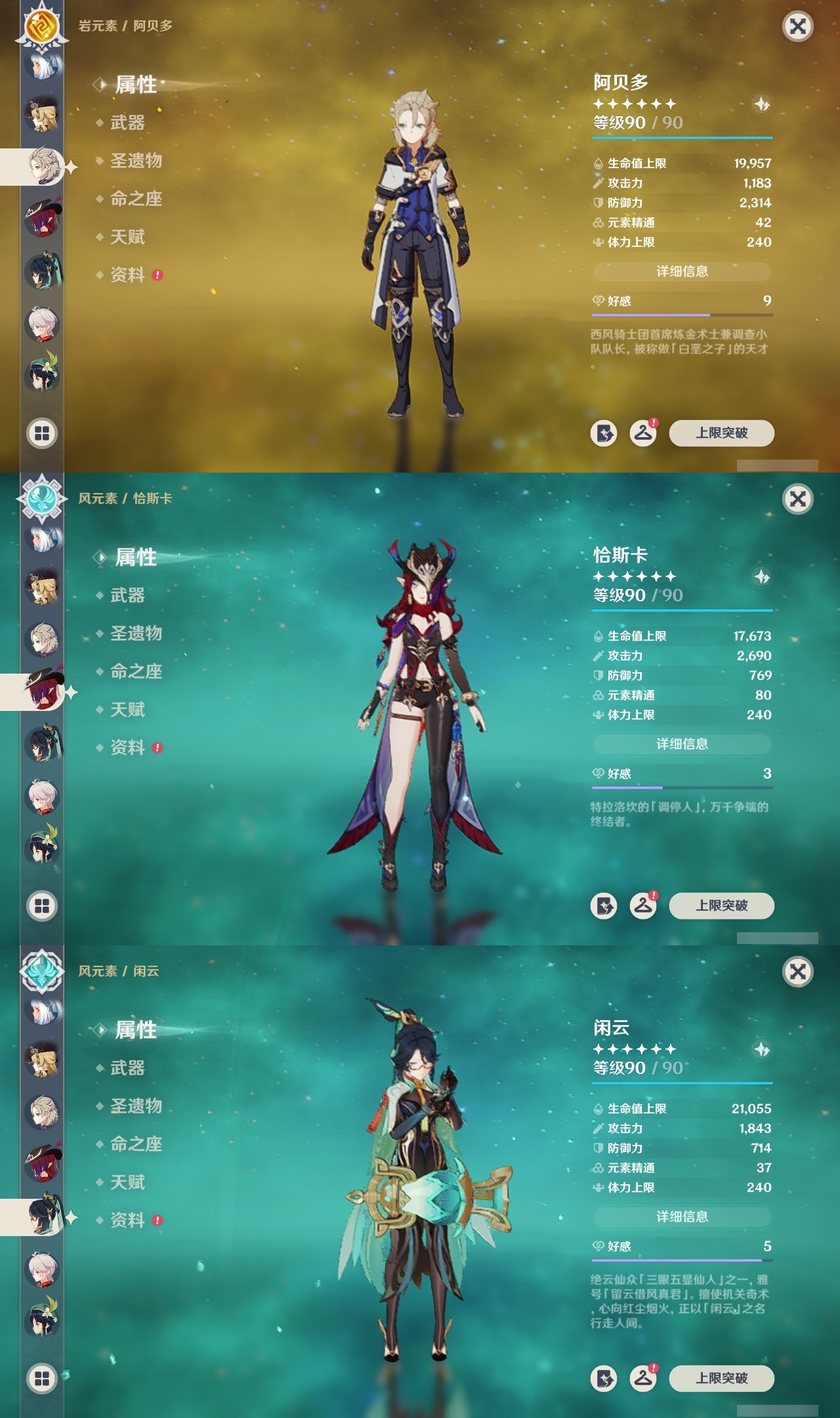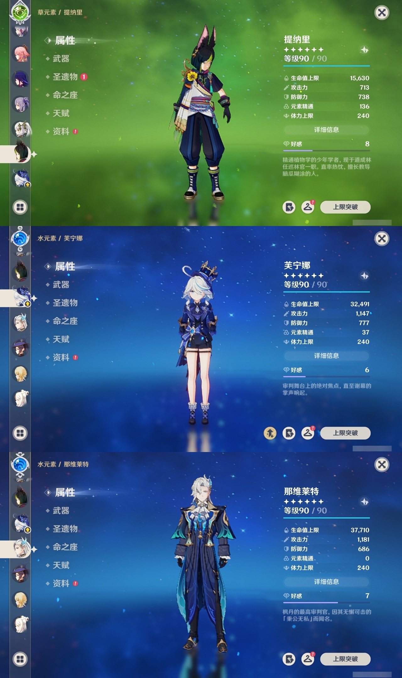 【原神】【lyys8488】冒险等级:60,五星数量:36,五星角色:七七 4命刻晴 3命琴 3命迪卢克 2命莫娜 2命提纳里 2命那维莱特 1命甘雨 1命胡桃 1命玛拉妮神里绫华温迪恰斯卡茜特菈莉迪希雅钟离申鹤八重神子阿贝多夜兰芙宁娜娜维娅闲云纳西妲枫原万叶雷电将军__五星武器:天空之脊 2精最初的大魔术阿莫斯之弓护摩之杖四风原典天空之卷天空之翼雾切之回光若水__四星角色:班尼特 6命行秋 6命珐露珊 6命凝光 6命迪奥娜 6命砂糖 6命瑶瑶 6命米卡 6命柯莱 6命芭芭拉 6命烟绯 6命辛焱 6命诺艾尔 6命罗莎莉亚 6命北斗 6命雷泽 5命莱依拉 4命多莉 4命云堇 4命托马 4命重云 4命嘉明 4命早柚 3命菲谢尔 3命卡齐娜 2命九条裟罗 2命香菱 2命坎蒂丝 2命欧洛伦 2命久岐忍 1命鹿野院平藏 1命蓝砚 1命夏洛蒂 1命夏沃蕾 1命奇偶·女性绮良良卡维五郎菲米尼琳妮特伊安珊爱诺