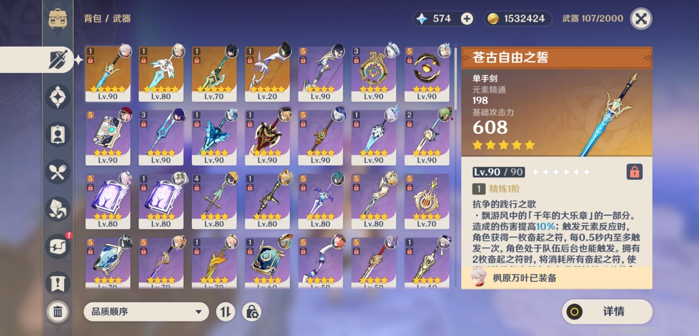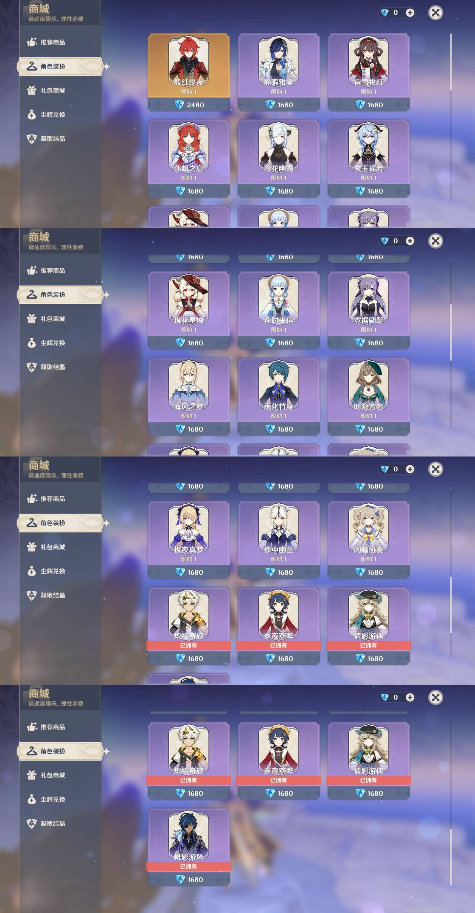 [14165028]35黄 风:0命枫原万叶,1命琴 火:0命阿蕾奇诺,2命迪希雅,0命迪卢克 水:0命那维莱特,0命芙宁娜,0命夜兰,0命玛拉妮,2命莫娜 冰:1命茜特菈莉,0命丝柯克,0命优菈,1命七七 岩:0命希诺宁,0命钟离,0命娜维娅 雷:0命雷电将军,1命刻晴 草:0命基尼奇,0命纳西妲,1命提纳里 弓:精1阿莫斯之弓 单手剑:精1苍古自由之誓,精1天空之刃 双手剑:精1山王长牙 【角色皮肤】 四星角色:班尼特-炽绘奇旅,香菱-岁夜欢哗,绮良良-倩影游侠,凯亚-帆影游风
