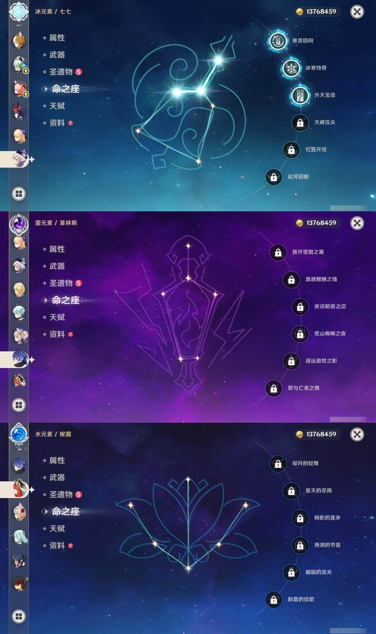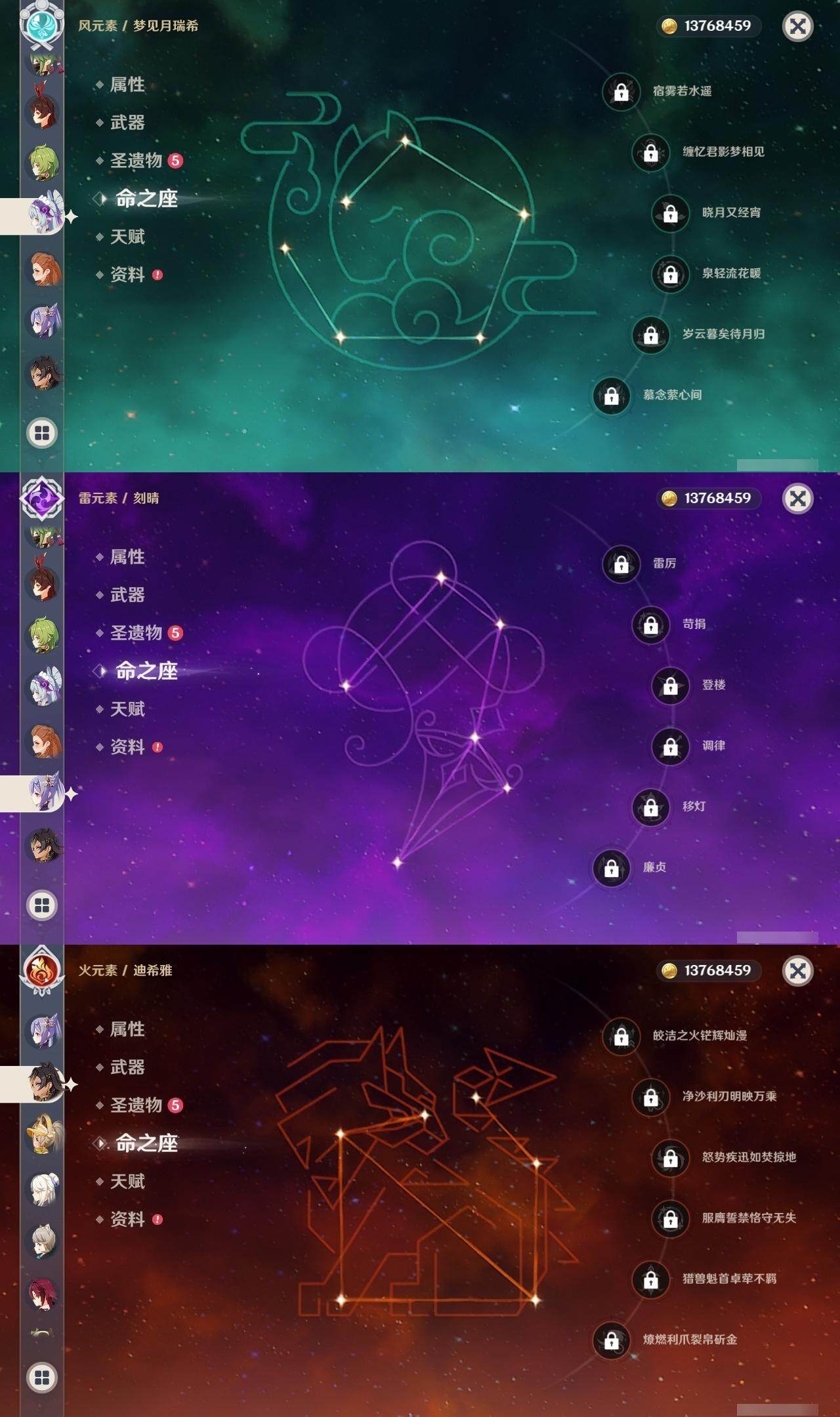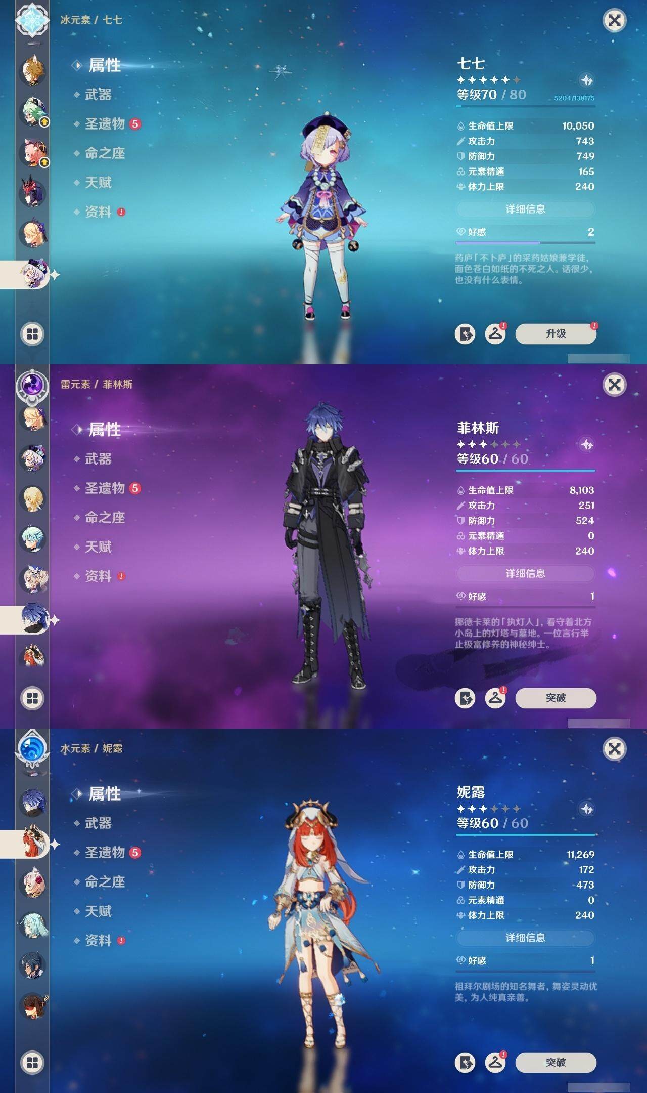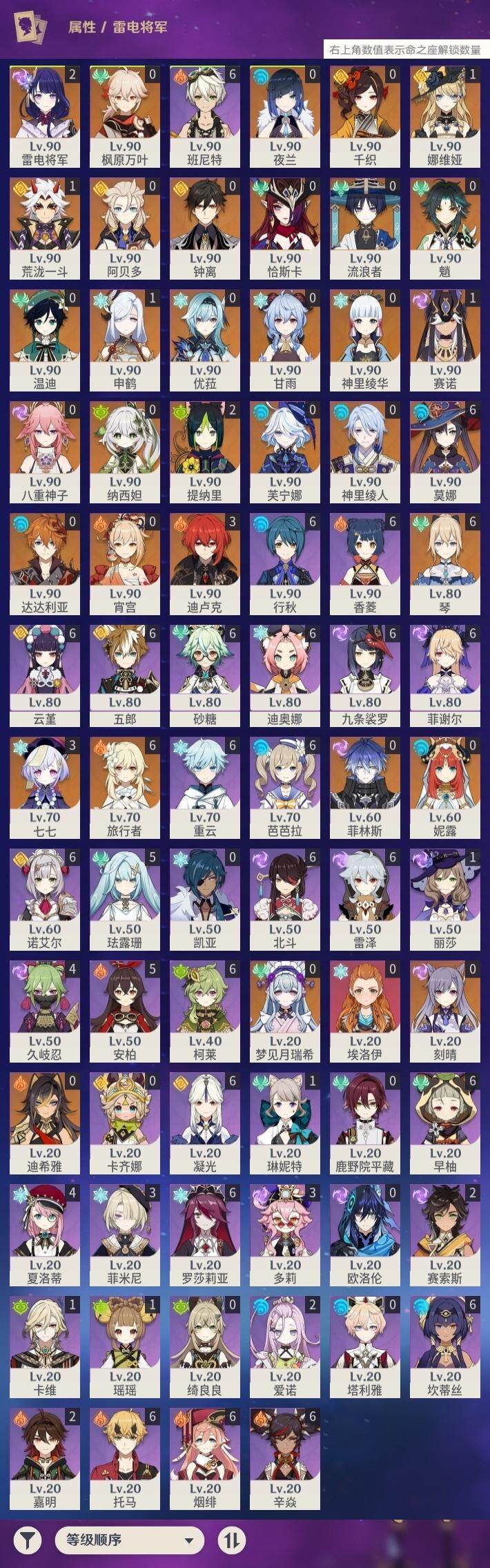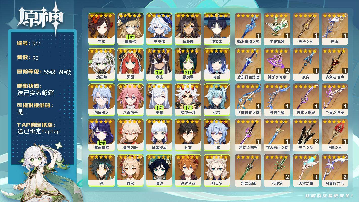 [14170331]60级/90黄/女主/33个五星角色/25个五星武器 0命千织1命娜维娅0命芙宁娜0命迪希雅0命流浪者0命纳西妲0命妮露1命赛诺2命提纳里0命夜兰0命神里绫人0命八重神子1命申鹤1命荒泷一斗0命优菈2命雷电将军0命枫原万叶0命神里绫华0命钟离0命甘雨0命魈0命宵宫0命温迪0命达达利亚0命阿贝多0命刻晴3命七七满命琴满命莫娜3命迪卢克0命恰斯卡0命梦见月瑞希0命菲林斯精1静水流涌之辉精1千夜浮梦精1赤沙之杖精1若水精1波乱月白经津精2神乐之真意精1息灾精1赤角石溃杵精1终末嗟叹之诗精1冬极白星精1薙草之稻光精1飞雷之弦振精1雾切之回光精1苍古自由之誓精2无工之剑精1护摩之杖精1磐岩结绿精2和璞鸢精1天空之翼精2阿莫斯之弓精1天空之刃精3天空之卷精1狼的末路精1天空之傲