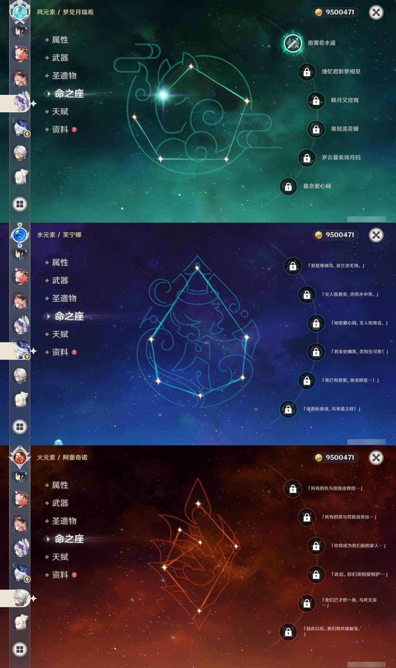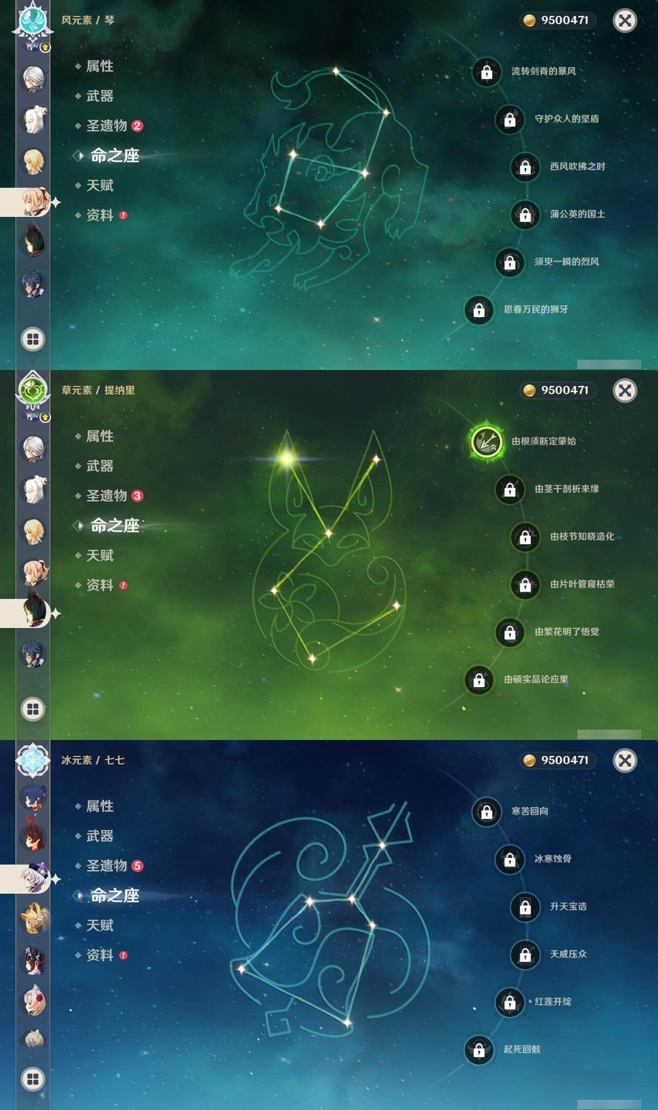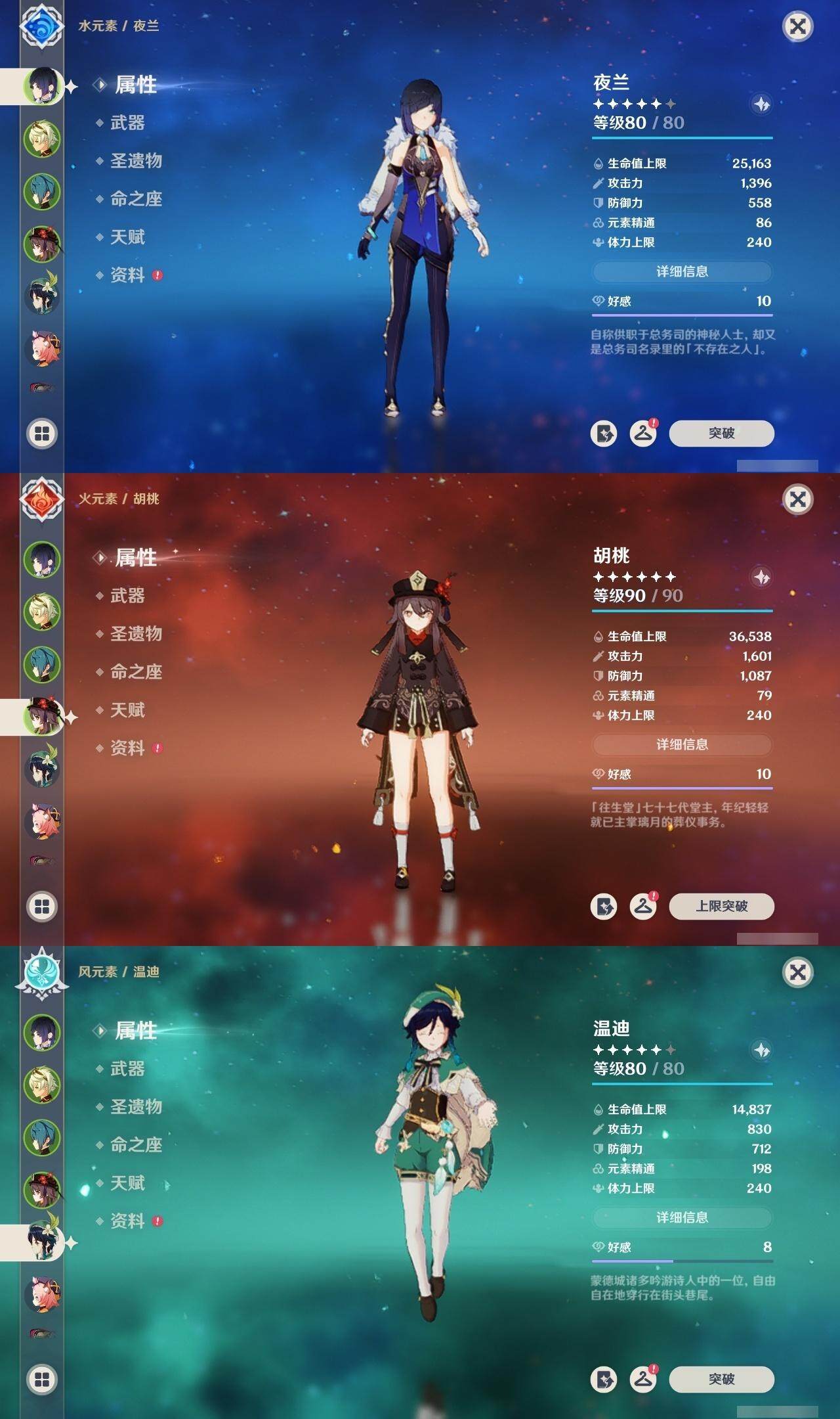 55级/18黄/女主/9个五星角色/4个五星武器 0命阿蕾奇诺0命芙宁娜1命提纳里0命夜兰3命胡桃0命温迪0命七七0命琴1命梦见月瑞希精1护摩之杖精1四风原典精1风鹰剑精1天空之傲