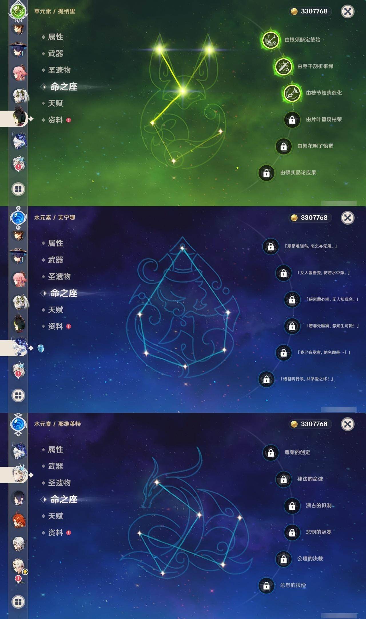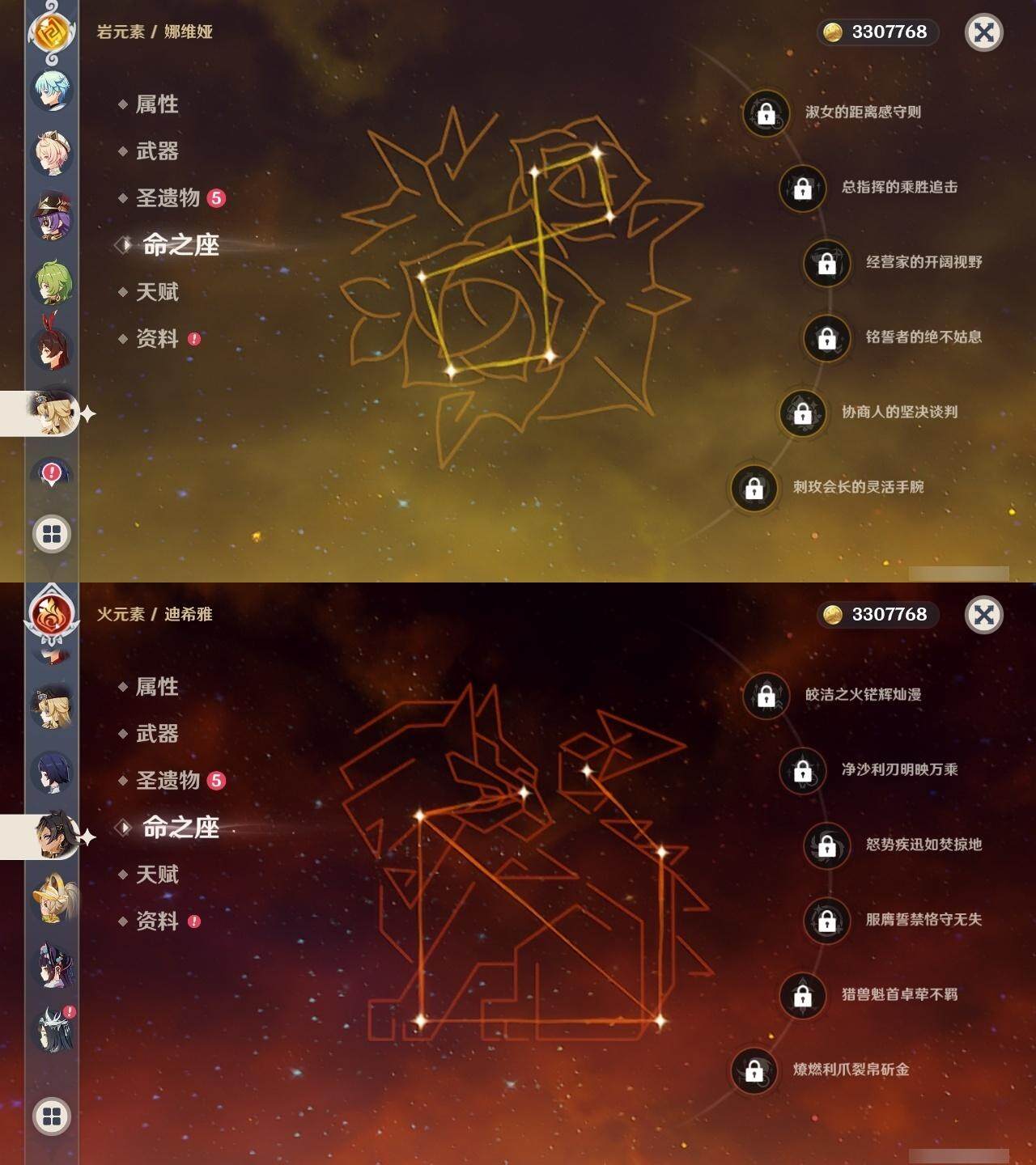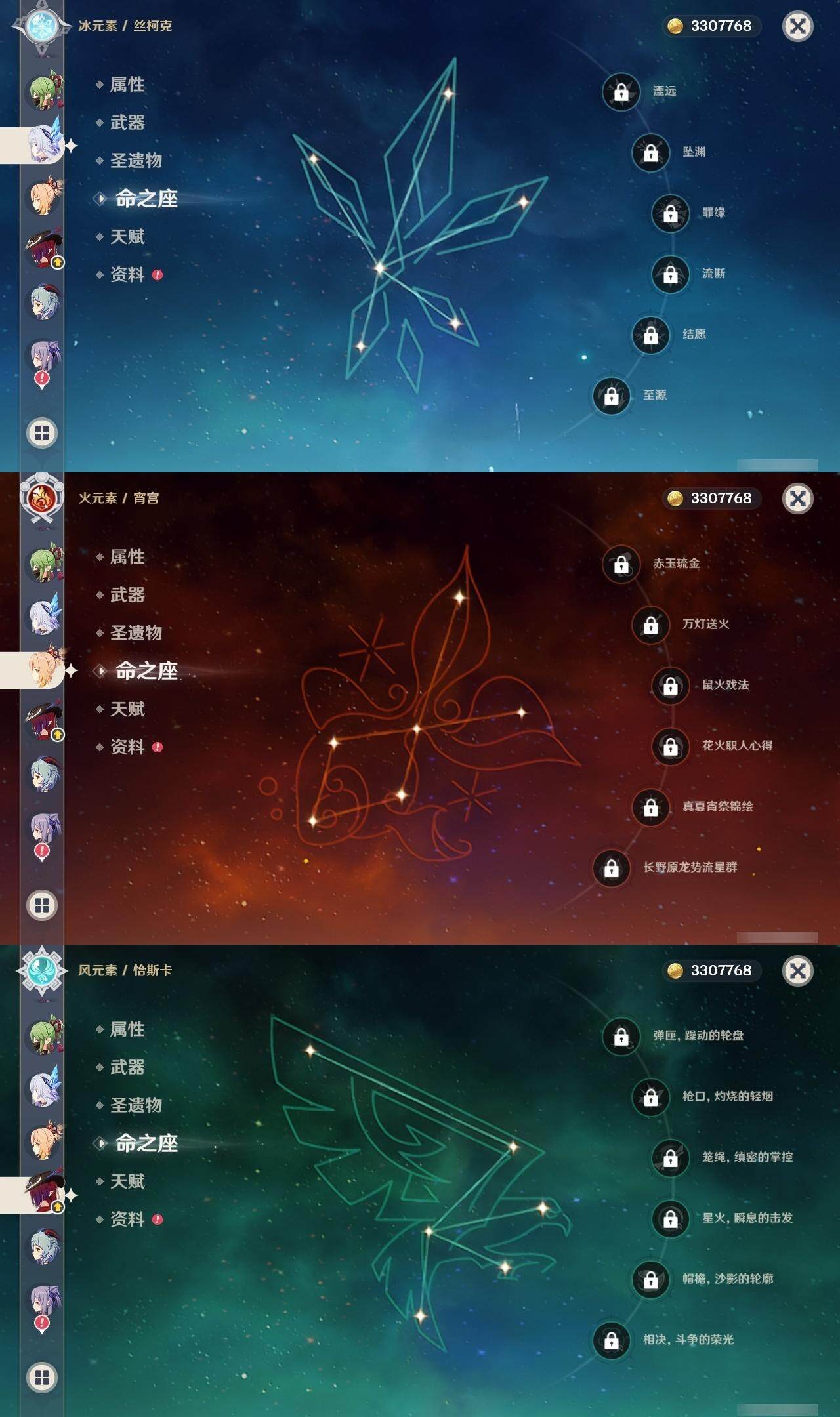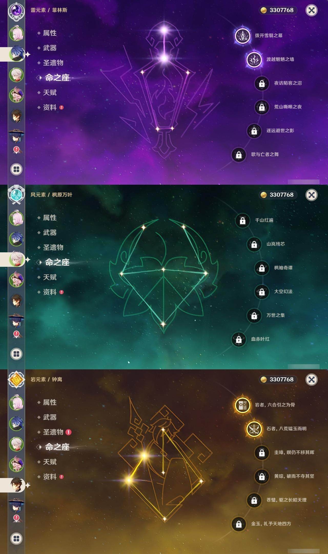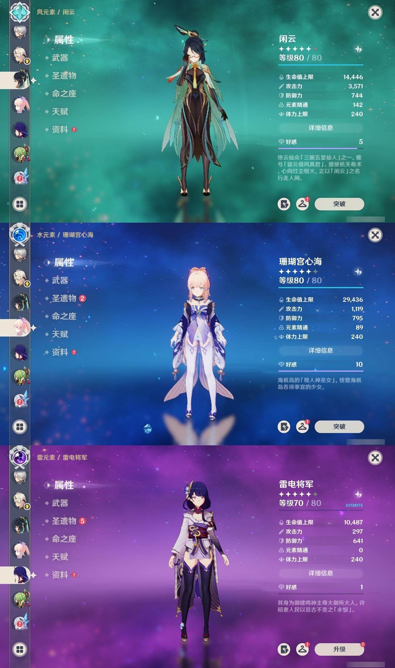 60级/63黄/女主/26个五星角色/14个五星武器 0命阿蕾奇诺0命闲云0命娜维娅0命芙宁娜0命那维莱特0命迪希雅0命流浪者2命纳西妲3命提纳里1命夜兰3命八重神子0命雷电将军0命枫原万叶2命钟离0命甘雨0命宵宫0命温迪1命珊瑚宫心海2命刻晴1命琴2命莫娜2命迪卢克0命恰斯卡1命玛薇卡0命丝柯克2命菲林斯精1鹤鸣余音精1千夜浮梦精1赤沙之杖精1猎人之径精1神乐之真意精1息灾精1冬极白星精1飞雷之弦振精1和璞鸢精2天空之脊精1天空之刃精1天空之傲精1山王长牙精1苍耀