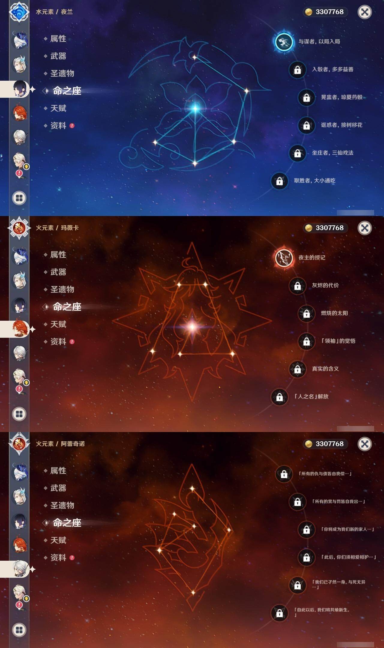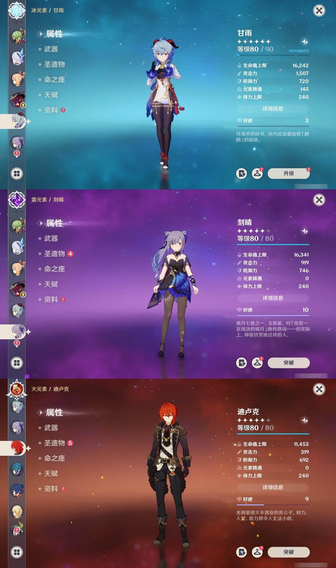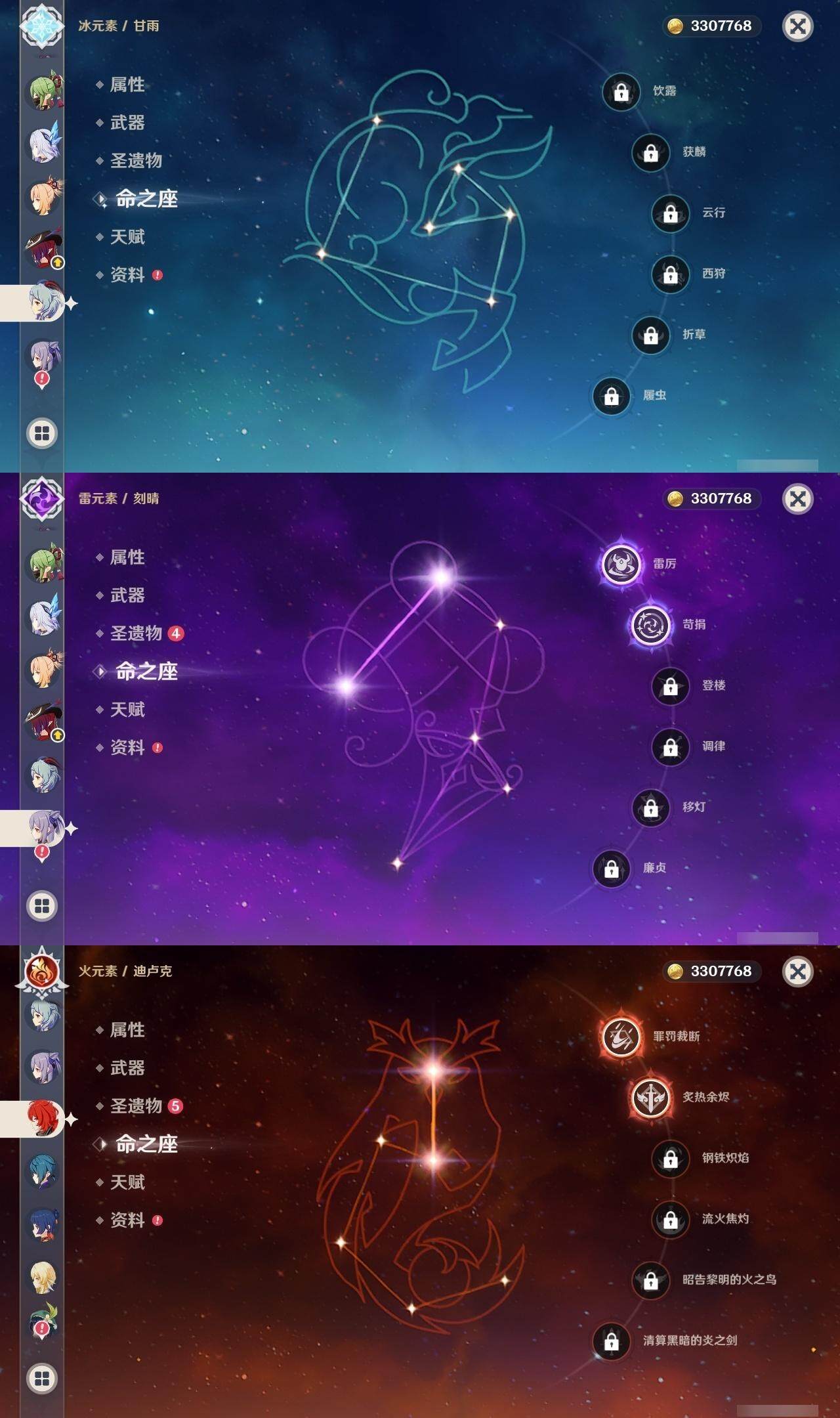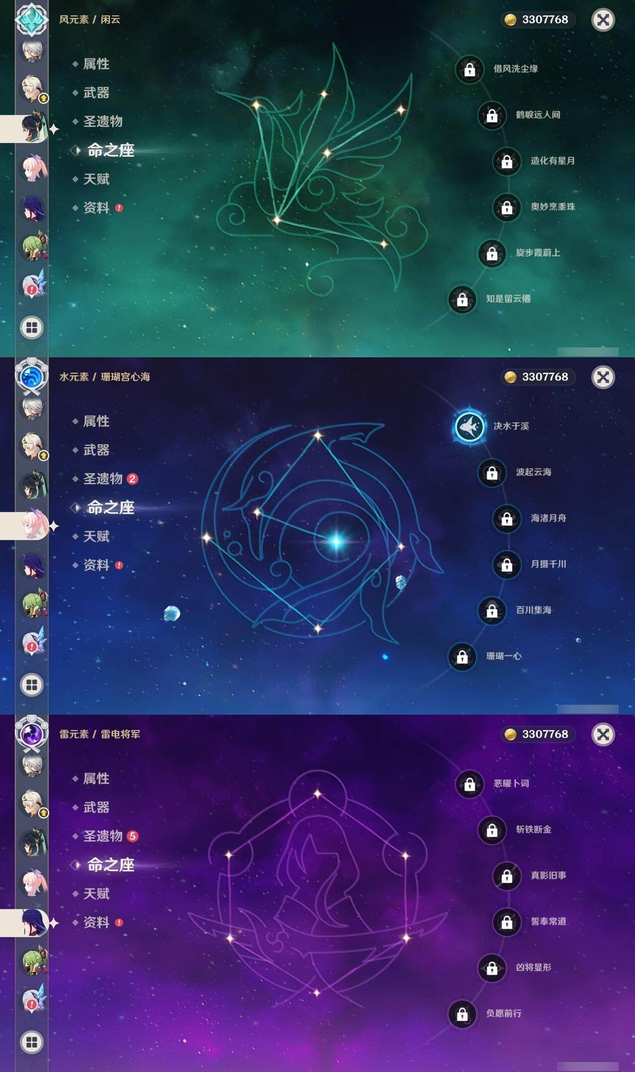 60级/63黄/女主/26个五星角色/14个五星武器 0命阿蕾奇诺0命闲云0命娜维娅0命芙宁娜0命那维莱特0命迪希雅0命流浪者2命纳西妲3命提纳里1命夜兰3命八重神子0命雷电将军0命枫原万叶2命钟离0命甘雨0命宵宫0命温迪1命珊瑚宫心海2命刻晴1命琴2命莫娜2命迪卢克0命恰斯卡1命玛薇卡0命丝柯克2命菲林斯精1鹤鸣余音精1千夜浮梦精1赤沙之杖精1猎人之径精1神乐之真意精1息灾精1冬极白星精1飞雷之弦振精1和璞鸢精2天空之脊精1天空之刃精1天空之傲精1山王长牙精1苍耀