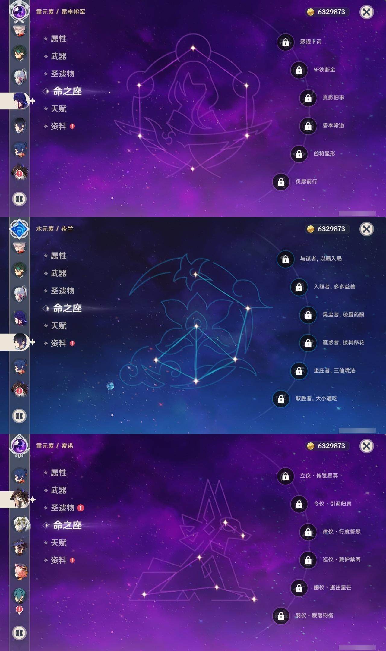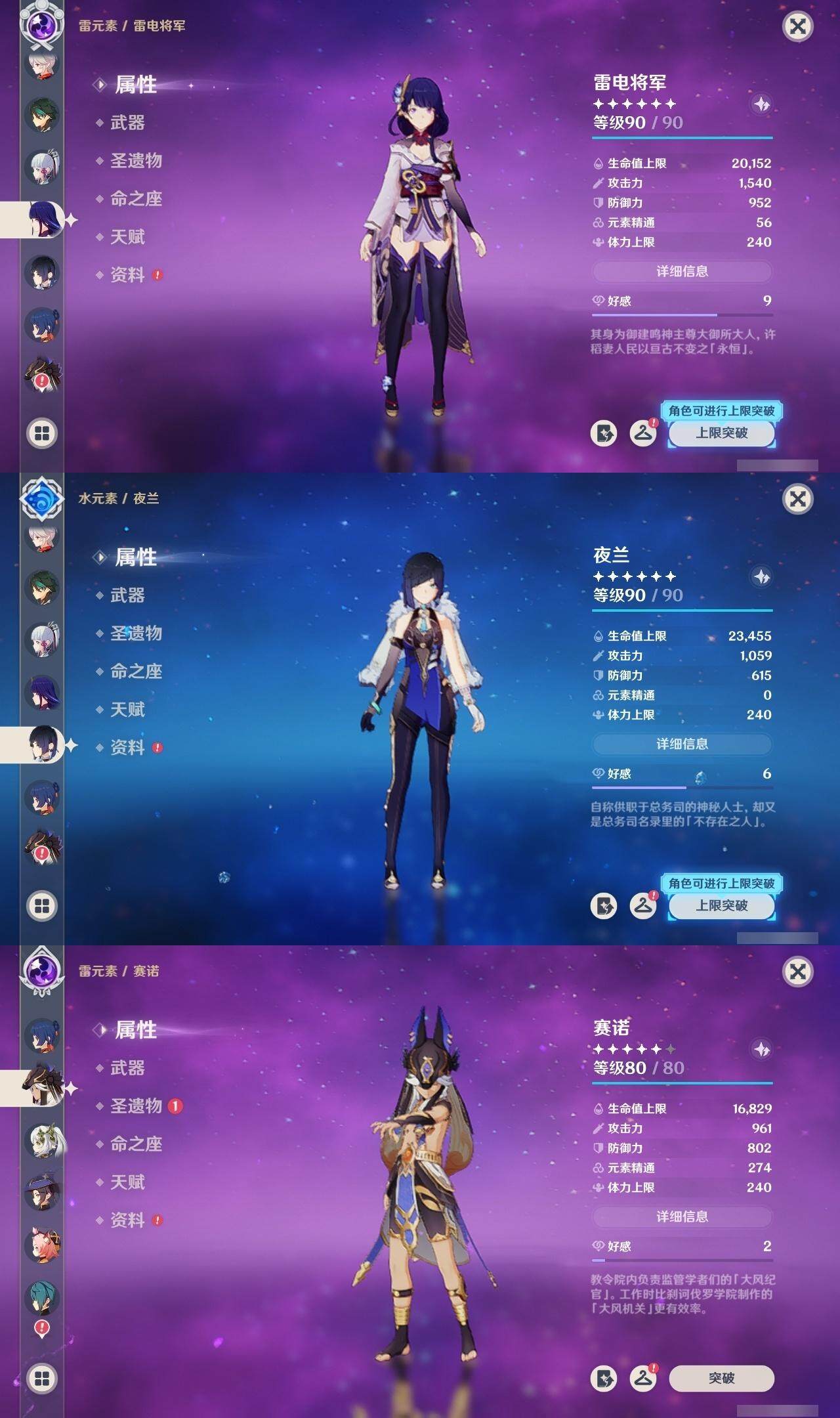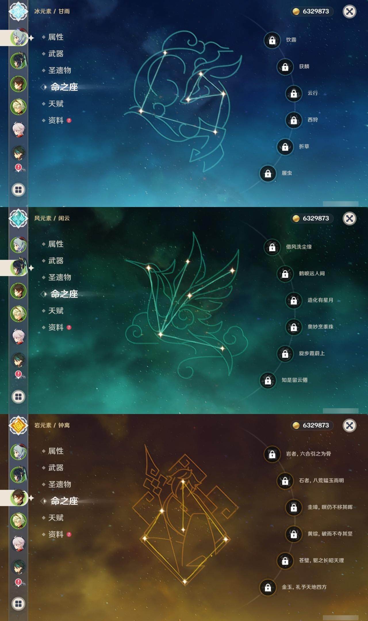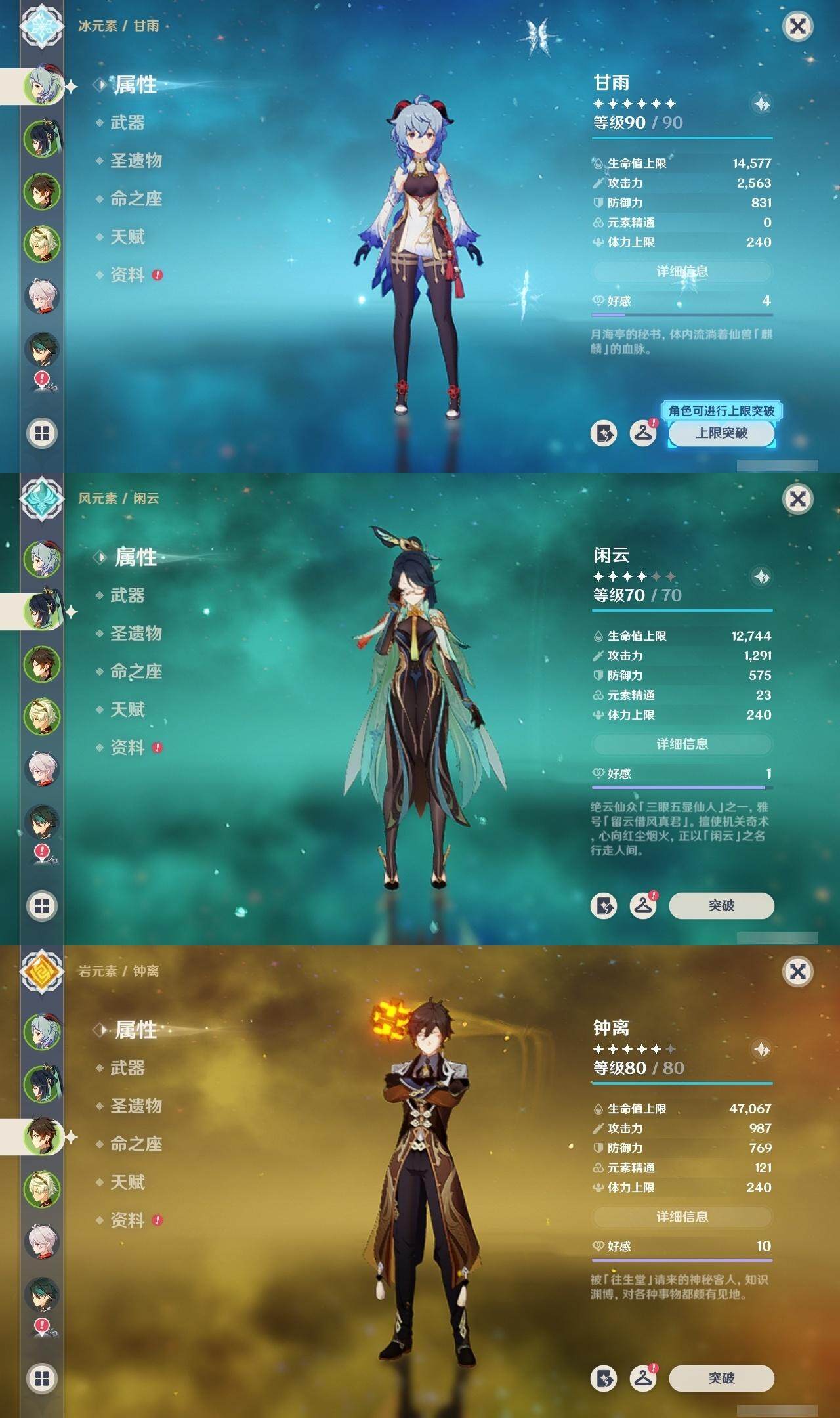 57级/20黄/男主/15个五星角色/3个五星武器 0命闲云0命芙宁娜0命纳西妲0命赛诺0命夜兰0命雷电将军0命枫原万叶0命神里绫华0命钟离0命甘雨0命魈0命刻晴2命七七0命莫娜0命迪卢克精1四风原典精1和璞鸢精1阿莫斯之弓
