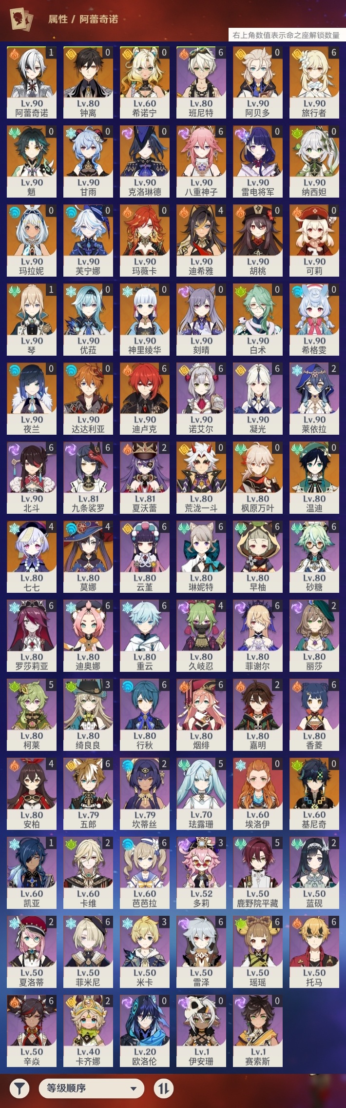【原神】【lyys8566】冒险等级:60,五星数量:53,五星角色:迪卢克 6命八重神子 6命迪希雅 4命莫娜 4命七七 4命阿蕾奇诺 1命琴 1命玛拉妮基尼奇希诺宁白术神里绫华温迪玛薇卡优菈钟离荒泷一斗达达利亚阿贝多夜兰芙宁娜纳西妲枫原万叶甘雨魈胡桃克洛琳德希格雯可莉刻晴雷电将军__五星武器:天空之卷 2精赤沙之杖 2精碧落之珑万世流涌大典赤月之形阿莫斯之弓不灭月华和璞鸢护摩之杖狼的末路磐岩结绿四风原典天空之傲天空之脊天空之刃天空之翼雾切之回光薙草之稻光终末嗟叹之诗神乐之真意波乱月白经津__四星角色:班尼特 6命行秋 6命九条裟罗 6命香菱 6命凝光 6命迪奥娜 6命砂糖 6命瑶瑶 6命芭芭拉 6命云堇 6命早柚 6命托马 6命五郎 6命烟绯 6命重云 6命辛焱 6命诺艾尔 6命罗莎莉亚 6命雷泽 6命菲谢尔 6命北斗 6命菲米尼 6命琳妮特 6命鹿野院平藏 5命珐露珊 5命柯莱 5命久岐忍 4命绮良良 3命米卡 3命多莉 3命卡齐娜 2命莱依拉 2命坎蒂丝 2命卡维 2命蓝砚 2命夏洛蒂 2命夏沃蕾 2命嘉明 2命埃洛伊欧洛伦伊安珊赛索斯