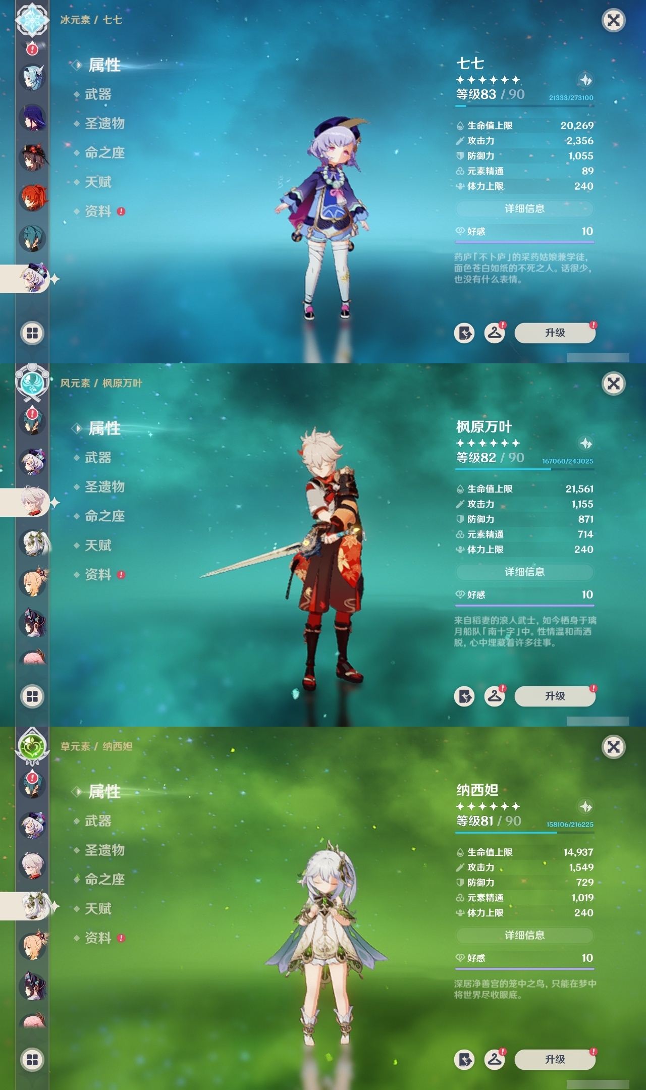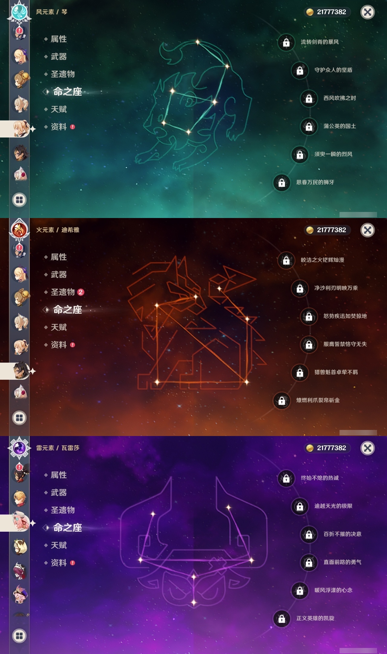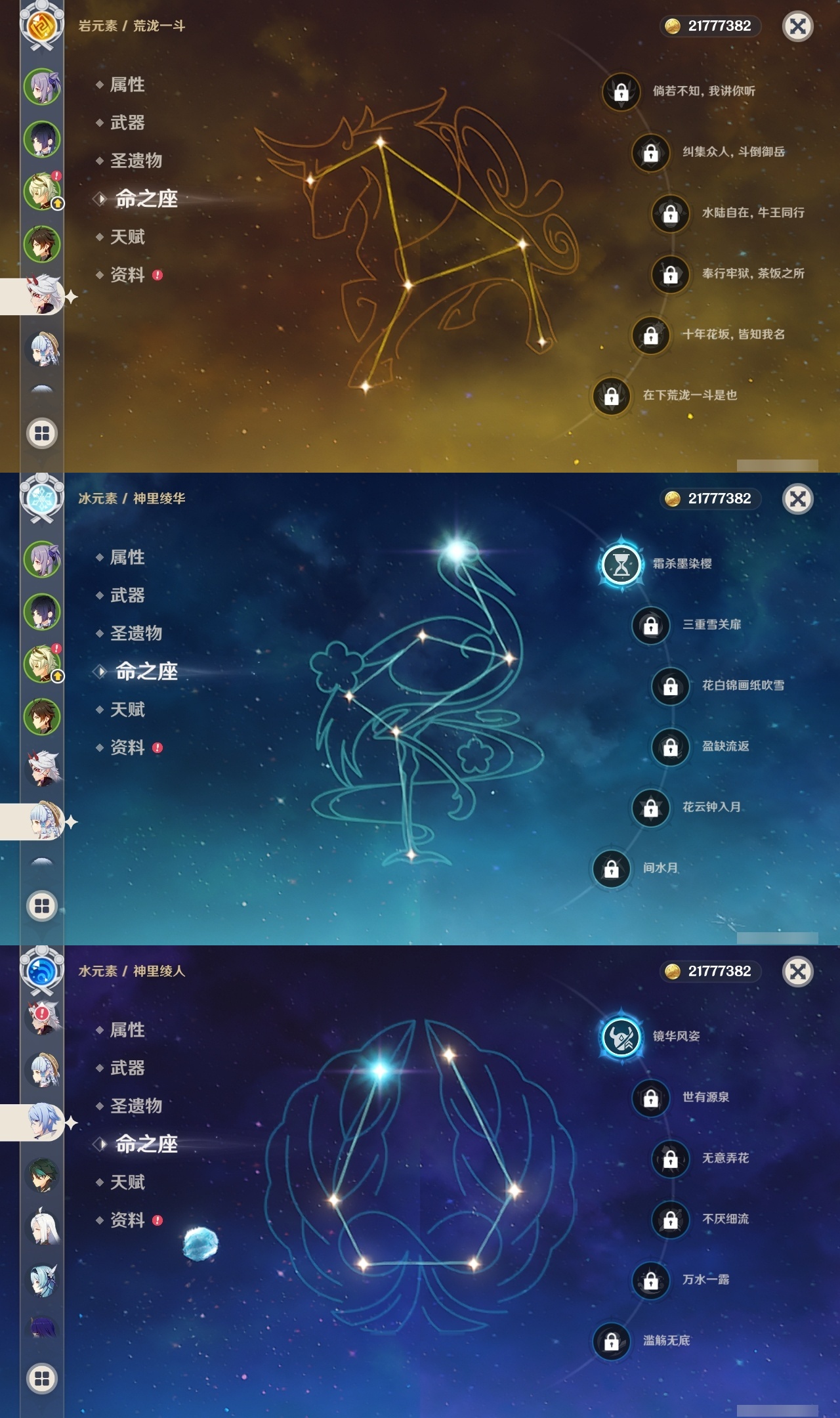 【原神】【lyys8571】冒险等级:59,五星数量:37,五星角色:迪卢克 5命刻晴 5命七七 5命雷电将军 2命优菈 2命夜兰 2命提纳里 2命魈 1命神里绫华 1命神里绫人 1命莫娜琴宵宫迪希雅钟离荒泷一斗申鹤瓦雷莎八重神子那维莱特赛诺纳西妲枫原万叶胡桃__五星武器:风鹰剑 2精和璞鸢 2精碧落之珑万世流涌大典阿莫斯之弓护摩之杖磐岩结绿天空之翼雾切之回光薙草之稻光斫峰之刃赤沙之杖千夜浮梦__四星角色:行秋 6命九条裟罗 6命香菱 6命凝光 6命迪奥娜 6命砂糖 6命柯莱 6命芭芭拉 6命云堇 6命早柚 6命托马 6命五郎 6命烟绯 6命重云 6命诺艾尔 6命罗莎莉亚 6命雷泽 6命菲谢尔 6命北斗 6命班尼特 5命莱依拉 5命米卡 4命多莉 3命辛焱 3命久岐忍 1命鹿野院平藏 1命珐露珊 1命绮良良 1命坎蒂丝 1命卡维 1命琳妮特 1命嘉明 1命瑶瑶夏沃蕾