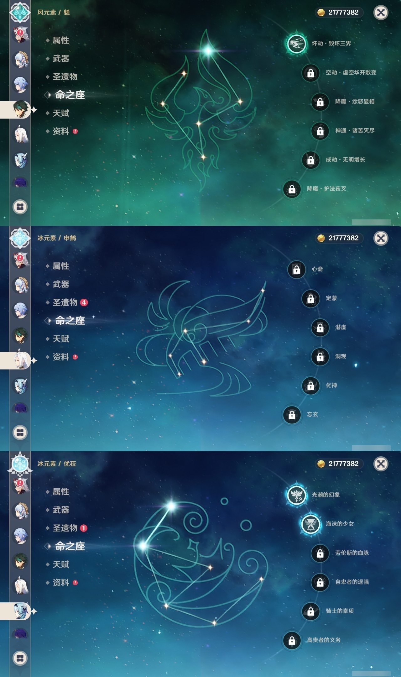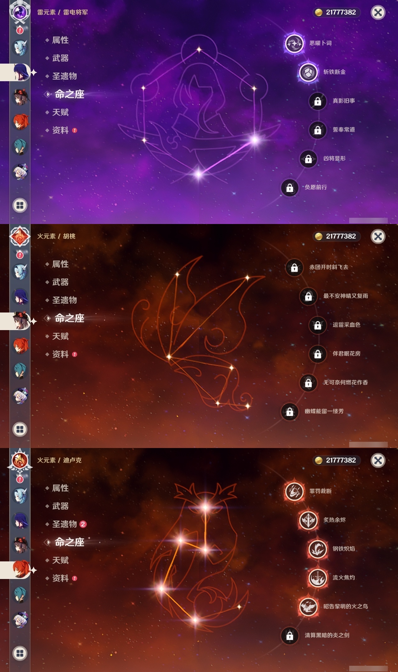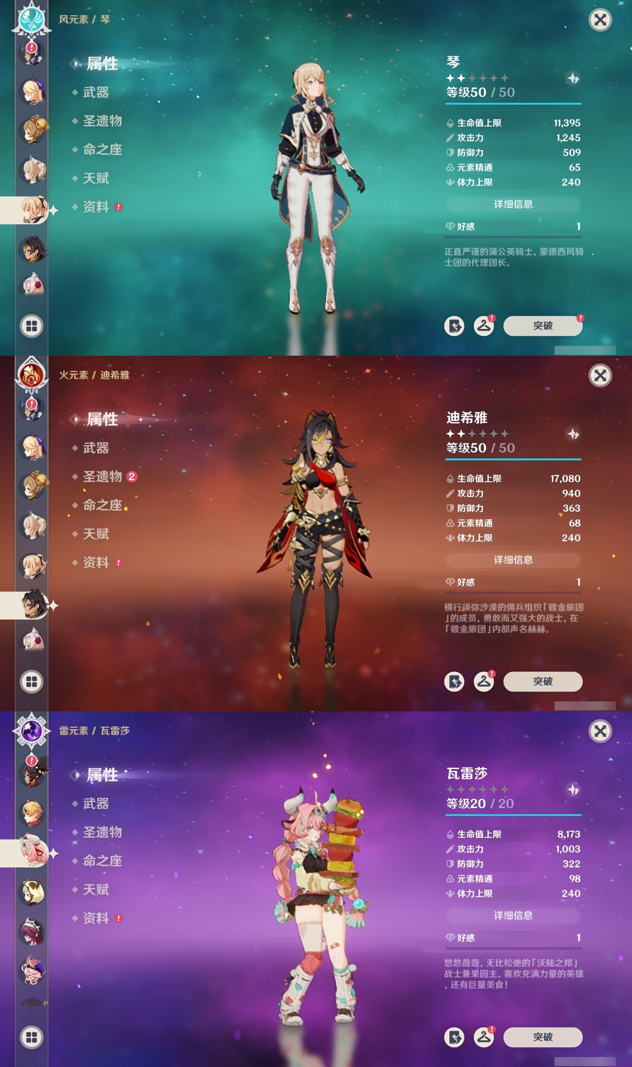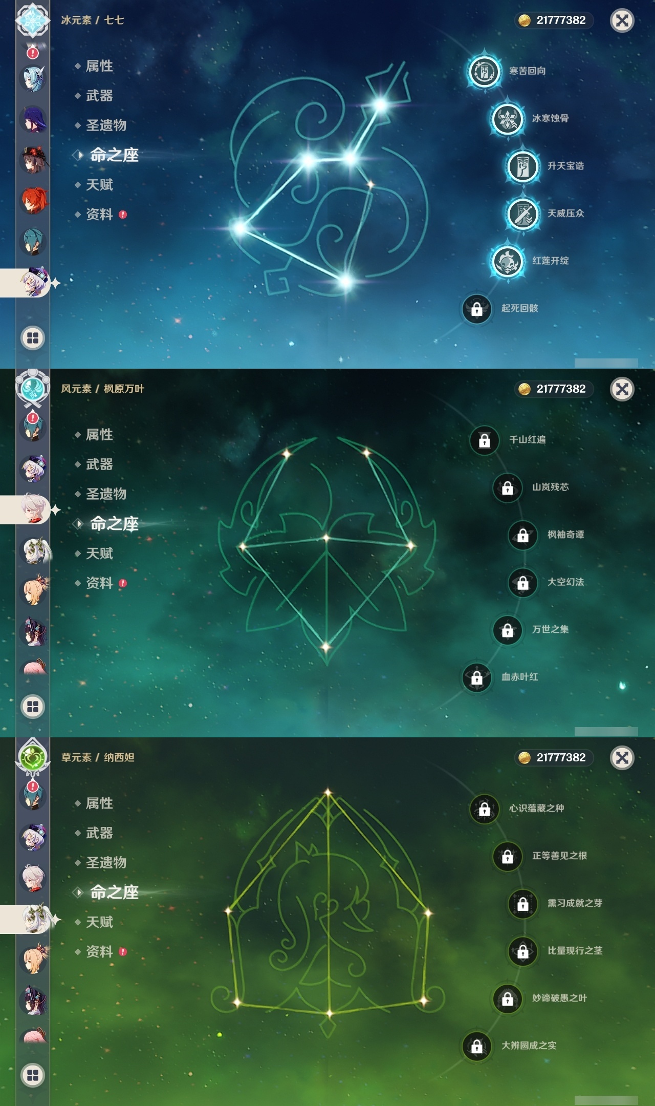 【原神】【lyys8571】冒险等级:59,五星数量:37,五星角色:迪卢克 5命刻晴 5命七七 5命雷电将军 2命优菈 2命夜兰 2命提纳里 2命魈 1命神里绫华 1命神里绫人 1命莫娜琴宵宫迪希雅钟离荒泷一斗申鹤瓦雷莎八重神子那维莱特赛诺纳西妲枫原万叶胡桃__五星武器:风鹰剑 2精和璞鸢 2精碧落之珑万世流涌大典阿莫斯之弓护摩之杖磐岩结绿天空之翼雾切之回光薙草之稻光斫峰之刃赤沙之杖千夜浮梦__四星角色:行秋 6命九条裟罗 6命香菱 6命凝光 6命迪奥娜 6命砂糖 6命柯莱 6命芭芭拉 6命云堇 6命早柚 6命托马 6命五郎 6命烟绯 6命重云 6命诺艾尔 6命罗莎莉亚 6命雷泽 6命菲谢尔 6命北斗 6命班尼特 5命莱依拉 5命米卡 4命多莉 3命辛焱 3命久岐忍 1命鹿野院平藏 1命珐露珊 1命绮良良 1命坎蒂丝 1命卡维 1命琳妮特 1命嘉明 1命瑶瑶夏沃蕾