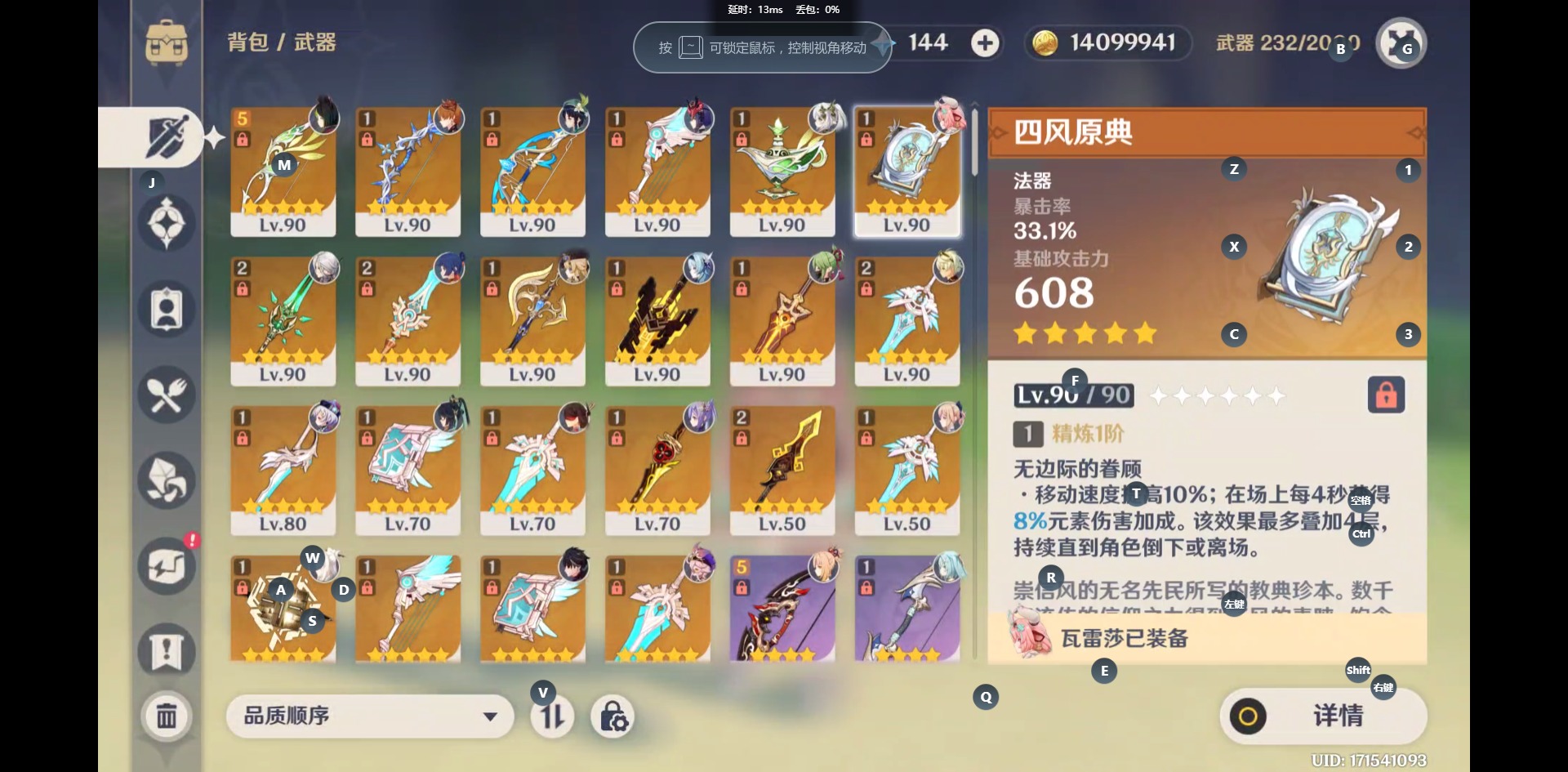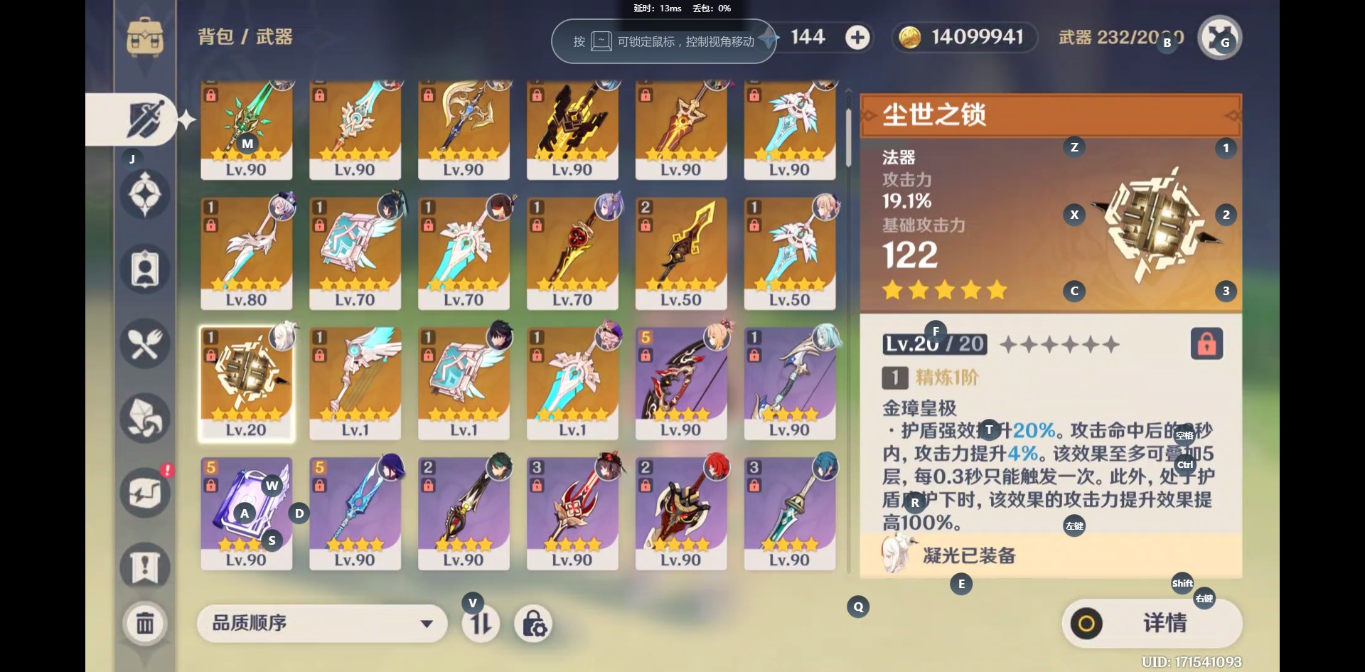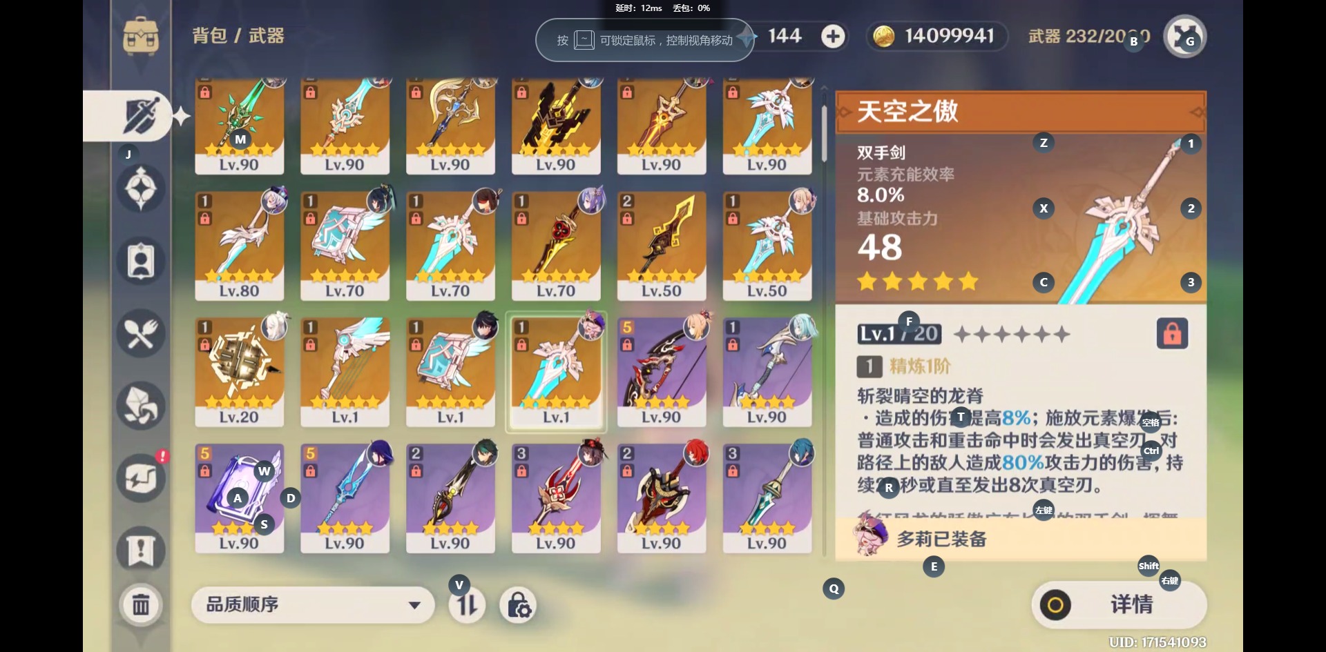 [14234229]【总黄数】:46 【冒险等级】:59 【6命金色角色】:满命钟离满命提纳里满命七七满命莫娜 【4命金色角色】:四命刻晴 【3命金色角色】:三命迪卢克 【1命金色角色】:一命闲云一命琴 【0命金色角色】:瓦雷莎玛薇卡阿蕾奇诺娜维娅莱欧斯利白术八重神子雷电将军宵宫枫原万叶优菈胡桃魈达达利亚温迪 【5精武器】:猎人之径 【2精武器】:和璞鸢贯虹之槊天空之脊 【1精武器】:有乐御簾切裁断千夜浮梦圣显之钥冬极白星终末嗟叹之诗风鹰剑天空之傲天空之卷无工之剑天空之翼天空之刃四风原典
