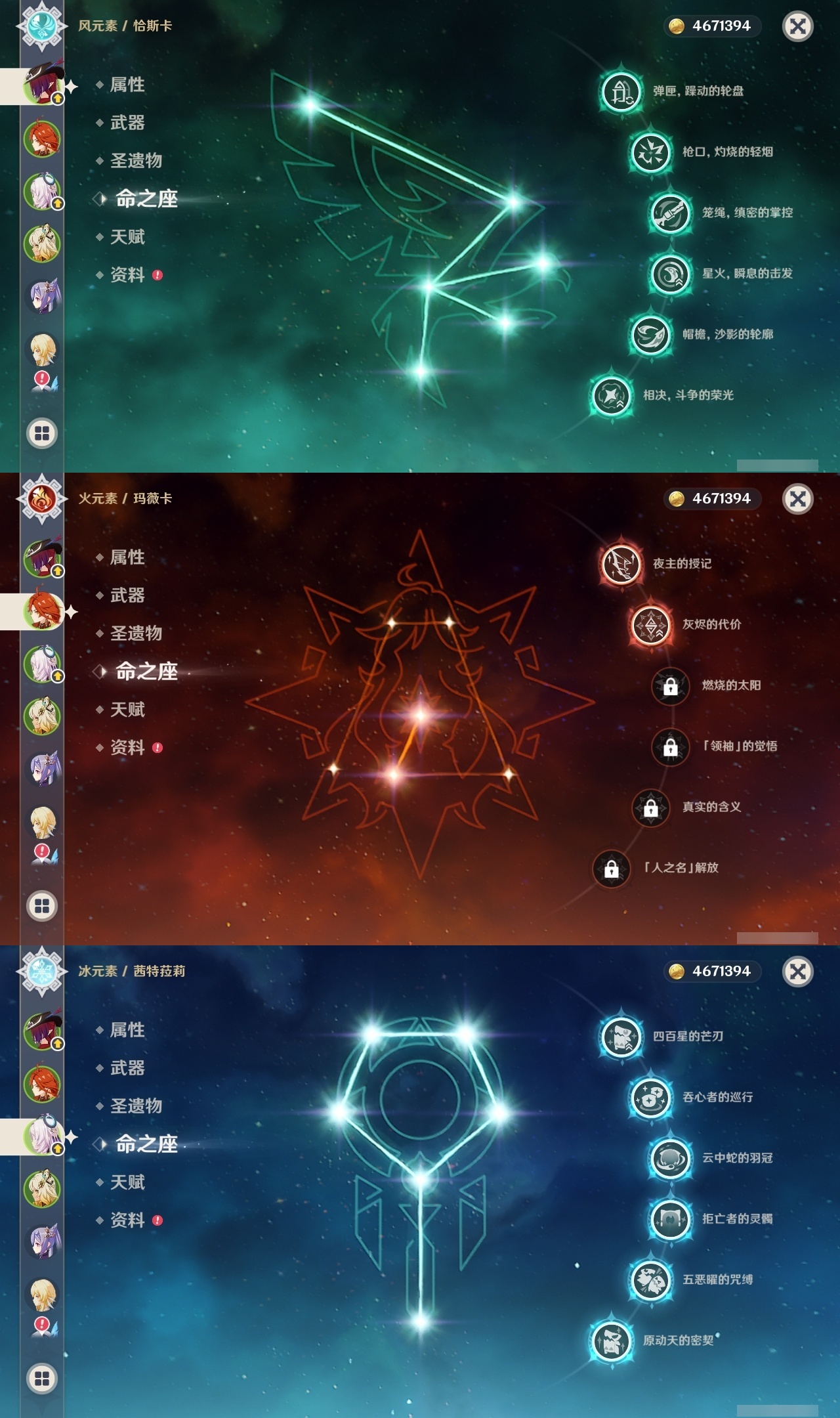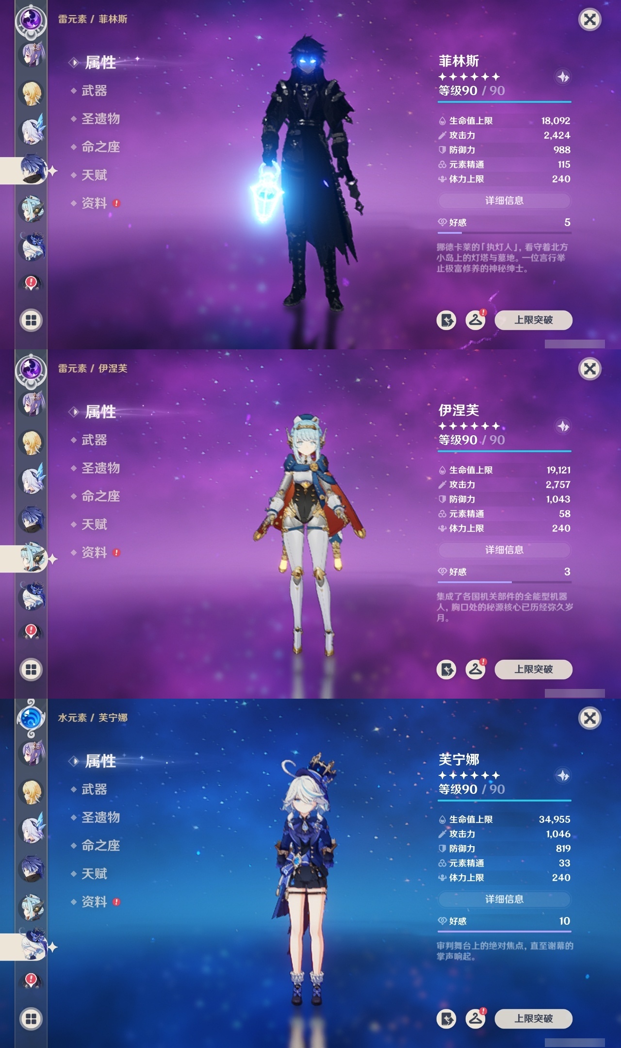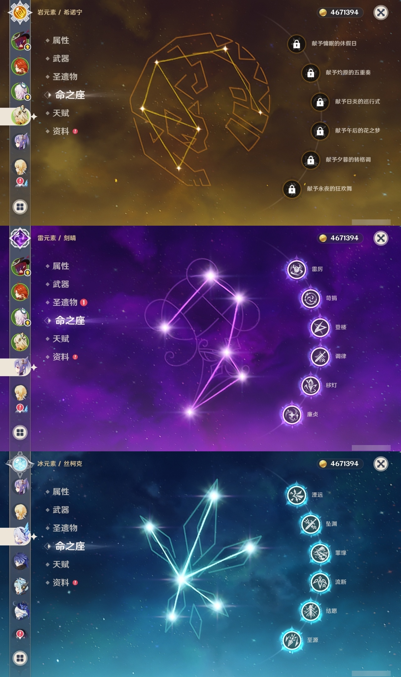 【原神】满命,冒险等级:60,五星数量:29,五星角色:恰斯卡 6命茜特菈莉 6命丝柯克 6命刻晴 6命迪卢克 4命玛薇卡 2命琴 2命芙宁娜 1命菲林斯 1命七七 1命夜兰 1命莫娜希诺宁迪希雅梦见月瑞希提纳里伊涅芙__五星武器:星鹫赤羽 5精祭星者之望焚曜千阳最初的大魔术苍耀血染荒城阿莫斯之弓狼的末路天空之翼终末嗟叹之诗息灾若水__四星角色:卡齐娜 6命行秋 6命迪奥娜 6命砂糖 6命米卡 6命坎蒂丝 6命多莉 6命柯莱 6命芭芭拉 6命欧洛伦 6命菲谢尔 6命伊安珊 6命塔利雅 6命爱诺 6命赛索斯 6命班尼特 5命香菱 5命云堇 5命夏洛蒂 5命珐露珊 4命瑶瑶 4命北斗 4命烟绯 3命久岐忍 2命鹿野院平藏 2命绮良良 2命莱依拉 2命琳妮特 2命凝光 1命托马 1命五郎 1命重云 1命诺艾尔 1命雷泽 1命菲米尼 1命夏沃蕾 1命九条裟罗蓝砚辛焱罗莎莉亚嘉明