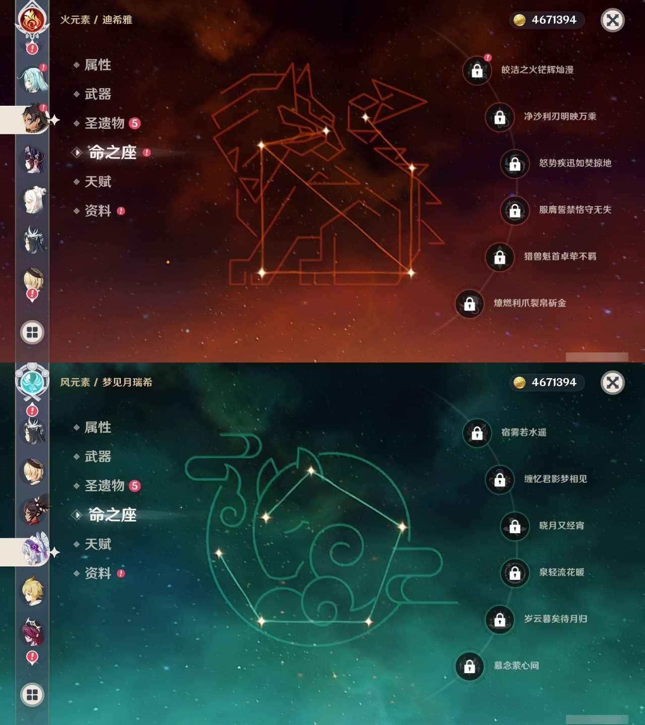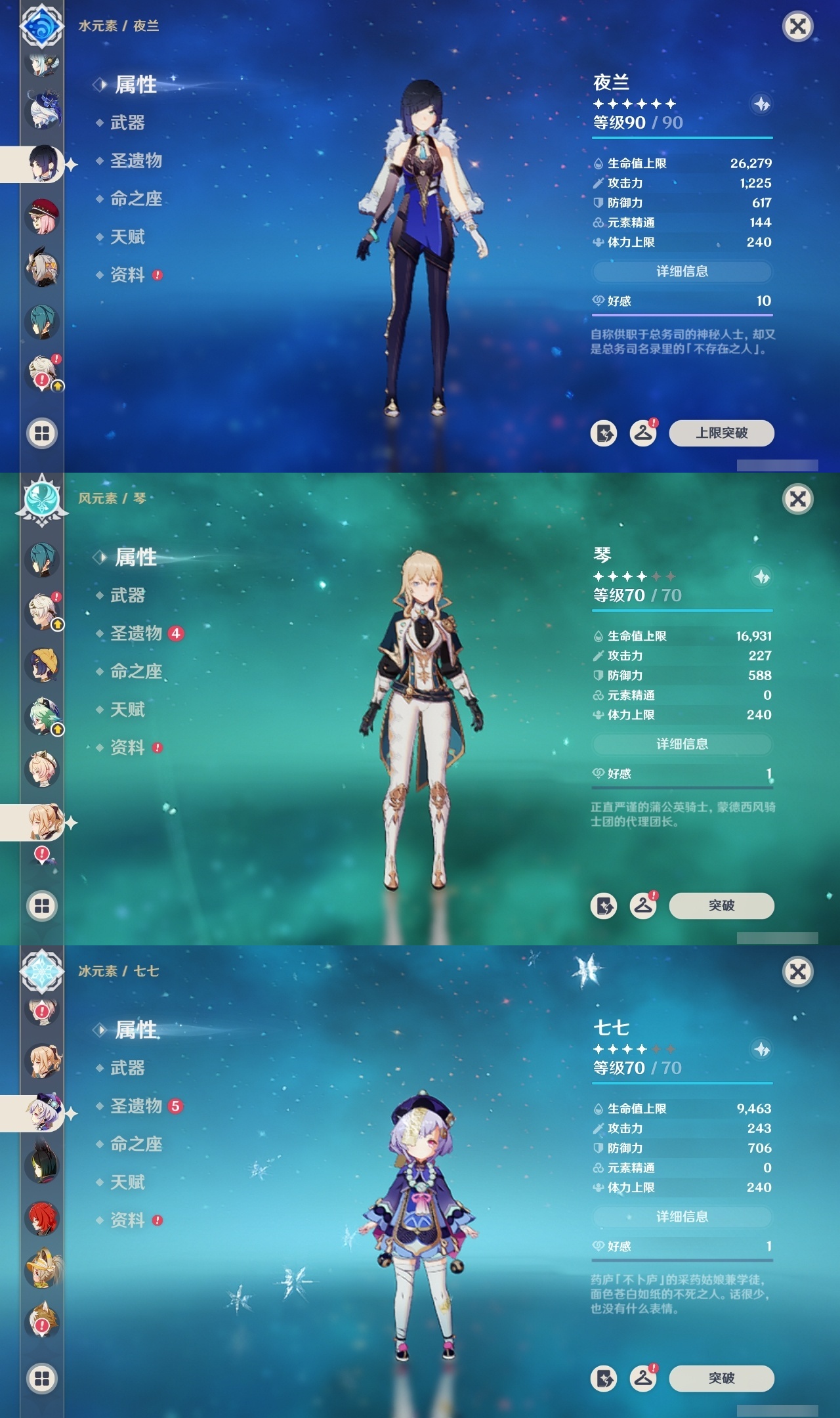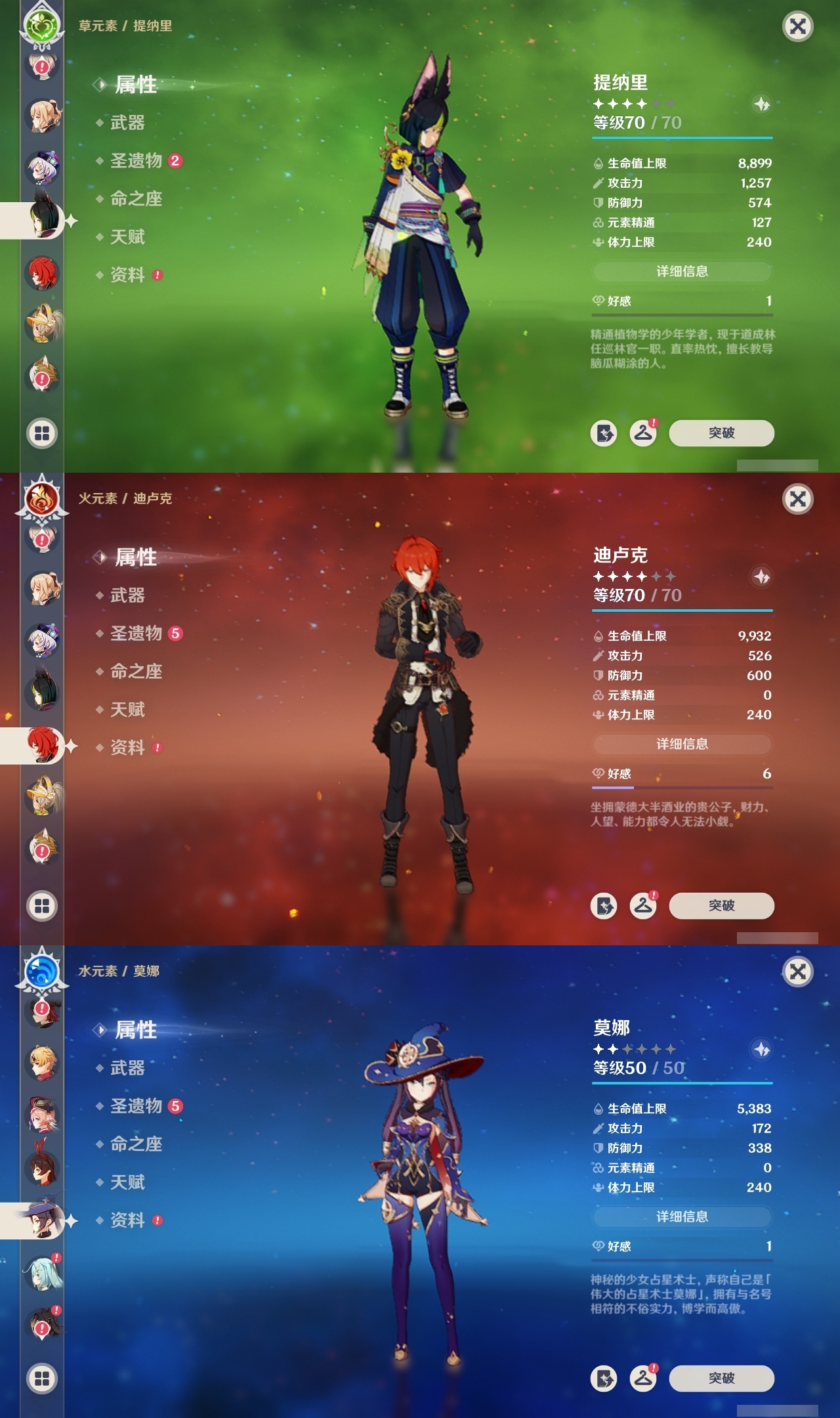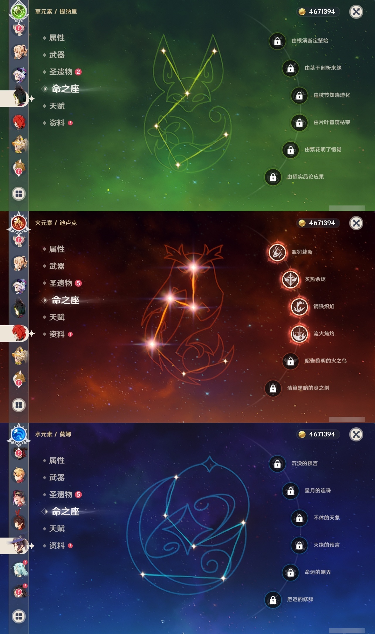 【原神】满命,冒险等级:60,五星数量:29,五星角色:恰斯卡 6命茜特菈莉 6命丝柯克 6命刻晴 6命迪卢克 4命玛薇卡 2命琴 2命芙宁娜 1命菲林斯 1命七七 1命夜兰 1命莫娜希诺宁迪希雅梦见月瑞希提纳里伊涅芙__五星武器:星鹫赤羽 5精祭星者之望焚曜千阳最初的大魔术苍耀血染荒城阿莫斯之弓狼的末路天空之翼终末嗟叹之诗息灾若水__四星角色:卡齐娜 6命行秋 6命迪奥娜 6命砂糖 6命米卡 6命坎蒂丝 6命多莉 6命柯莱 6命芭芭拉 6命欧洛伦 6命菲谢尔 6命伊安珊 6命塔利雅 6命爱诺 6命赛索斯 6命班尼特 5命香菱 5命云堇 5命夏洛蒂 5命珐露珊 4命瑶瑶 4命北斗 4命烟绯 3命久岐忍 2命鹿野院平藏 2命绮良良 2命莱依拉 2命琳妮特 2命凝光 1命托马 1命五郎 1命重云 1命诺艾尔 1命雷泽 1命菲米尼 1命夏沃蕾 1命九条裟罗蓝砚辛焱罗莎莉亚嘉明