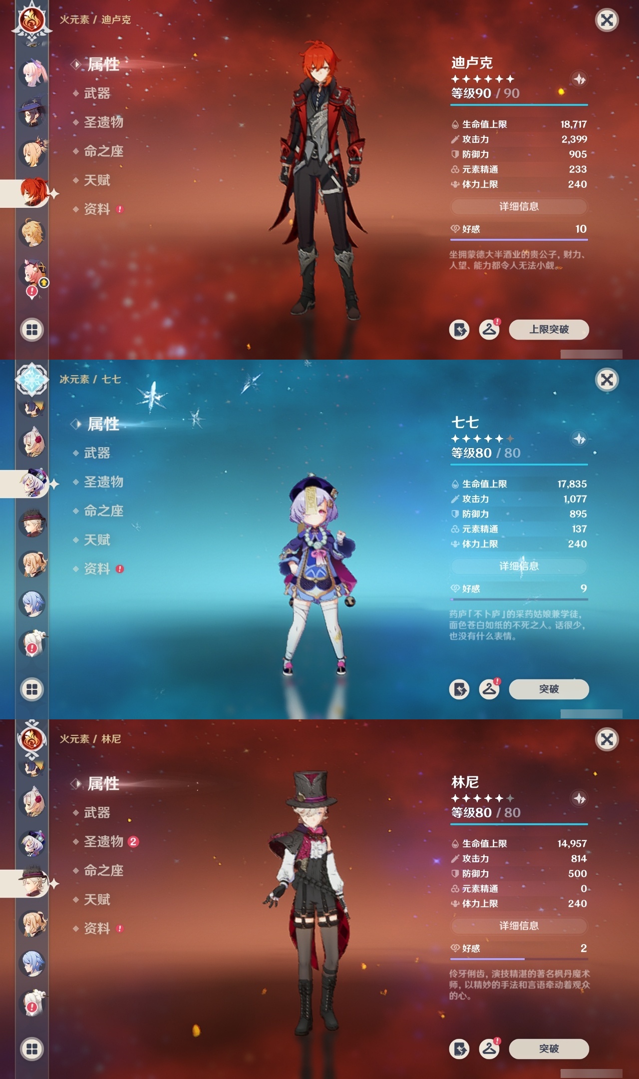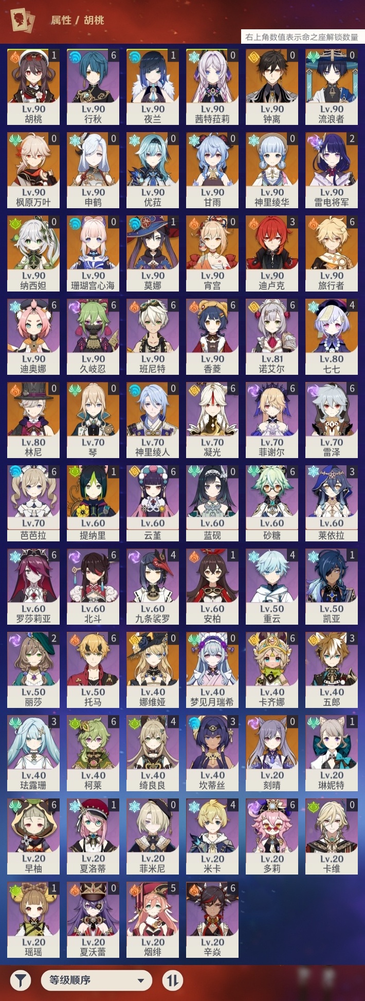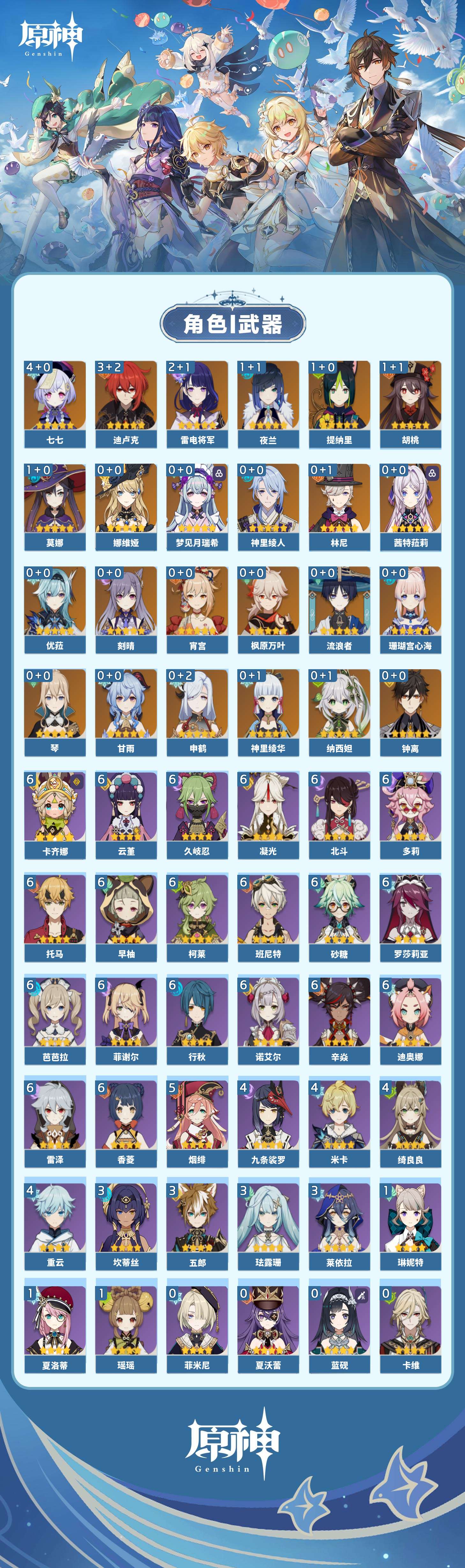 【原神】【lyys8650】冒险等级:60,五星数量:38,五星角色:七七 4命迪卢克 3命雷电将军 2命胡桃 1命莫娜 1命夜兰 1命提纳里 1命琴珊瑚宫心海神里绫华茜特菈莉宵宫优菈钟离梦见月瑞希申鹤神里绫人林尼娜维娅纳西妲流浪者枫原万叶甘雨刻晴__五星武器:狼的末路 2精息灾 2精最初的大魔术风鹰剑护摩之杖四风原典天空之脊无工之剑雾切之回光薙草之稻光赤角石溃杵若水圣显之钥千夜浮梦__四星角色:卡齐娜 6命班尼特 6命行秋 6命香菱 6命久岐忍 6命凝光 6命迪奥娜 6命砂糖 6命多莉 6命柯莱 6命芭芭拉 6命云堇 6命早柚 6命托马 6命辛焱 6命诺艾尔 6命罗莎莉亚 6命雷泽 6命菲谢尔 6命北斗 6命烟绯 5命九条裟罗 4命绮良良 4命米卡 4命重云 4命珐露珊 3命莱依拉 3命坎蒂丝 3命五郎 3命瑶瑶 1命琳妮特 1命夏洛蒂 1命卡维蓝砚菲米尼夏沃蕾