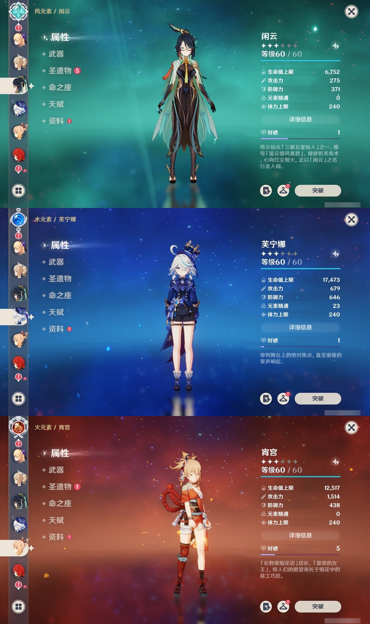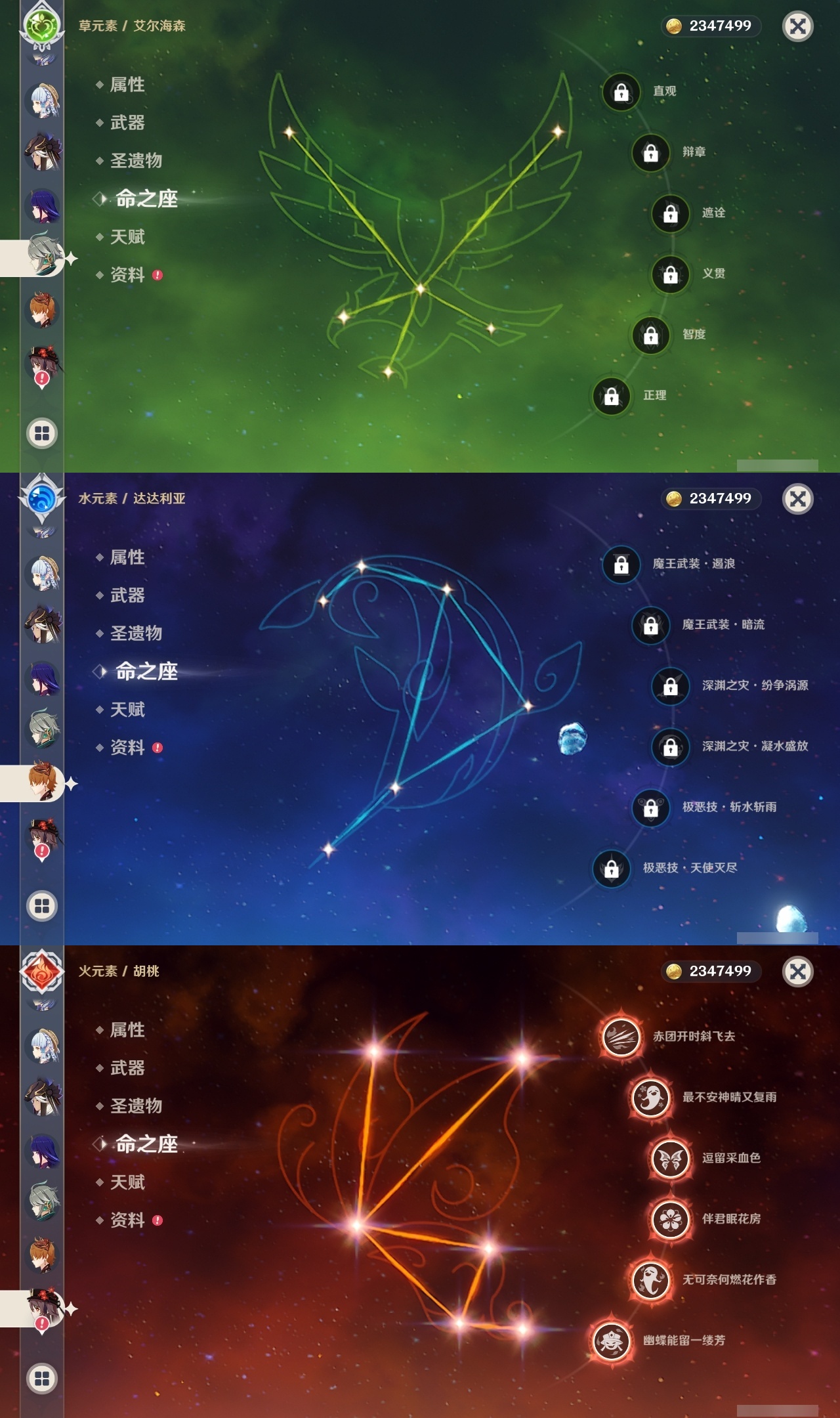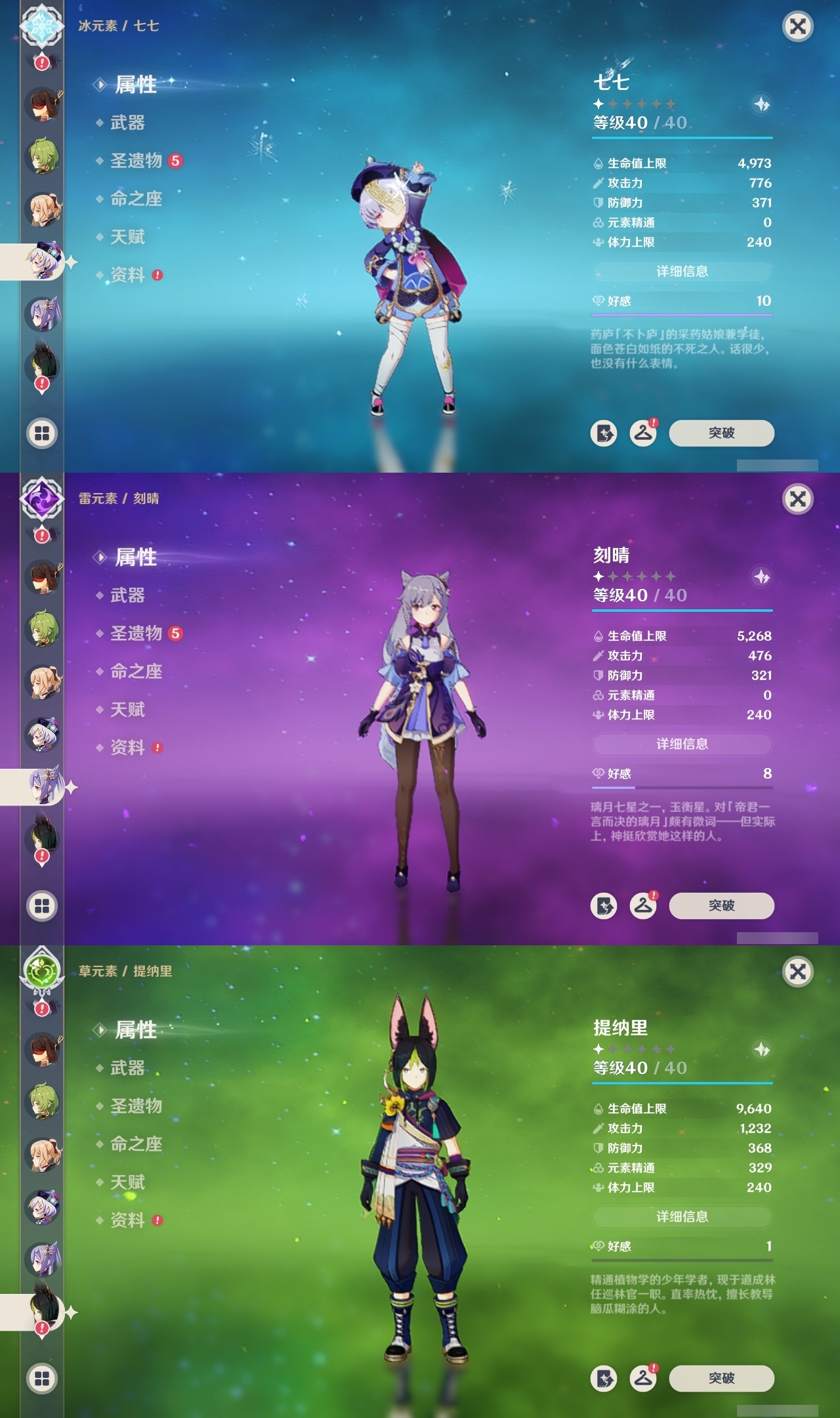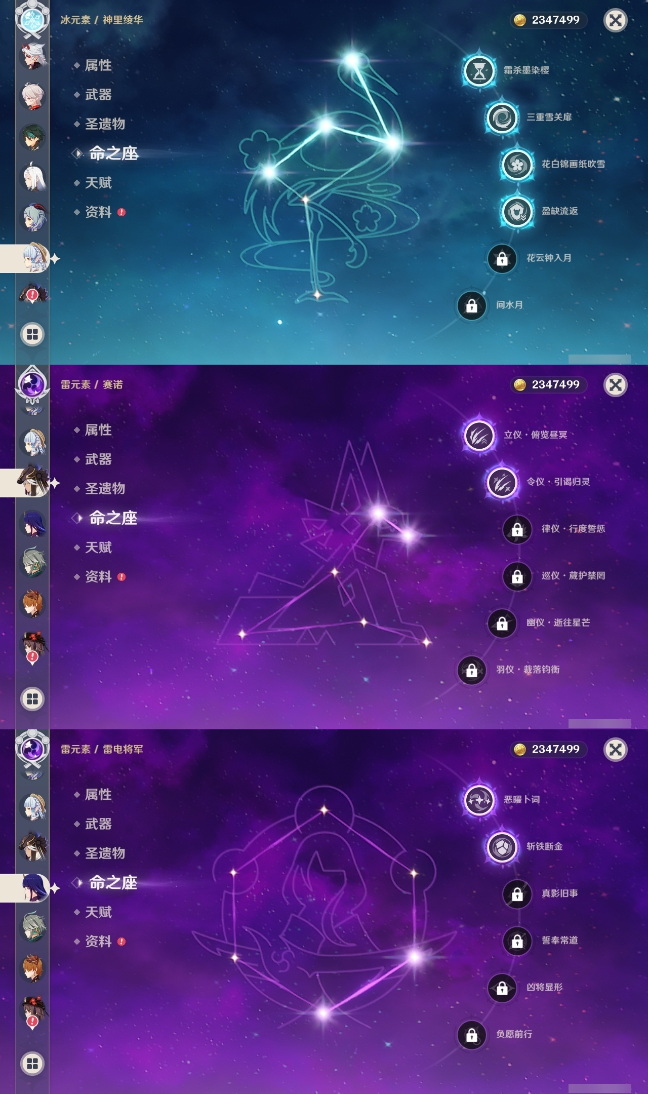 【原神】满命,冒险等级:60,五星数量:54,五星角色:胡桃 6命七七 6命荒泷一斗 6命迪卢克 5命刻晴 5命神里绫华 4命莫娜 3命枫原万叶 2命雷电将军 2命琴 2命夜兰 2命赛诺 2命纳西妲 2命珊瑚宫心海 1命申鹤 1命提纳里 1命白术温迪宵宫钟离达达利亚八重神子芙宁娜闲云千织艾尔海森流浪者甘雨魈可莉__五星武器:赤角石溃杵 5精四风原典 2精神乐之真意 2精有乐御簾切裁叶萃光图莱杜拉的回忆阿莫斯之弓不灭月华苍古自由之誓风鹰剑和璞鸢护摩之杖狼的末路天空之脊天空之刃天空之翼雾切之回光薙草之稻光终末嗟叹之诗冬极白星波乱月白经津若水赤沙之杖千夜浮梦__四星角色:行秋 6命九条裟罗 6命香菱 6命久岐忍 6命鹿野院平藏 6命珐露珊 6命凝光 6命迪奥娜 6命砂糖 6命瑶瑶 6命莱依拉 6命米卡 6命坎蒂丝 6命多莉 6命卡维 6命芭芭拉 6命云堇 6命早柚 6命托马 6命五郎 6命烟绯 6命重云 6命辛焱 6命诺艾尔 6命罗莎莉亚 6命雷泽 6命菲谢尔 6命北斗 6命琳妮特 6命班尼特 5命绮良良 5命柯莱 5命卡齐娜夏洛蒂夏沃蕾嘉明伊安珊