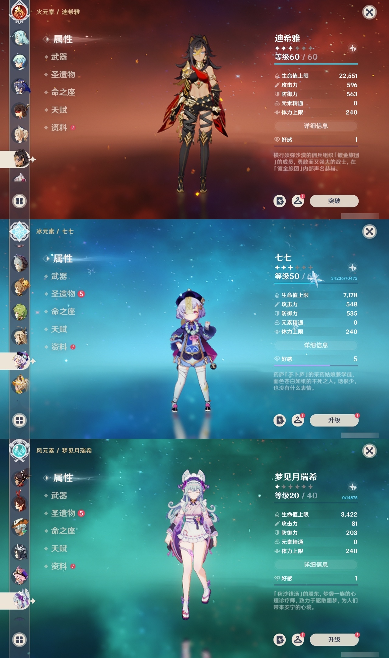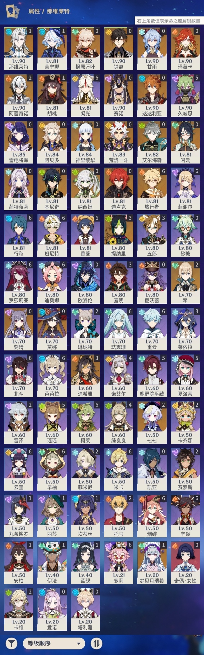 【原神】【lyys8700】冒险等级:60,五星数量:38,五星角色:迪希雅 3命提纳里 3命阿蕾奇诺 2命七七 2命琴 2命梦见月瑞希 1命那维莱特 1命芙宁娜 1命胡桃 1命莫娜基尼奇神里绫华玛薇卡茜特菈莉钟离荒泷一斗达达利亚阿贝多闲云赛诺纳西妲艾尔海森迪卢克枫原万叶甘雨刻晴雷电将军__五星武器:裁断赤月之形飞雷之弦振风鹰剑护摩之杖四风原典天空之卷天空之刃雾切之回光赦罪__四星角色:班尼特 6命行秋 6命香菱 6命珐露珊 6命凝光 6命迪奥娜 6命米卡 6命多莉 6命柯莱 6命芭芭拉 6命云堇 6命蓝砚 6命早柚 6命烟绯 6命重云 6命辛焱 6命罗莎莉亚 6命菲谢尔 6命北斗 6命久岐忍 5命鹿野院平藏 5命瑶瑶 5命夏洛蒂 5命绮良良 4命诺艾尔 4命莱依拉 3命五郎 3命嘉明 3命卡齐娜 2命卡维 2命托马 2命雷泽 2命菲米尼 2命琳妮特 2命赛索斯 2命九条裟罗 1命坎蒂丝 1命伊法 1命奇偶·女性砂糖欧洛伦夏沃蕾塔利雅爱诺