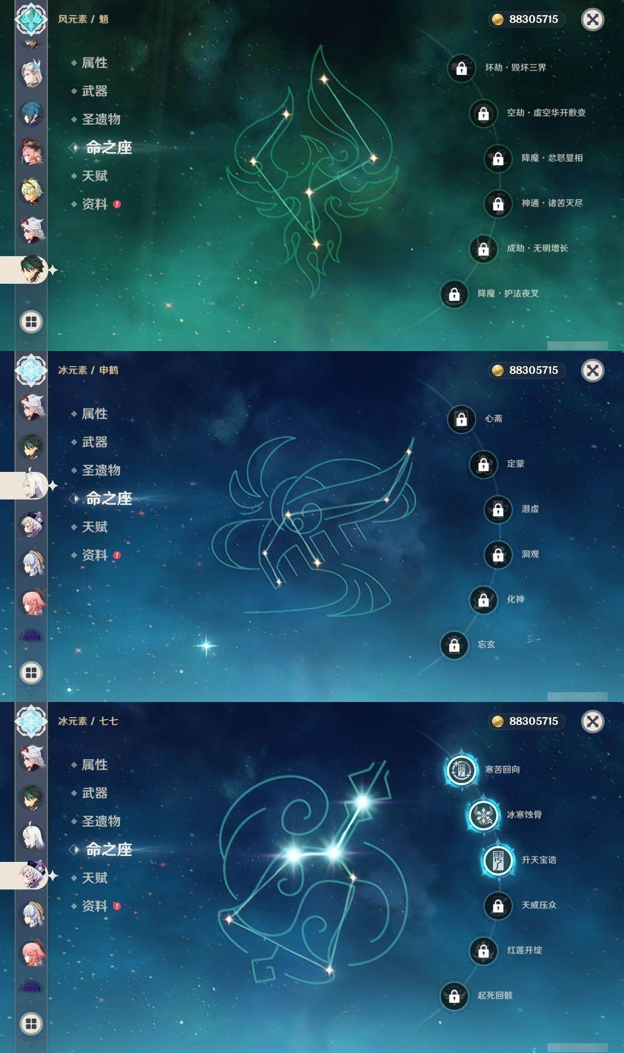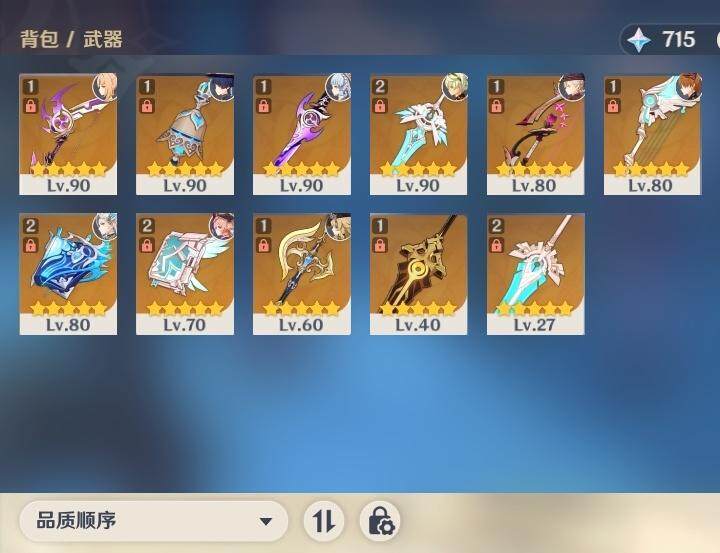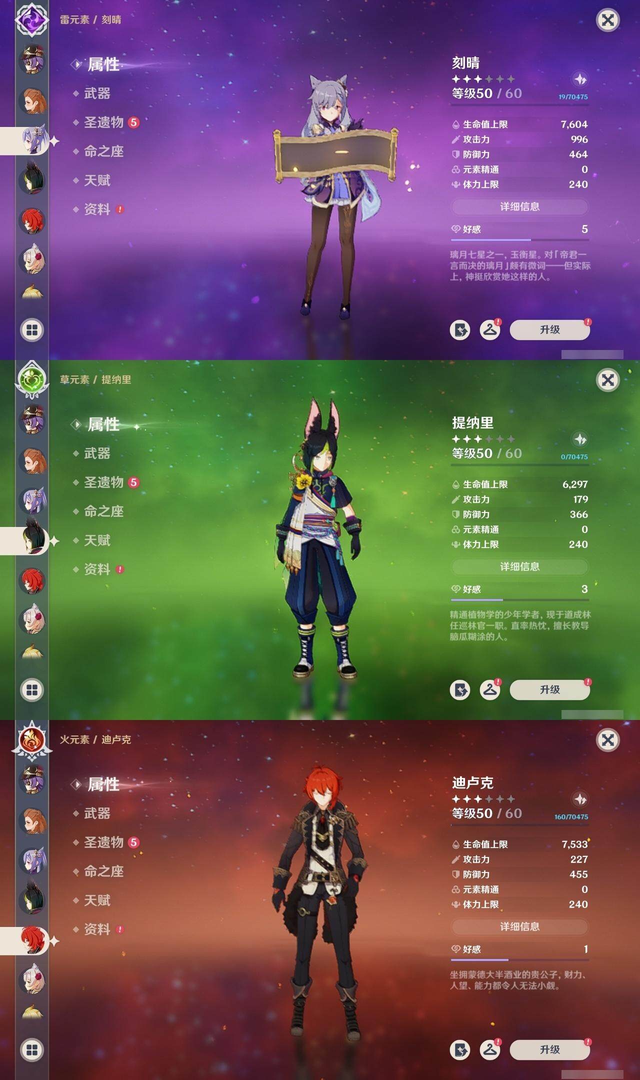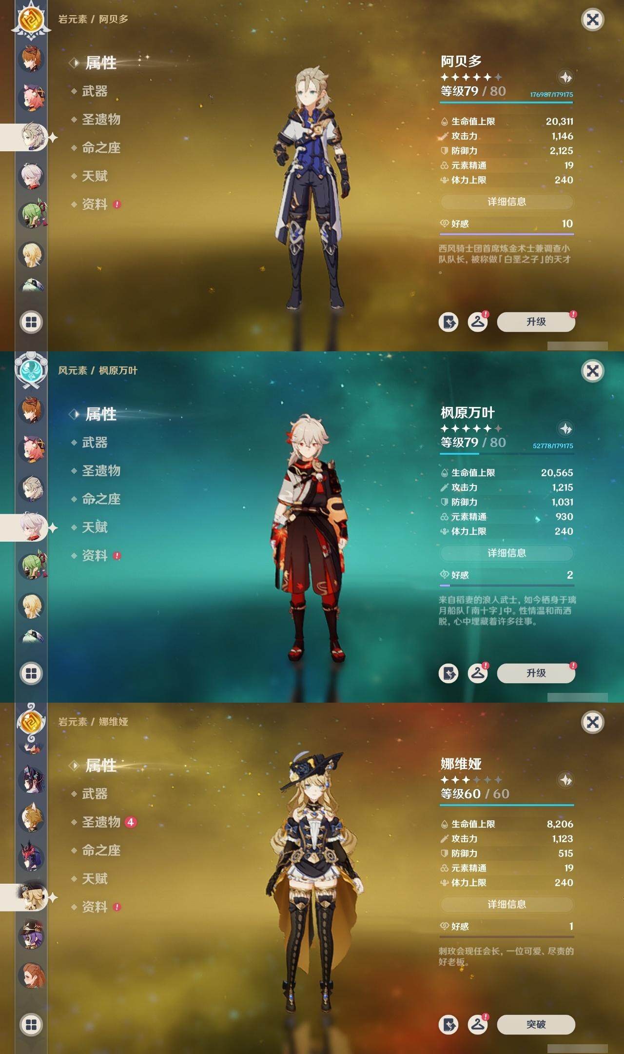 60级/52黄/女主/25个五星角色/11个五星武器 0命阿蕾奇诺0命娜维娅0命那维莱特0命林尼0命流浪者0命纳西妲1命提纳里0命夜兰0命八重神子0命申鹤1命荒泷一斗2命雷电将军0命枫原万叶1命神里绫华0命钟离0命胡桃0命魈0命宵宫0命达达利亚0命阿贝多0命珊瑚宫心海0命刻晴3命七七2命莫娜2命迪卢克精1裁断精2万世流涌大典精1最初的大魔术精1苇海信标精1图莱杜拉的回忆精1飞雷之弦振精1雾切之回光精1天空之翼精2天空之刃精2天空之卷精2天空之傲
