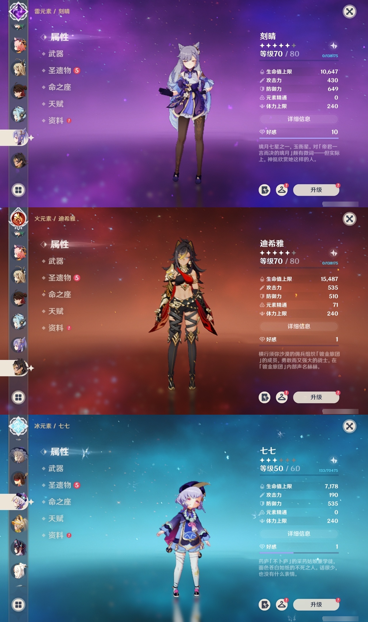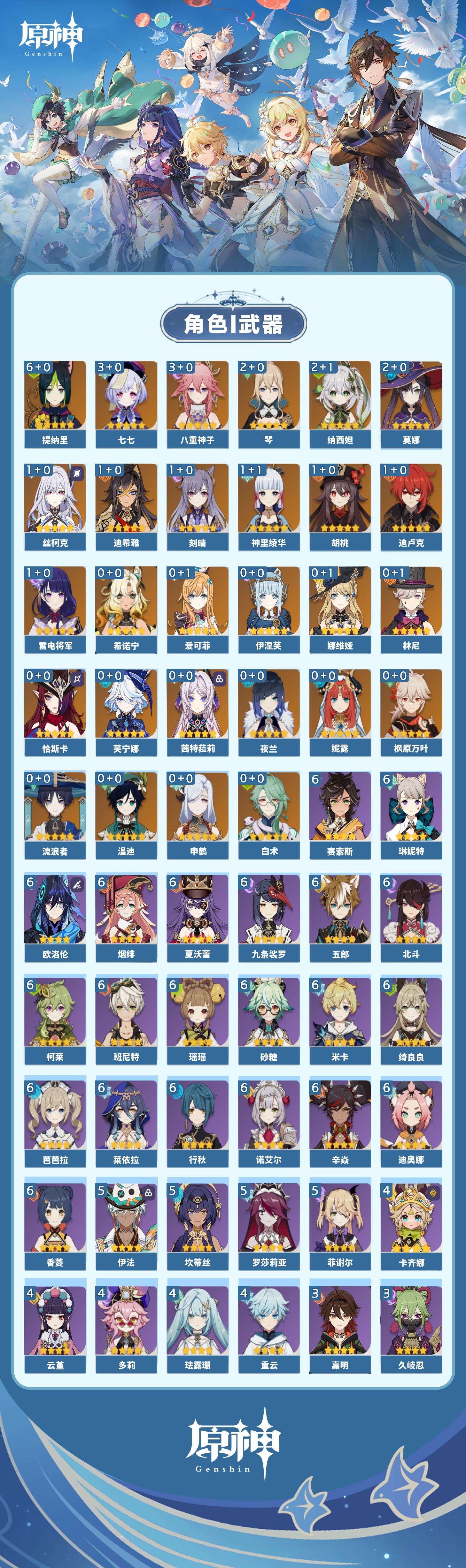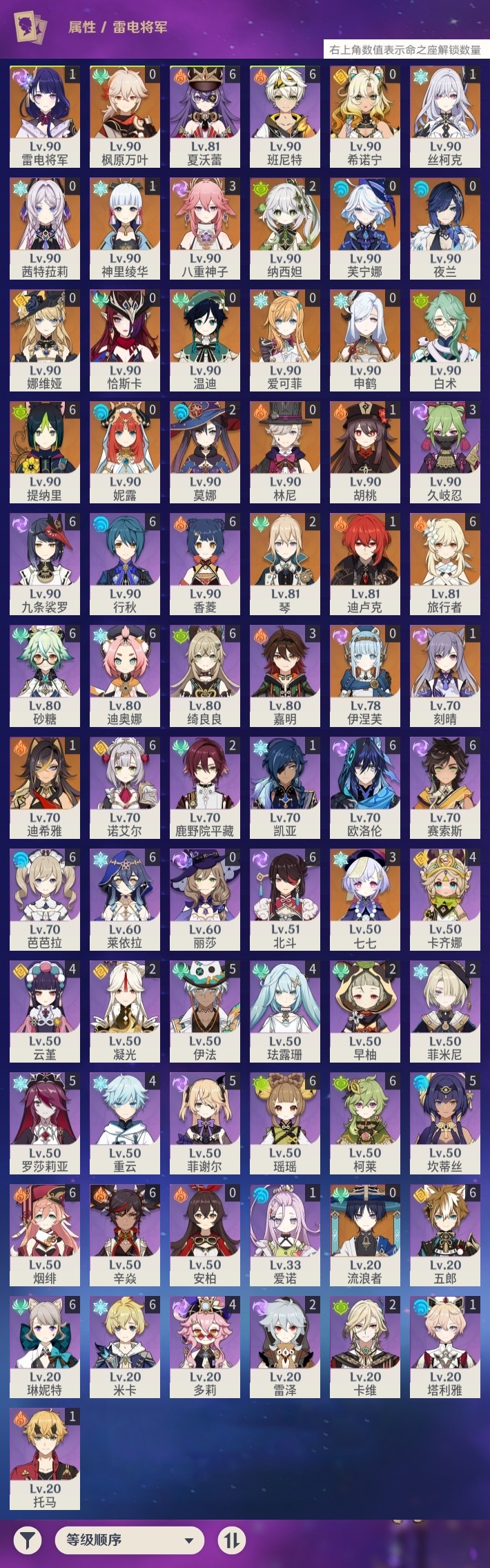 【原神】【lyys7570】冒险等级:60,五星数量:37,五星角色:提纳里 6命七七 3命八重神子 3命莫娜 2命琴 2命纳西妲 2命迪希雅 1命丝柯克 1命迪卢克 1命胡桃 1命刻晴 1命雷电将军 1命神里绫华 1命希诺宁白术温迪恰斯卡茜特菈莉申鹤林尼夜兰芙宁娜娜维娅爱可菲妮露伊涅芙流浪者枫原万叶__五星武器:阿莫斯之弓 2精天空之翼 2精最初的大魔术裁断香韵奏者天空之傲天空之刃雾切之回光千夜浮梦__四星角色:班尼特 6命行秋 6命九条裟罗 6命香菱 6命迪奥娜 6命砂糖 6命绮良良 6命瑶瑶 6命莱依拉 6命米卡 6命柯莱 6命芭芭拉 6命欧洛伦 6命五郎 6命烟绯 6命辛焱 6命诺艾尔 6命北斗 6命琳妮特 6命夏沃蕾 6命赛索斯 6命坎蒂丝 5命罗莎莉亚 5命菲谢尔 5命伊法 5命卡齐娜 4命珐露珊 4命多莉 4命云堇 4命重云 4命久岐忍 3命嘉明 3命鹿野院平藏 2命凝光 2命卡维 2命早柚 2命雷泽 2命菲米尼 2命托马 1命塔利雅 1命爱诺 1命