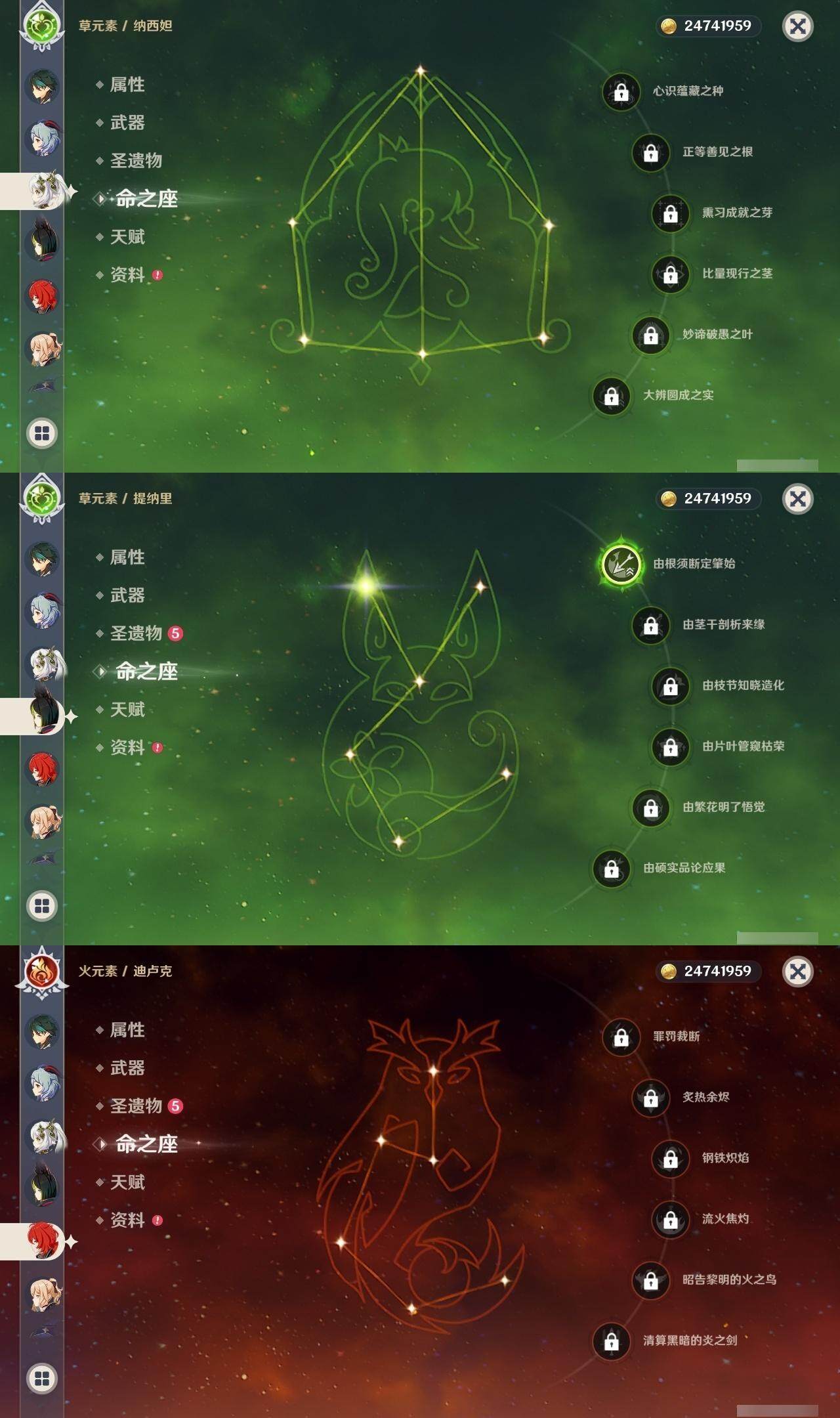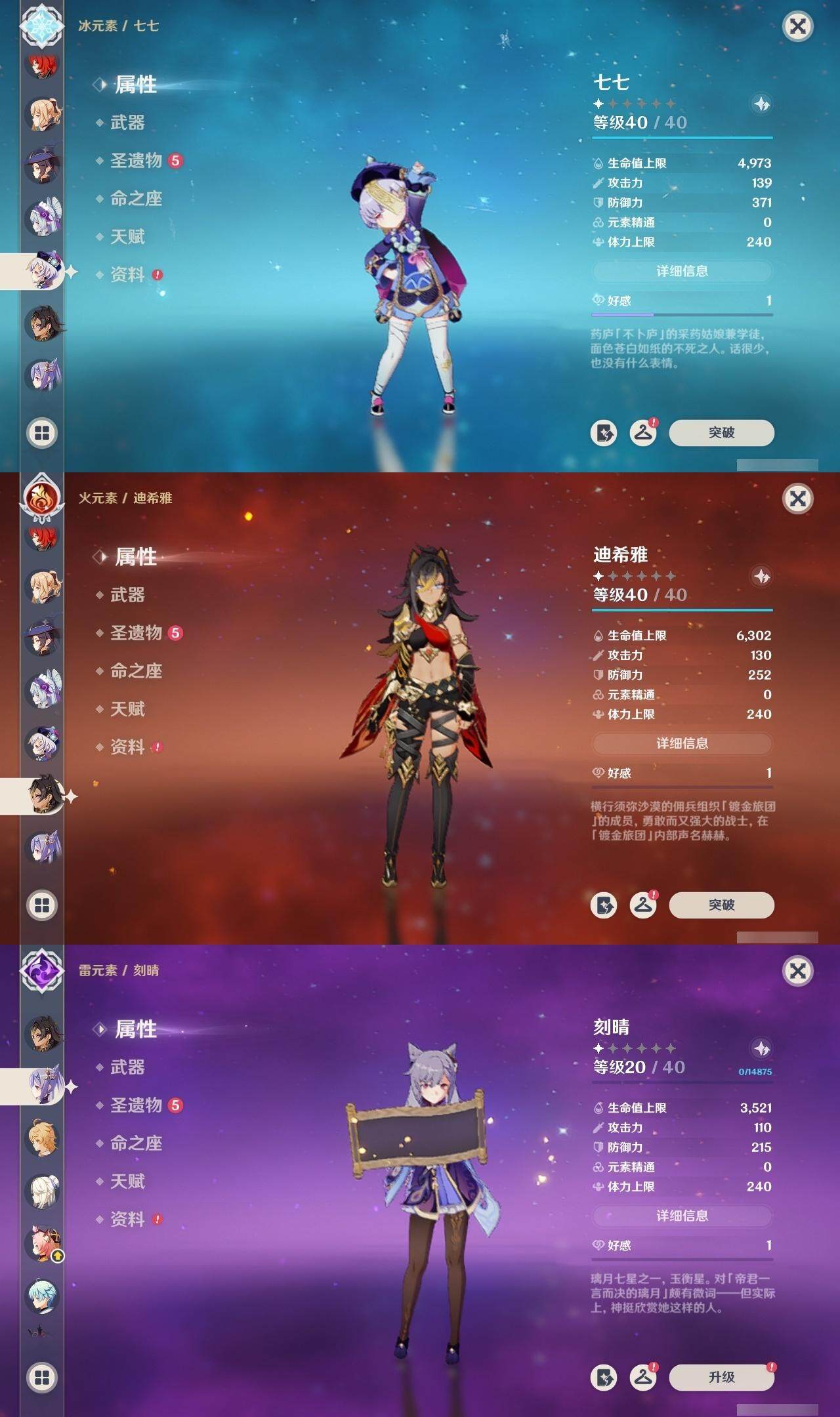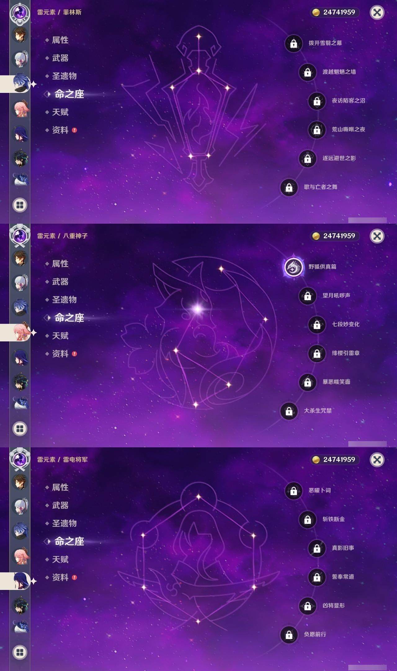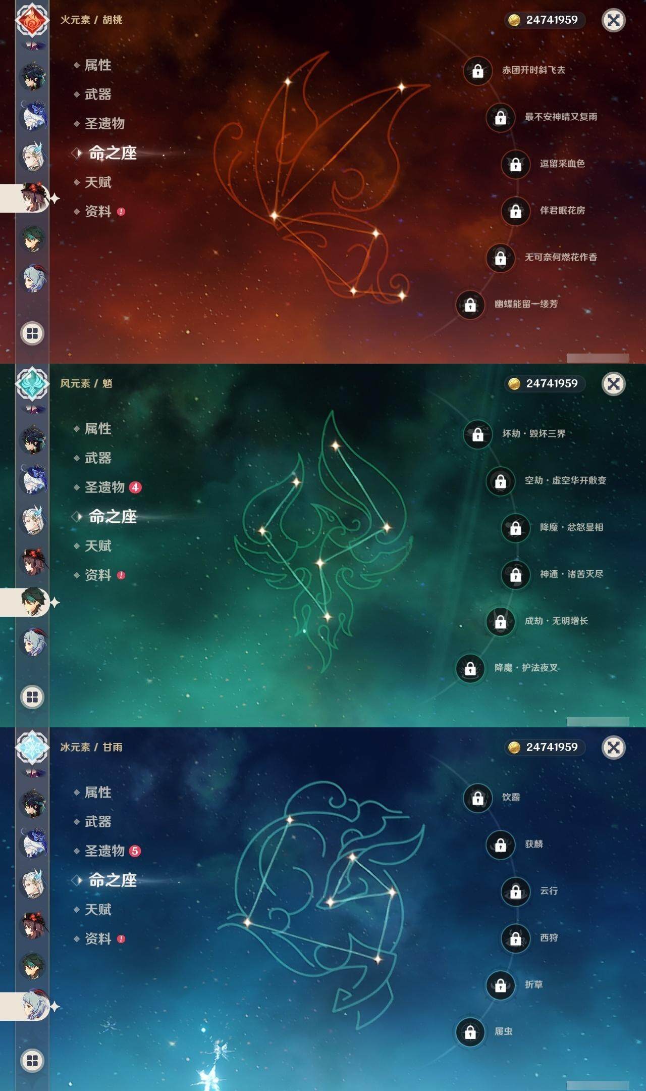 [14304459]59级/48黄/男主/24个五星角色/11个五星武器 0命阿蕾奇诺0命芙宁娜0命那维莱特1命迪希雅0命纳西妲1命提纳里0命夜兰1命八重神子0命雷电将军0命枫原万叶0命神里绫华0命钟离0命胡桃0命甘雨0命魈0命刻晴3命七七4命琴2命莫娜0命迪卢克0命基尼奇0命茜特菈莉0命梦见月瑞希0命菲林斯精1赦罪精1赤月之形精1金流监督精1圣显之钥精1神乐之真意精1薙草之稻光精1苍古自由之誓精2磐岩结绿精1四风原典精1天空之刃精1风鹰剑