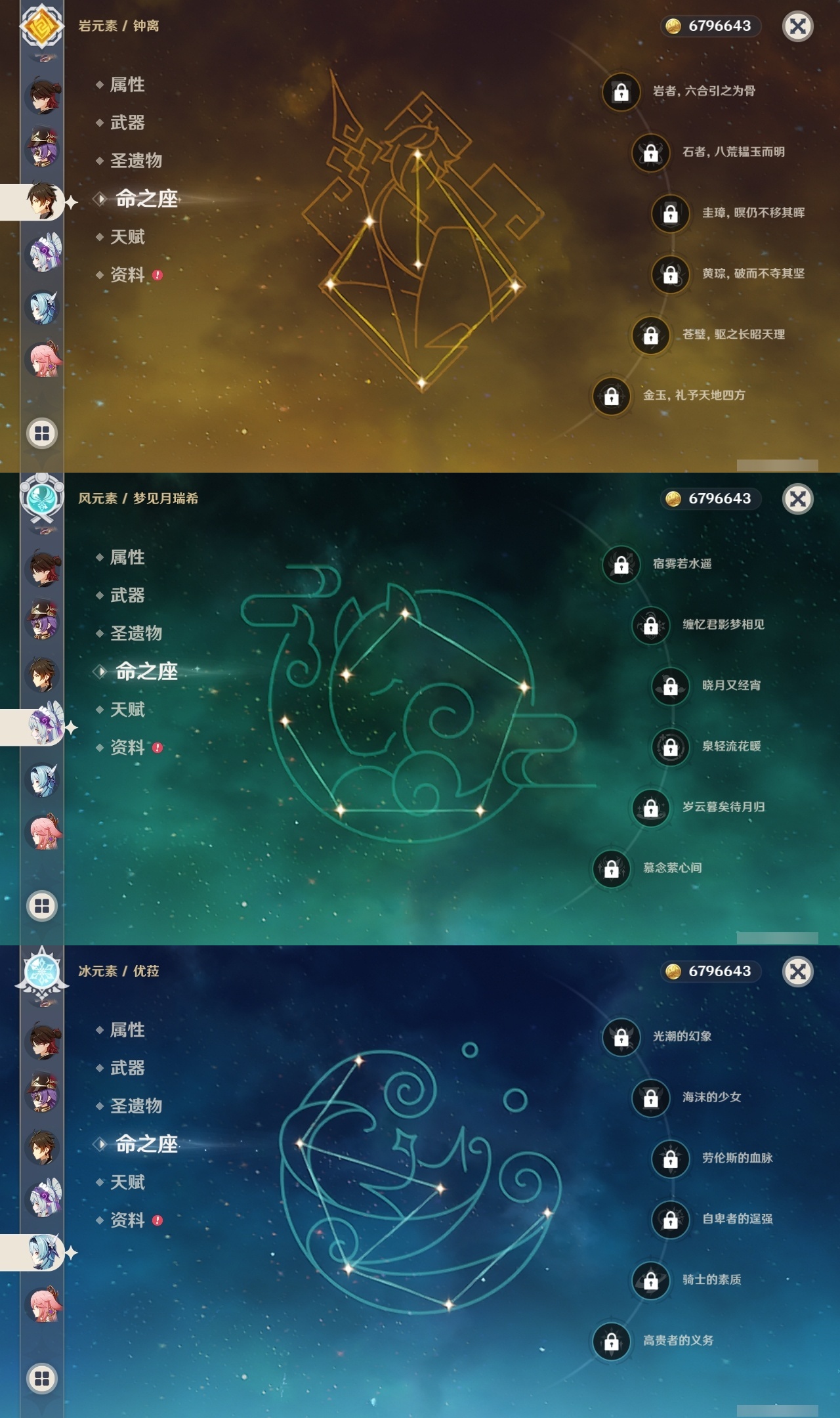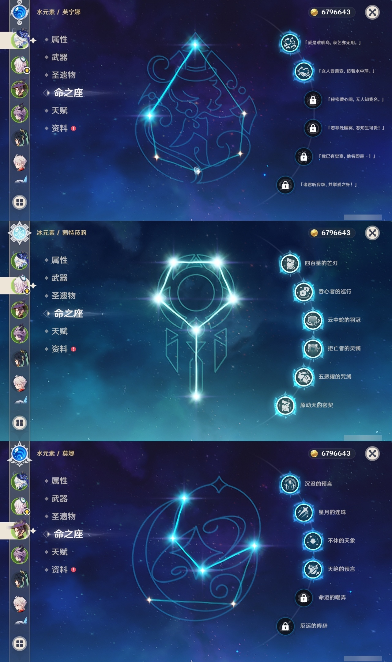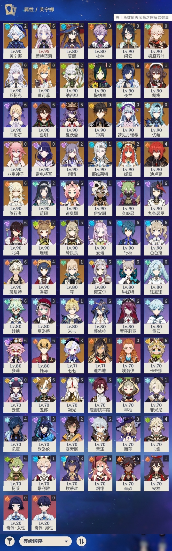 【原神】【lyys8750】冒险等级:60,五星数量:48,五星角色:茜特菈莉 6命夜兰 6命迪卢克 4命莫娜 4命七七 3命芙宁娜 2命刻晴 2命提纳里 2命妮露 2命纳西妲 2命迪希雅 1命那维莱特 1命胡桃 1命琴 1命优菈钟离梦见月瑞希八重神子闲云爱可菲丝柯克杜林枫原万叶雷电将军__五星武器:祭星者之望 5精风鹰剑 4精天空之翼 3精狼的末路 2精天空之刃 2精焚曜千阳万世流涌大典静水流涌之辉鹤鸣余音真语秘匣黎明破晓之史苍古自由之誓护摩之杖松籁响起之时天空之傲天空之卷息灾若水猎人之径圣显之钥千夜浮梦__四星角色:卡齐娜 6命班尼特 6命行秋 6命九条裟罗 6命久岐忍 6命珐露珊 6命凝光 6命迪奥娜 6命砂糖 6命莱依拉 6命多莉 6命柯莱 6命芭芭拉 6命早柚 6命托马 6命五郎 6命烟绯 6命重云 6命诺艾尔 6命罗莎莉亚 6命雷泽 6命菲谢尔 6命北斗 6命琳妮特 6命夏沃蕾 6命嘉明 6命爱诺 6命绮良良 5命辛焱 5命香菱 4命卡维 4命鹿野院平藏 3命坎蒂丝 3命欧洛伦 3命夏洛蒂 3命瑶瑶 2命蓝砚 2命赛索斯 2命米卡 1命菲米尼 1命伊安珊 1命塔利雅 1命埃洛伊奇偶·女性奇偶·男性云堇
