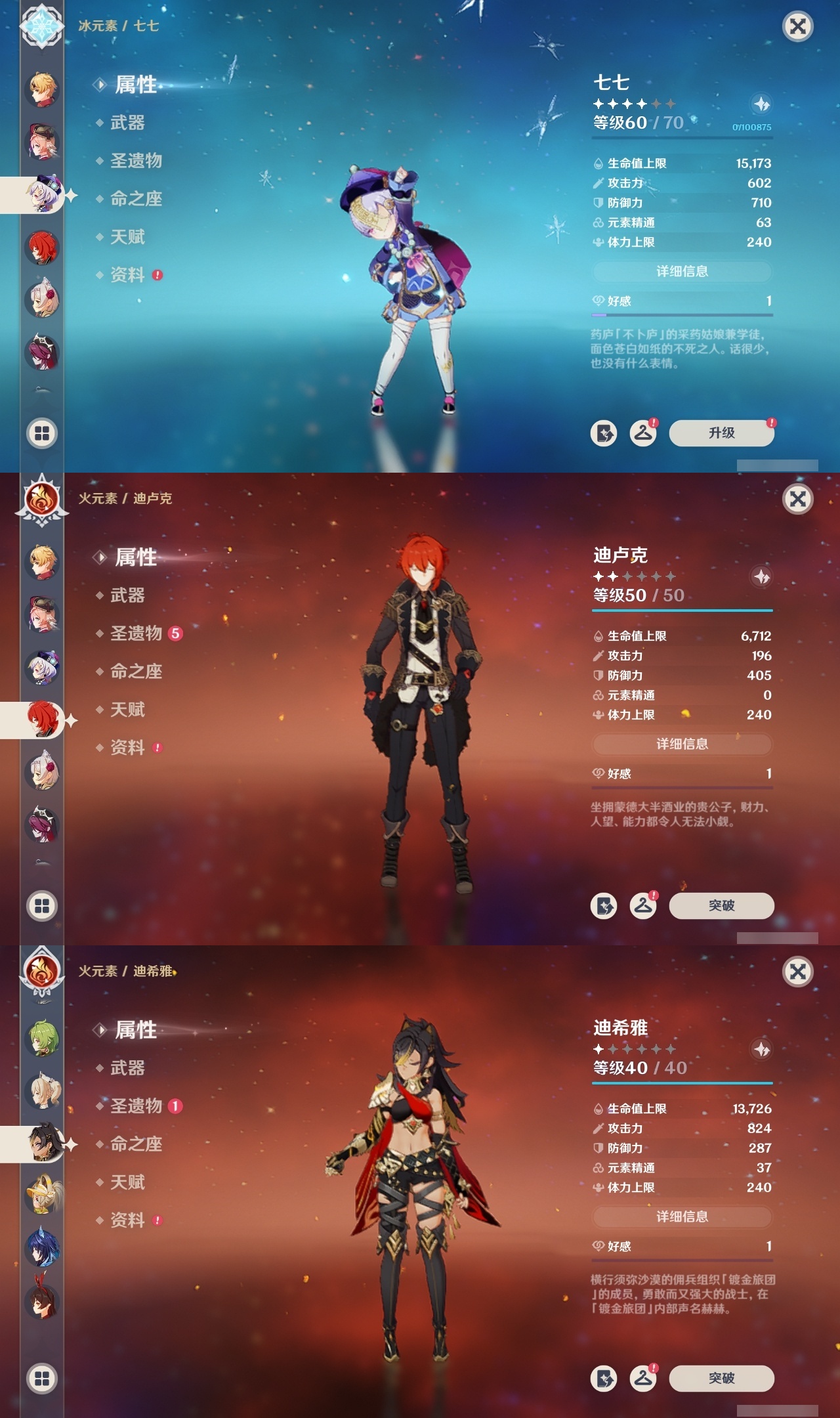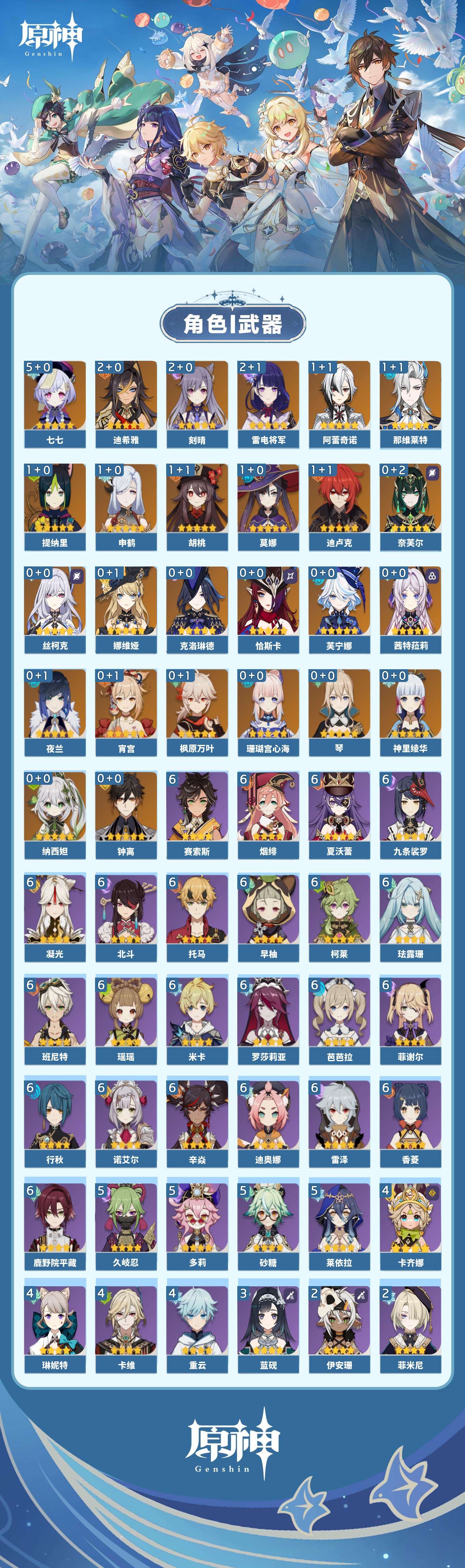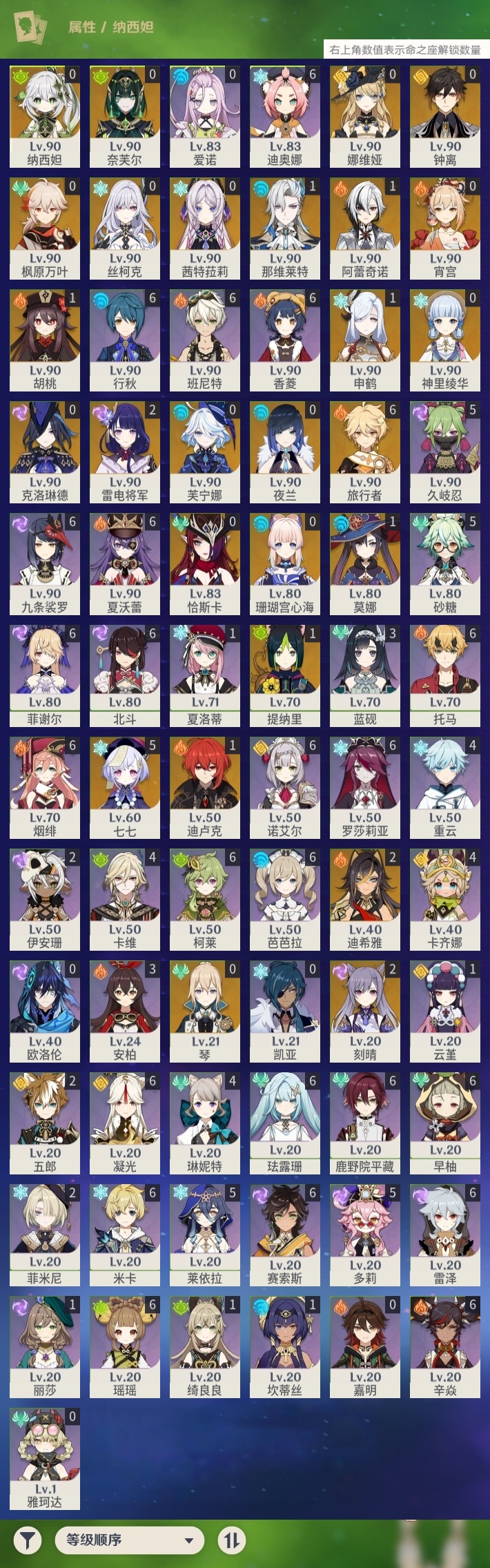 【原神】【lyys8741】冒险等级:60,五星数量:43,五星角色:七七 5命迪希雅 2命刻晴 2命雷电将军 2命那维莱特 1命阿蕾奇诺 1命迪卢克 1命胡桃 1命莫娜 1命申鹤 1命提纳里 1命琴珊瑚宫心海神里绫华恰斯卡茜特菈莉宵宫钟离夜兰芙宁娜娜维娅丝柯克纳西妲奈芙尔枫原万叶克洛琳德__五星武器:真语秘匣 2精风鹰剑 2精天空之翼 2精万世流涌大典裁断赤月之形阿莫斯之弓苍古自由之誓飞雷之弦振和璞鸢护摩之杖狼的末路四风原典天空之卷天空之刃薙草之稻光若水__四星角色:班尼特 6命行秋 6命九条裟罗 6命香菱 6命鹿野院平藏 6命珐露珊 6命凝光 6命迪奥娜 6命瑶瑶 6命米卡 6命柯莱 6命芭芭拉 6命早柚 6命托马 6命烟绯 6命辛焱 6命诺艾尔 6命罗莎莉亚 6命雷泽 6命菲谢尔 6命北斗 6命夏沃蕾 6命赛索斯 6命久岐忍 5命砂糖 5命莱依拉 5命多莉 5命卡齐娜 4命卡维 4命重云 4命琳妮特 4命蓝砚 3命五郎 2命菲米尼 2命伊安珊 2命绮良良 1命坎蒂丝 1命云堇 1命夏洛蒂 1命欧洛伦嘉明爱诺