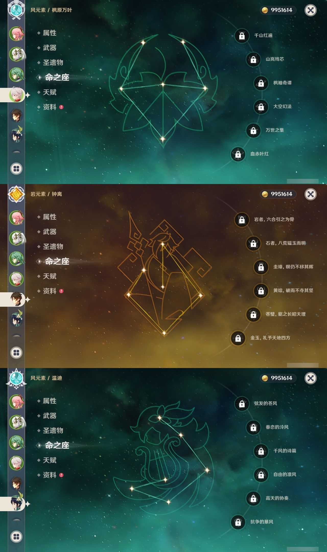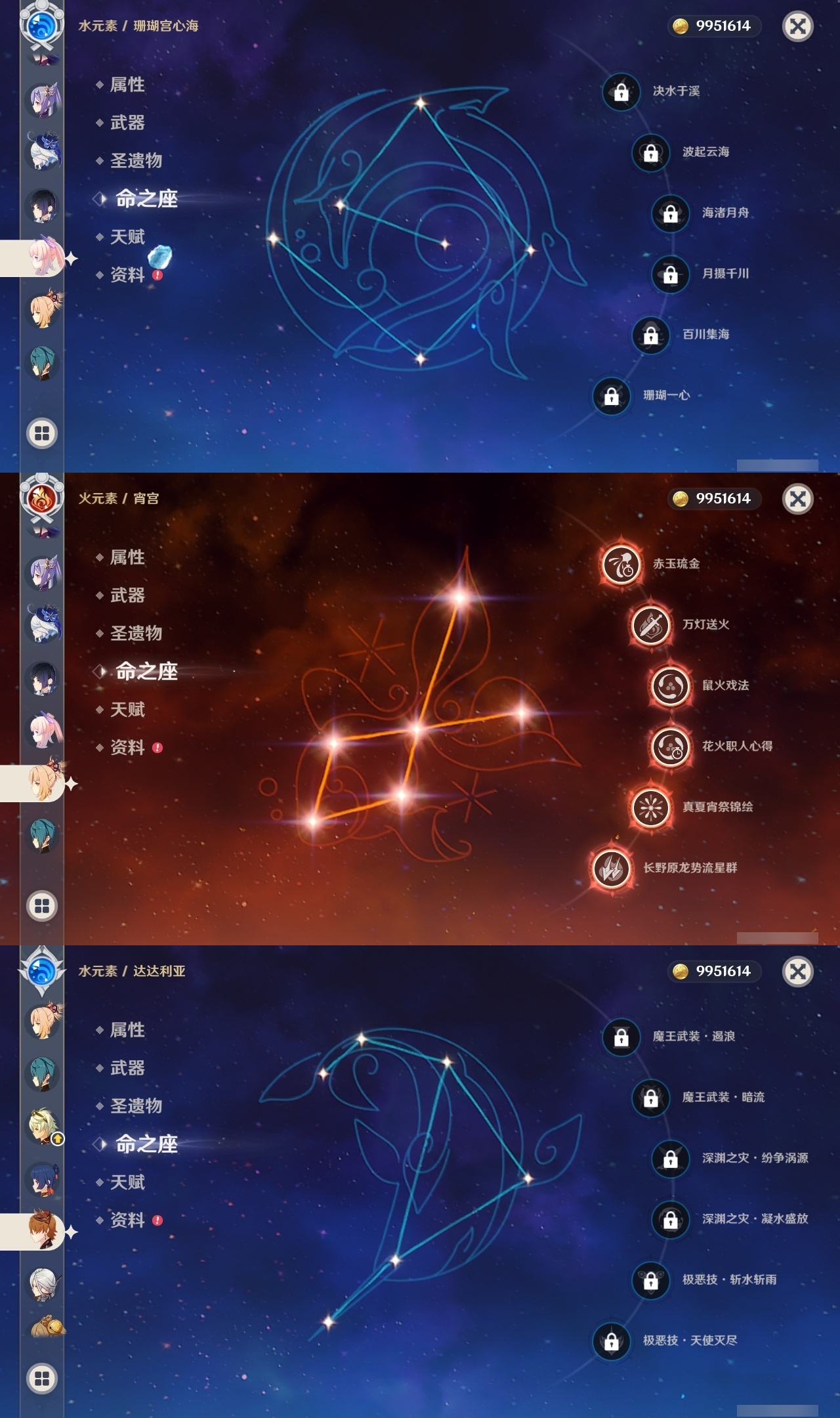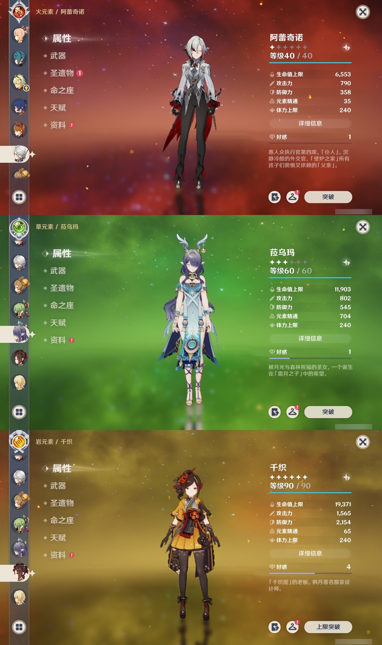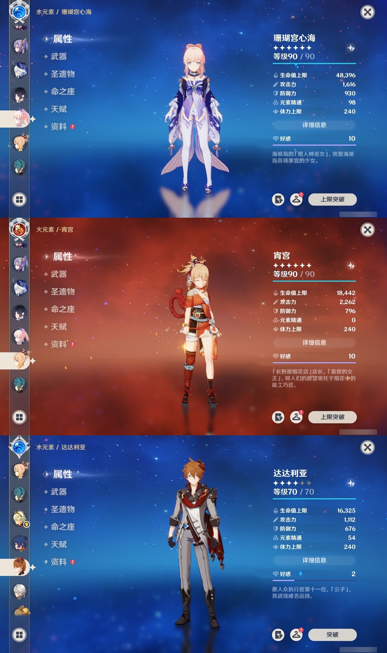 【原神】满命,冒险等级:59,五星数量:44,五星角色:莫娜 6命宵宫 6命八重神子 6命纳西妲 6命刻晴 5命七七 4命雷电将军 3命夜兰 2命芙宁娜 1命琴 1命珊瑚宫心海白术温迪钟离达达利亚梦见月瑞希提纳里千织阿蕾奇诺菈乌玛迪卢克枫原万叶甘雨__五星武器:飞雷之弦振 5精千夜浮梦 3精碧落之珑 2精风鹰剑 2精和璞鸢 2精狼的末路 2精天空之脊 2精最初的大魔术静水流涌之辉有乐御簾切阿莫斯之弓不灭月华四风原典松籁响起之时天空之刃雾切之回光薙草之稻光终末嗟叹之诗斫峰之刃神乐之真意__四星角色:班尼特 6命行秋 6命九条裟罗 6命香菱 6命鹿野院平藏 6命凝光 6命迪奥娜 6命砂糖 6命多莉 6命柯莱 6命卡维 6命云堇 6命托马 6命五郎 6命烟绯 6命辛焱 6命诺艾尔 6命雷泽 6命菲谢尔 6命北斗 6命久岐忍 4命珐露珊 4命早柚 4命重云 4命芭芭拉 3命琳妮特 3命瑶瑶 2命莱依拉 2命罗莎莉亚 1命夏洛蒂 1命嘉明 1命埃洛伊卡齐娜绮良良坎蒂丝爱诺赛索斯