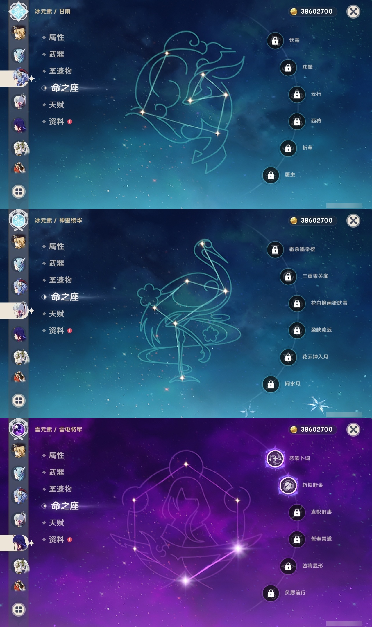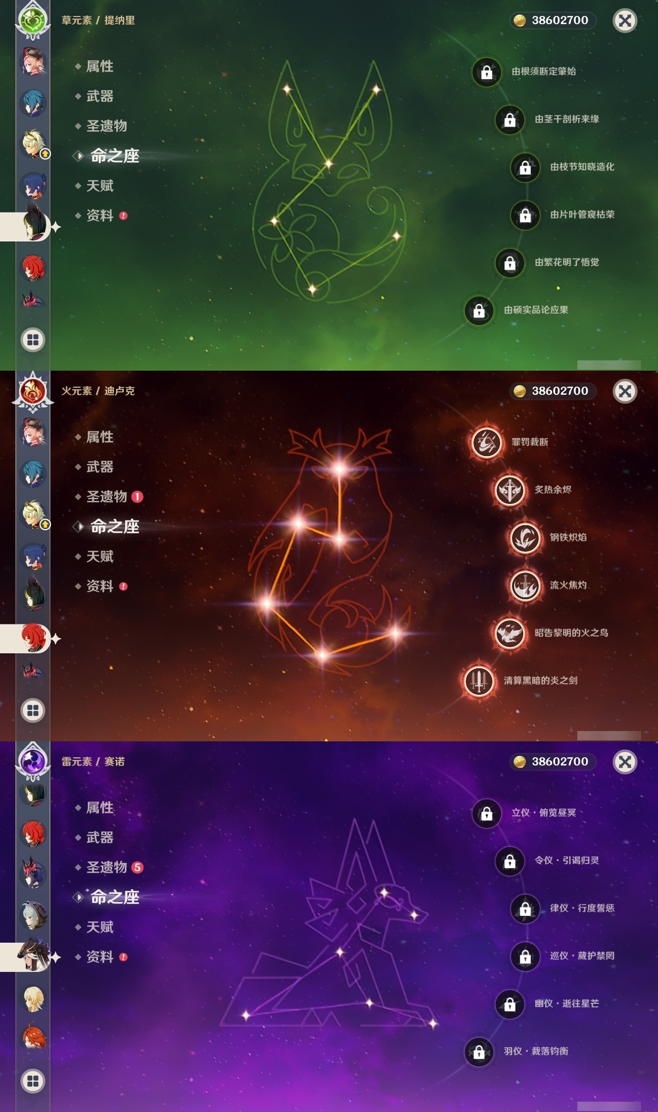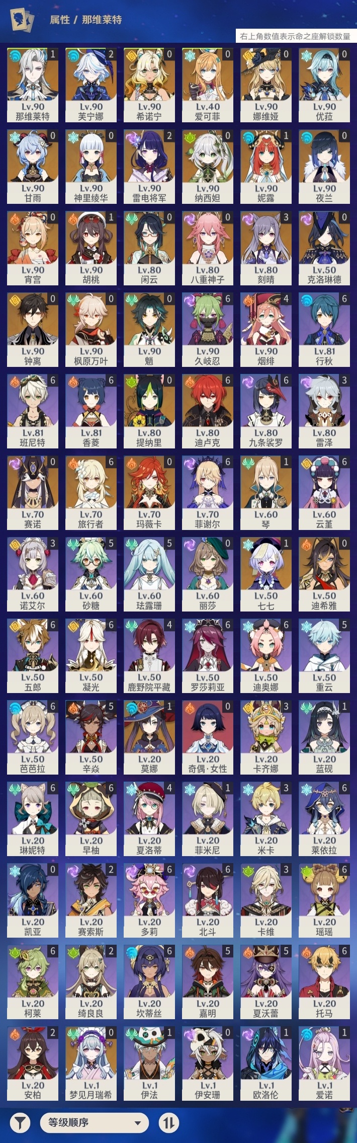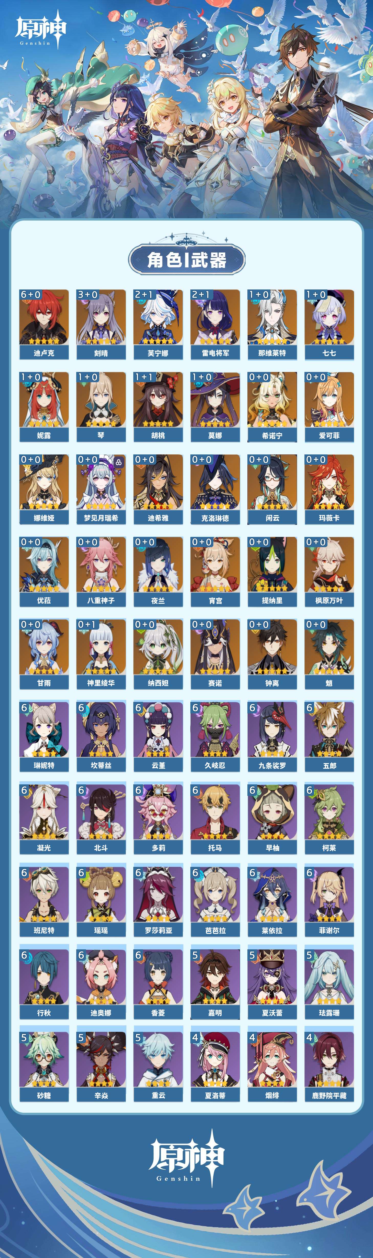 【原神】【lyys8760】冒险等级:60,五星数量:40,五星角色:迪卢克 6命刻晴 3命芙宁娜 2命雷电将军 2命那维莱特 1命胡桃 1命莫娜 1命七七 1命琴 1命妮露 1命希诺宁神里绫华玛薇卡宵宫优菈迪希雅钟离梦见月瑞希八重神子夜兰娜维娅提纳里闲云赛诺爱可菲纳西妲枫原万叶甘雨魈克洛琳德__五星武器:静水流涌之辉护摩之杖四风原典天空之傲天空之卷天空之刃天空之翼雾切之回光薙草之稻光__四星角色:班尼特 6命行秋 6命九条裟罗 6命香菱 6命久岐忍 6命凝光 6命迪奥娜 6命瑶瑶 6命莱依拉 6命坎蒂丝 6命多莉 6命柯莱 6命芭芭拉 6命云堇 6命早柚 6命托马 6命五郎 6命罗莎莉亚 6命菲谢尔 6命北斗 6命琳妮特 6命珐露珊 5命砂糖 5命重云 5命辛焱 5命夏沃蕾 5命嘉明 5命鹿野院平藏 4命烟绯 4命夏洛蒂 4命卡齐娜 3命米卡 3命卡维 3命诺艾尔 3命雷泽 3命绮良良 2命赛索斯 2命欧洛伦 1命蓝砚 1命菲米尼 1命伊法 1命爱诺 1命奇偶·女性伊安珊