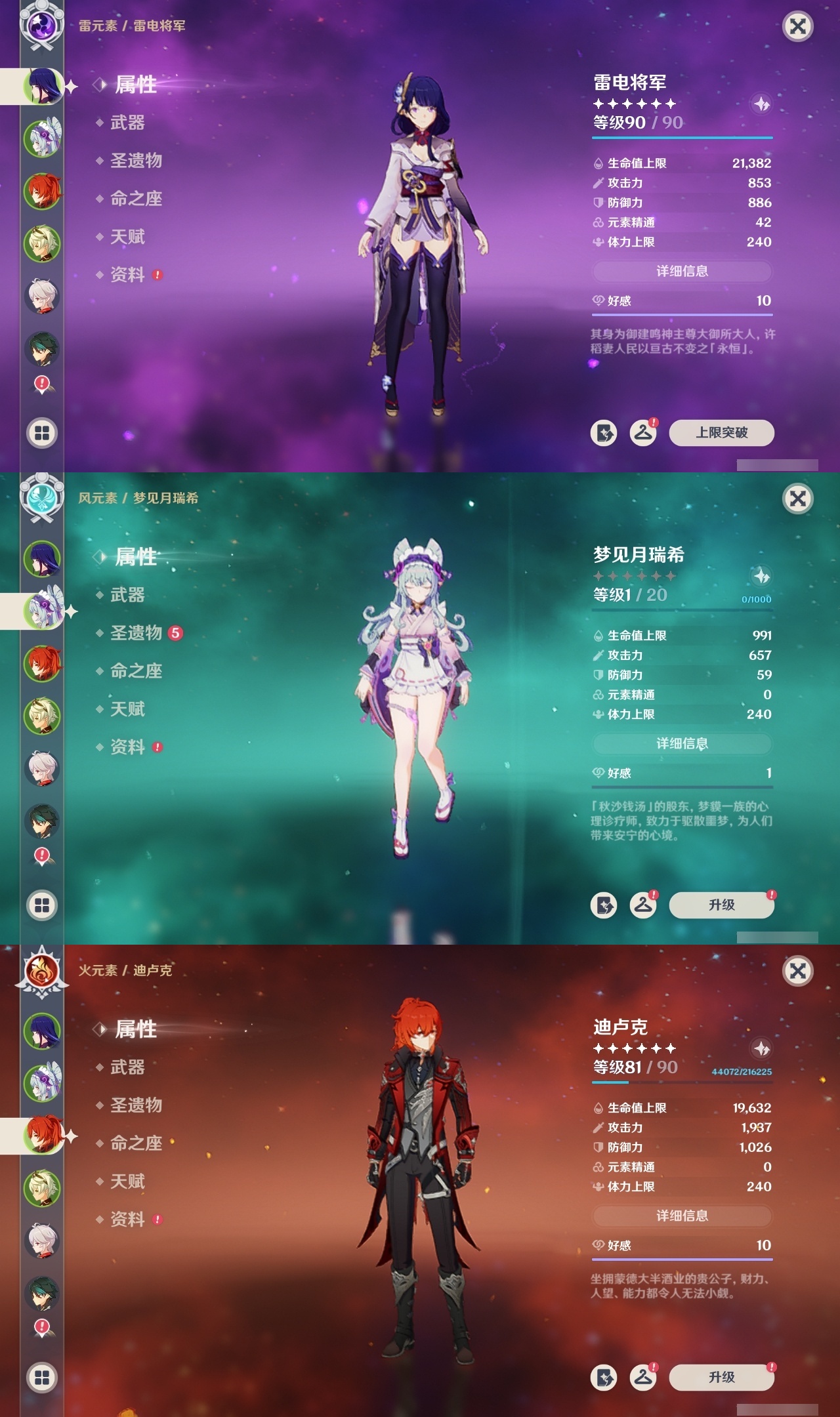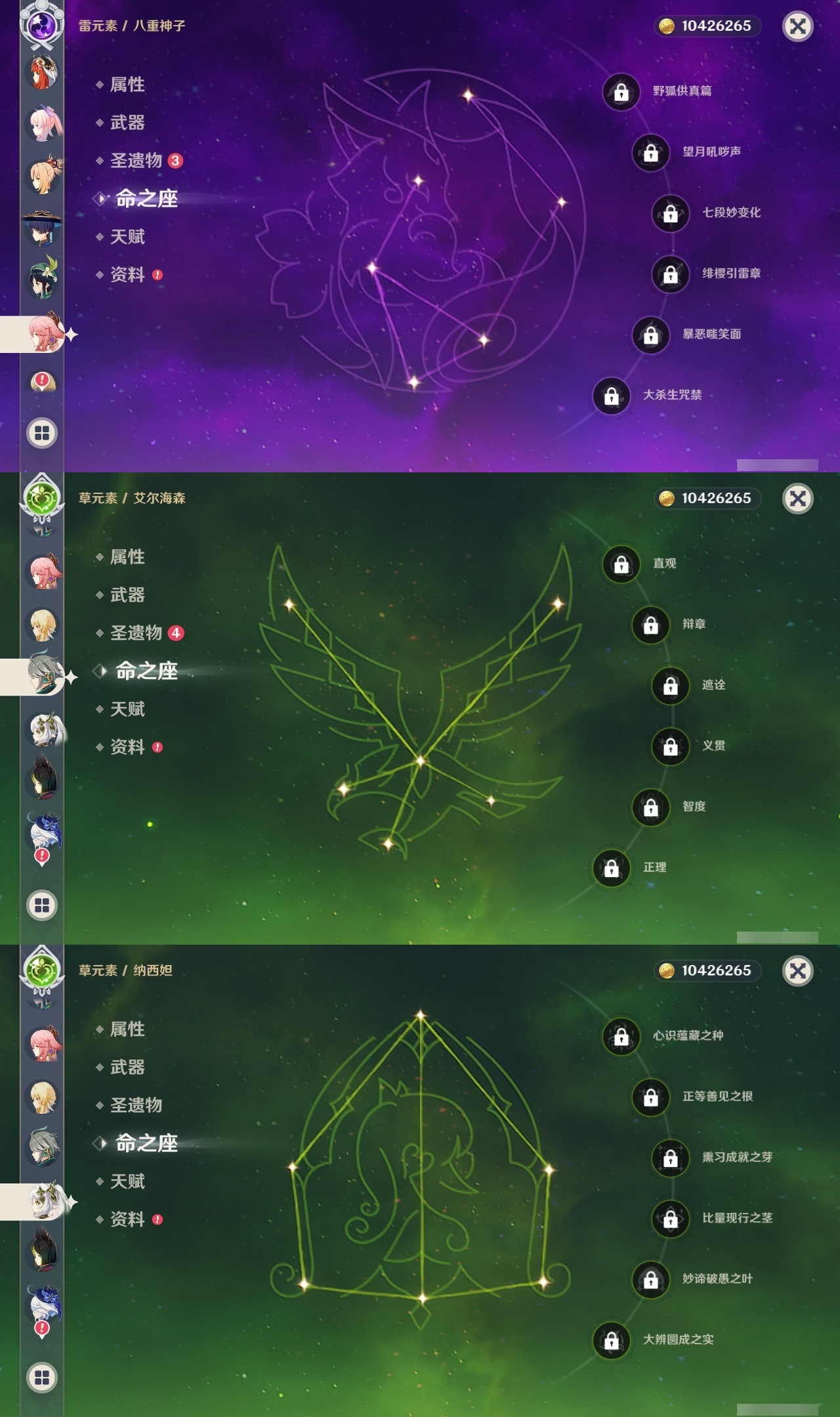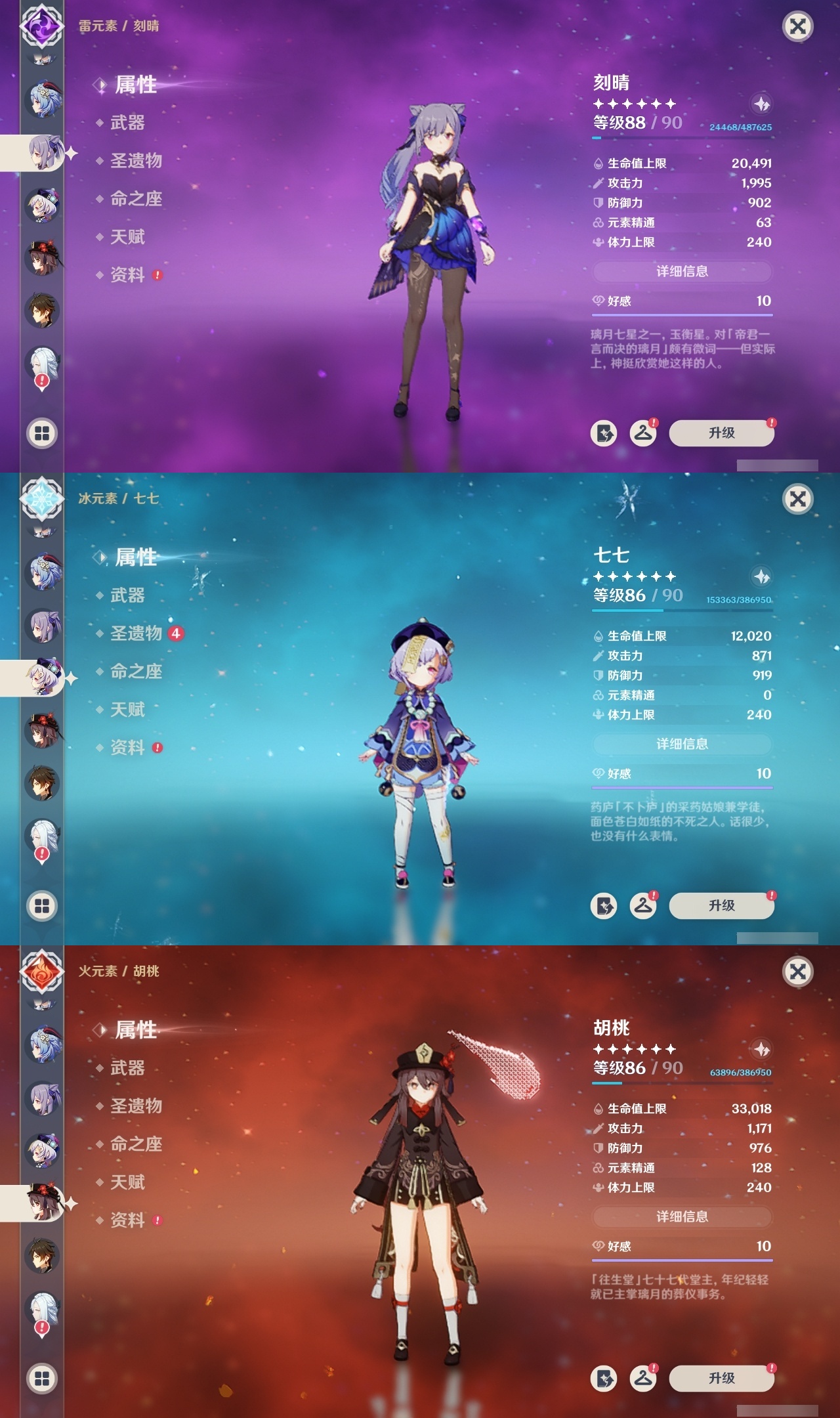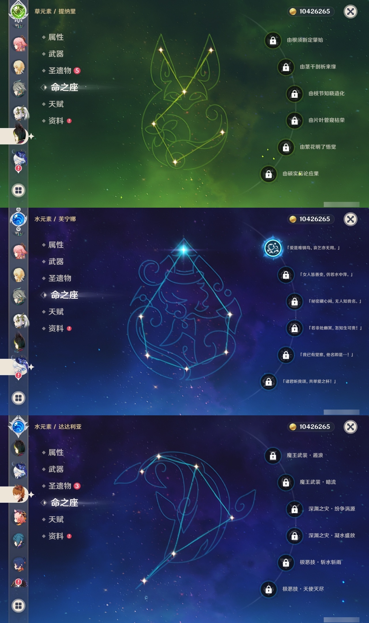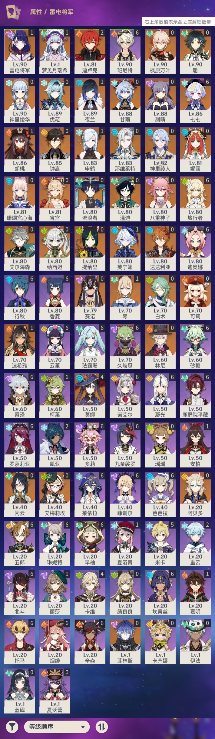 【原神】【lyys8769】冒险等级:59,五星数量:57,五星角色:七七 6命莫娜 4命迪卢克 2命迪希雅 1命梦见月瑞希 1命芙宁娜 1命胡桃 1命雷电将军 1命琴 1命申鹤 1命夜兰 1命艾梅莉埃珊瑚宫心海白术神里绫华温迪宵宫优菈钟离达达利亚八重神子神里绫人林尼阿贝多那维莱特提纳里闲云赛诺妮露纳西妲菲林斯艾尔海森流浪者枫原万叶甘雨魈可莉刻晴__五星武器:波乱月白经津 2精若水 2精苇海信标万世流涌大典静水流涌之辉裁叶萃光阿莫斯之弓和璞鸢护摩之杖磐岩结绿天空之傲天空之卷天空之刃无工之剑雾切之回光薙草之稻光息灾神乐之真意圣显之钥__四星角色:班尼特 6命行秋 6命九条裟罗 6命香菱 6命久岐忍 6命鹿野院平藏 6命珐露珊 6命凝光 6命迪奥娜 6命砂糖 6命莱依拉 6命坎蒂丝 6命多莉 6命柯莱 6命芭芭拉 6命云堇 6命早柚 6命托马 6命五郎 6命烟绯 6命辛焱 6命诺艾尔 6命罗莎莉亚 6命雷泽 6命菲谢尔 6命北斗 6命琳妮特 6命米卡 5命卡维 4命重云 2命夏洛蒂 1命嘉明 1命卡齐娜绮良良瑶瑶蓝砚夏沃蕾伊法