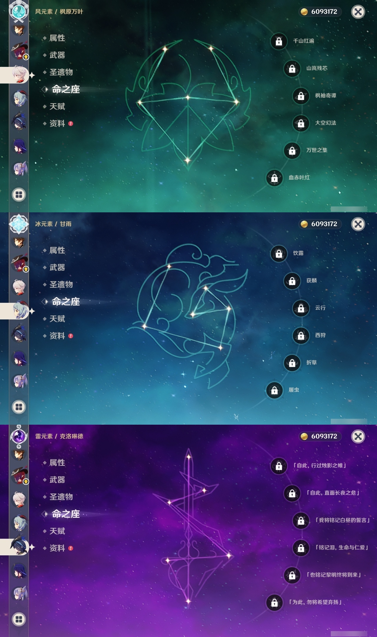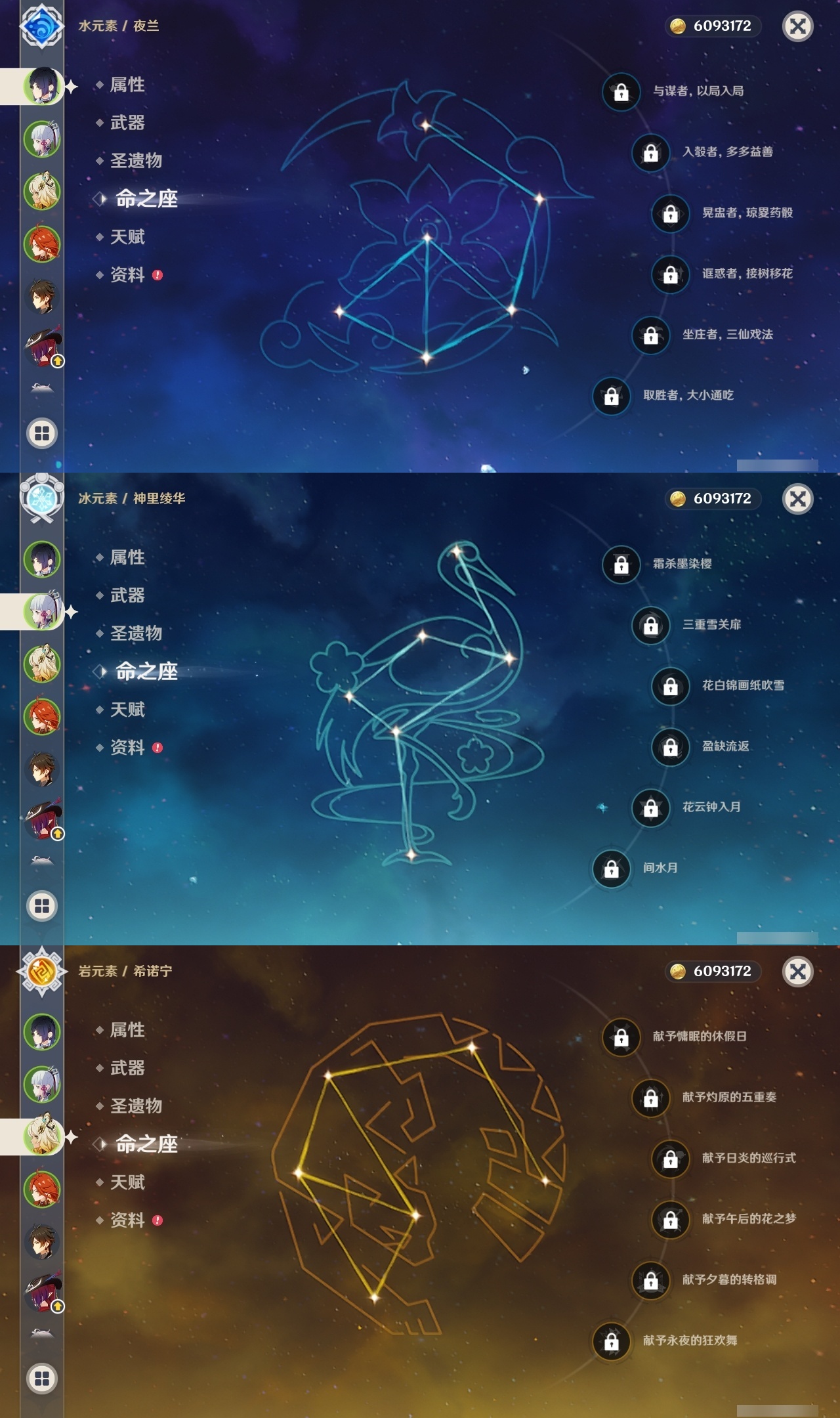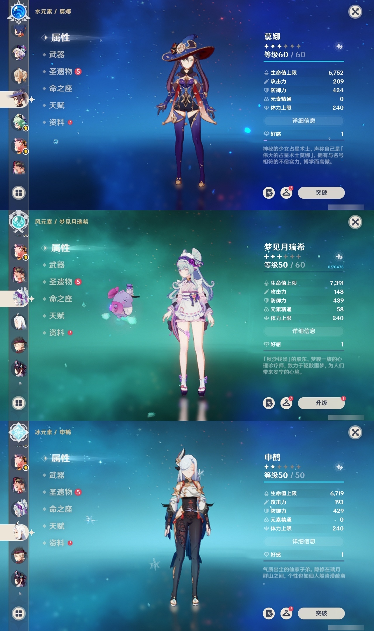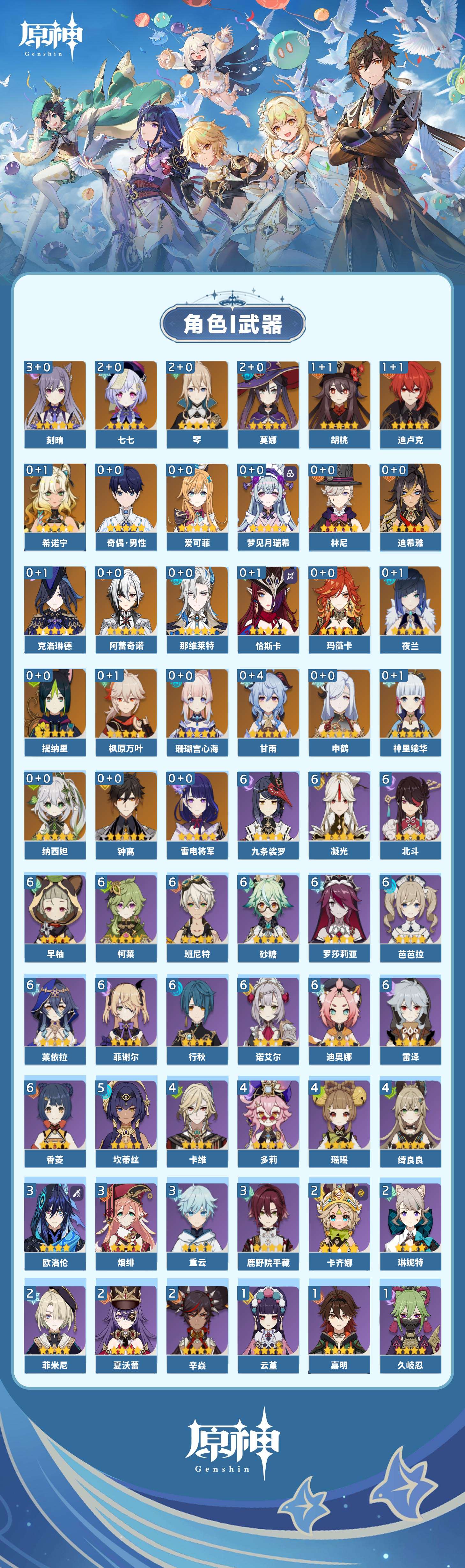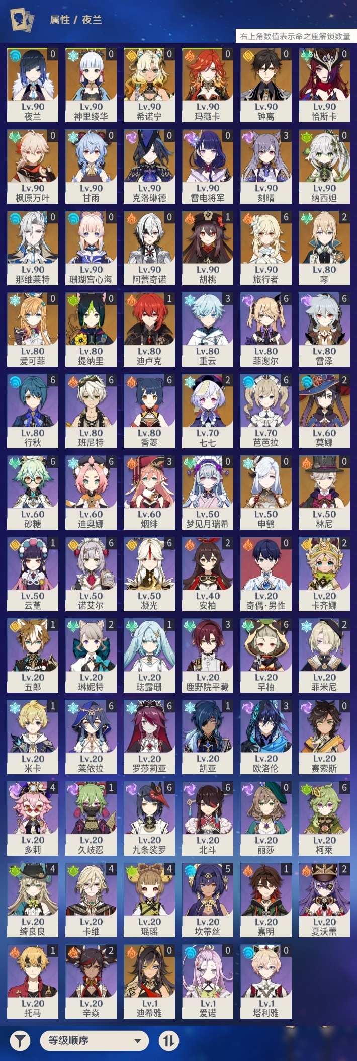 【原神】【lyys8779】冒险等级:60,五星数量:39,五星角色:刻晴 3命莫娜 2命七七 2命琴 2命迪卢克 1命胡桃 1命珊瑚宫心海希诺宁神里绫华恰斯卡玛薇卡迪希雅钟离梦见月瑞希申鹤林尼那维莱特夜兰提纳里爱可菲阿蕾奇诺纳西妲枫原万叶甘雨克洛琳德雷电将军__五星武器:阿莫斯之弓 4精岩峰巡歌星鹫赤羽裁叶萃光苍古自由之誓风鹰剑和璞鸢护摩之杖狼的末路雾切之回光若水赦罪__四星角色:班尼特 6命行秋 6命九条裟罗 6命香菱 6命凝光 6命迪奥娜 6命砂糖 6命莱依拉 6命柯莱 6命芭芭拉 6命早柚 6命诺艾尔 6命罗莎莉亚 6命雷泽 6命菲谢尔 6命北斗 6命坎蒂丝 5命绮良良 4命瑶瑶 4命多莉 4命卡维 4命鹿野院平藏 3命欧洛伦 3命烟绯 3命重云 3命卡齐娜 2命辛焱 2命菲米尼 2命琳妮特 2命夏沃蕾 2命久岐忍 1命珐露珊 1命米卡 1命云堇 1命托马 1命五郎 1命嘉明 1命奇偶·男性塔利雅爱诺赛索斯