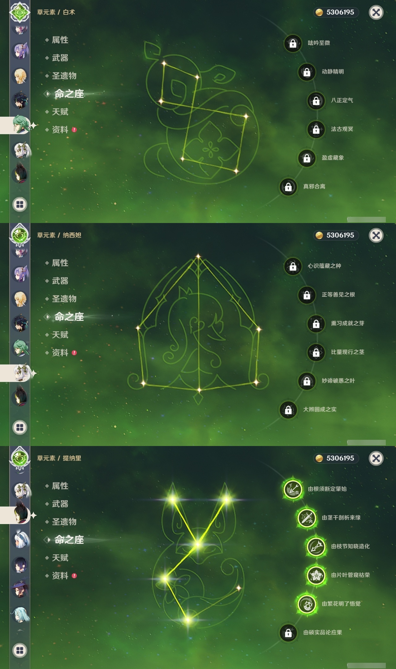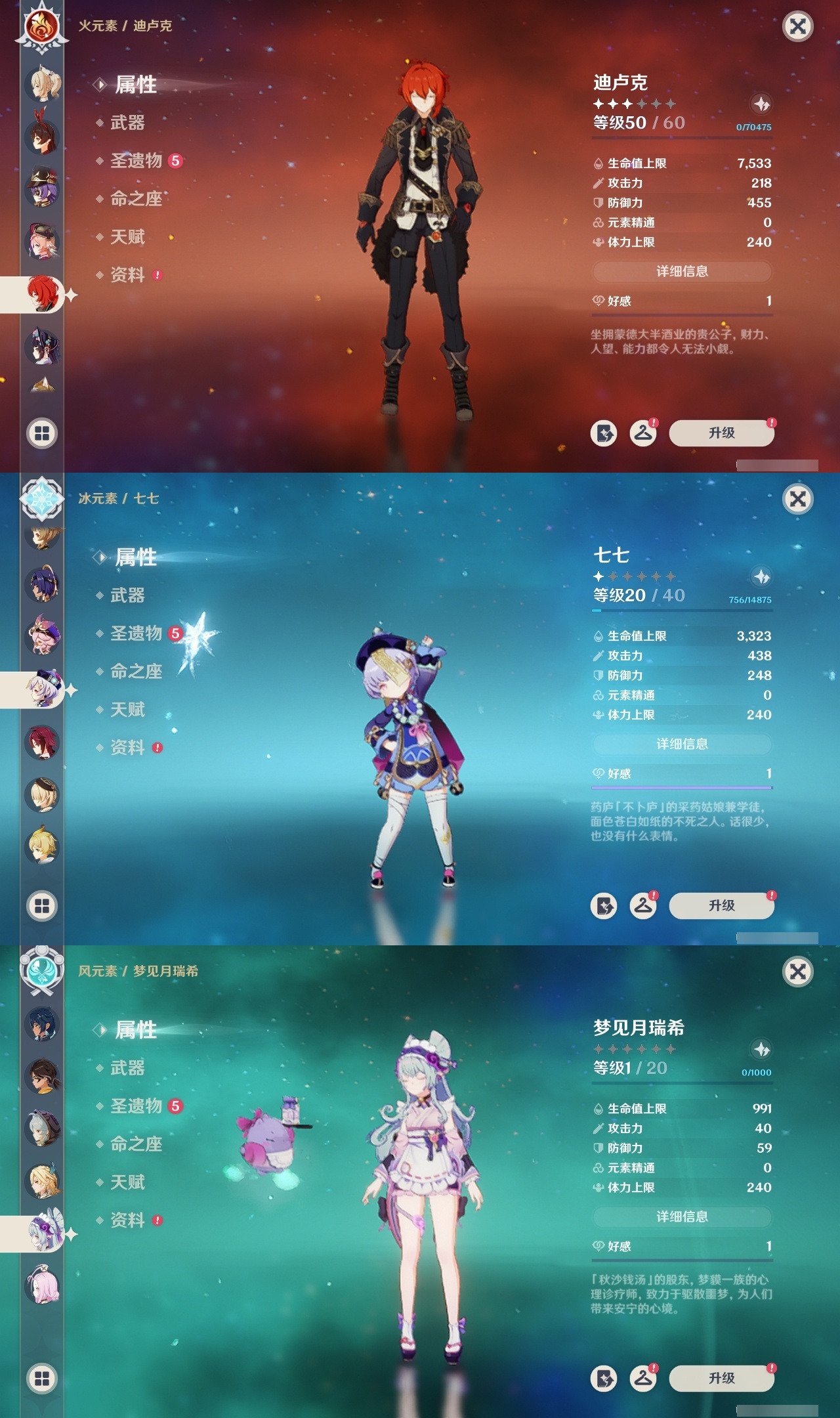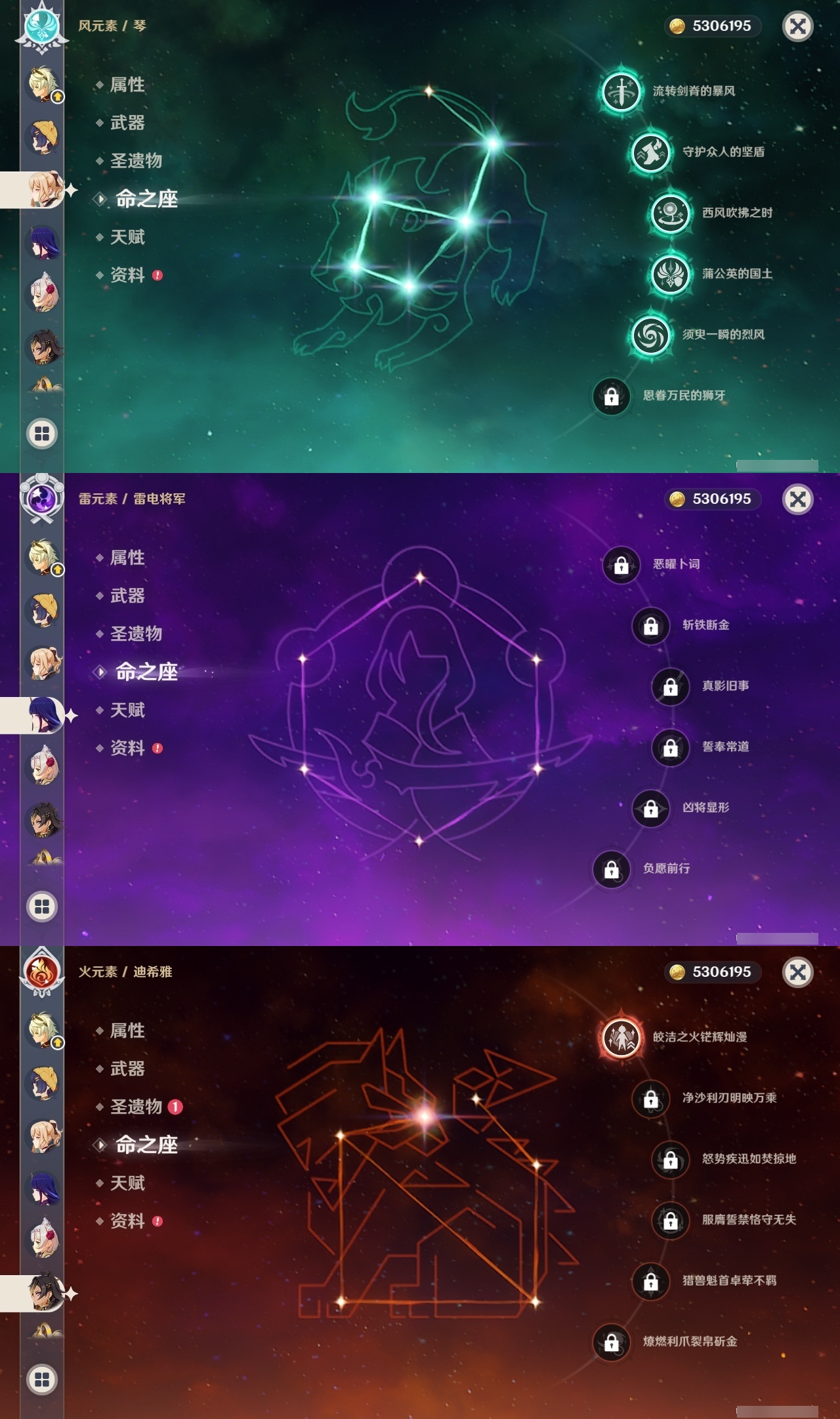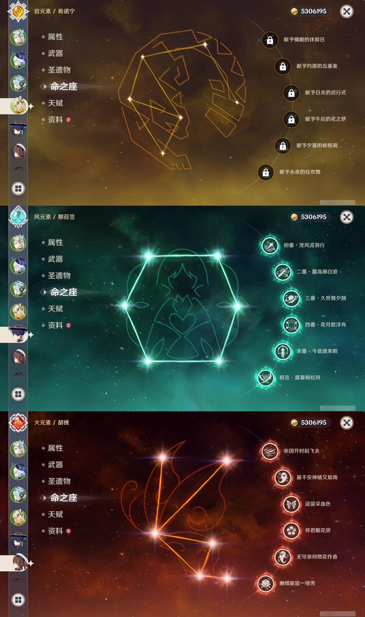 【原神】满命,冒险等级:60,五星数量:34,五星角色:那维莱特 6命芙宁娜 6命胡桃 6命莫娜 6命流浪者 6命琴 5命提纳里 5命神里绫华 3命夜兰 3命闲云 2命刻晴 2命七七 2命迪希雅 1命魈 1命玛拉妮基尼奇希诺宁白术茜特菈莉钟离梦见月瑞希千织伊涅芙纳西妲迪卢克枫原万叶雷电将军__五星武器:万世流涌大典静水流涌之辉图莱杜拉的回忆护摩之杖四风原典贯虹之槊若水__四星角色:卡齐娜 6命班尼特 6命行秋 6命香菱 6命久岐忍 6命鹿野院平藏 6命珐露珊 6命凝光 6命砂糖 6命瑶瑶 6命莱依拉 6命米卡 6命坎蒂丝 6命多莉 6命柯莱 6命芭芭拉 6命早柚 6命烟绯 6命重云 6命辛焱 6命诺艾尔 6命罗莎莉亚 6命菲谢尔 6命北斗 6命菲米尼 6命琳妮特 6命夏洛蒂 6命嘉明 6命迪奥娜 5命绮良良 5命云堇 5命九条裟罗 4命雷泽 4命赛索斯 4命卡维 3命夏沃蕾 3命伊安珊 3命托马 2命五郎 2命塔利雅 2命欧洛伦 1命蓝砚 1命爱诺100抽 100抽
