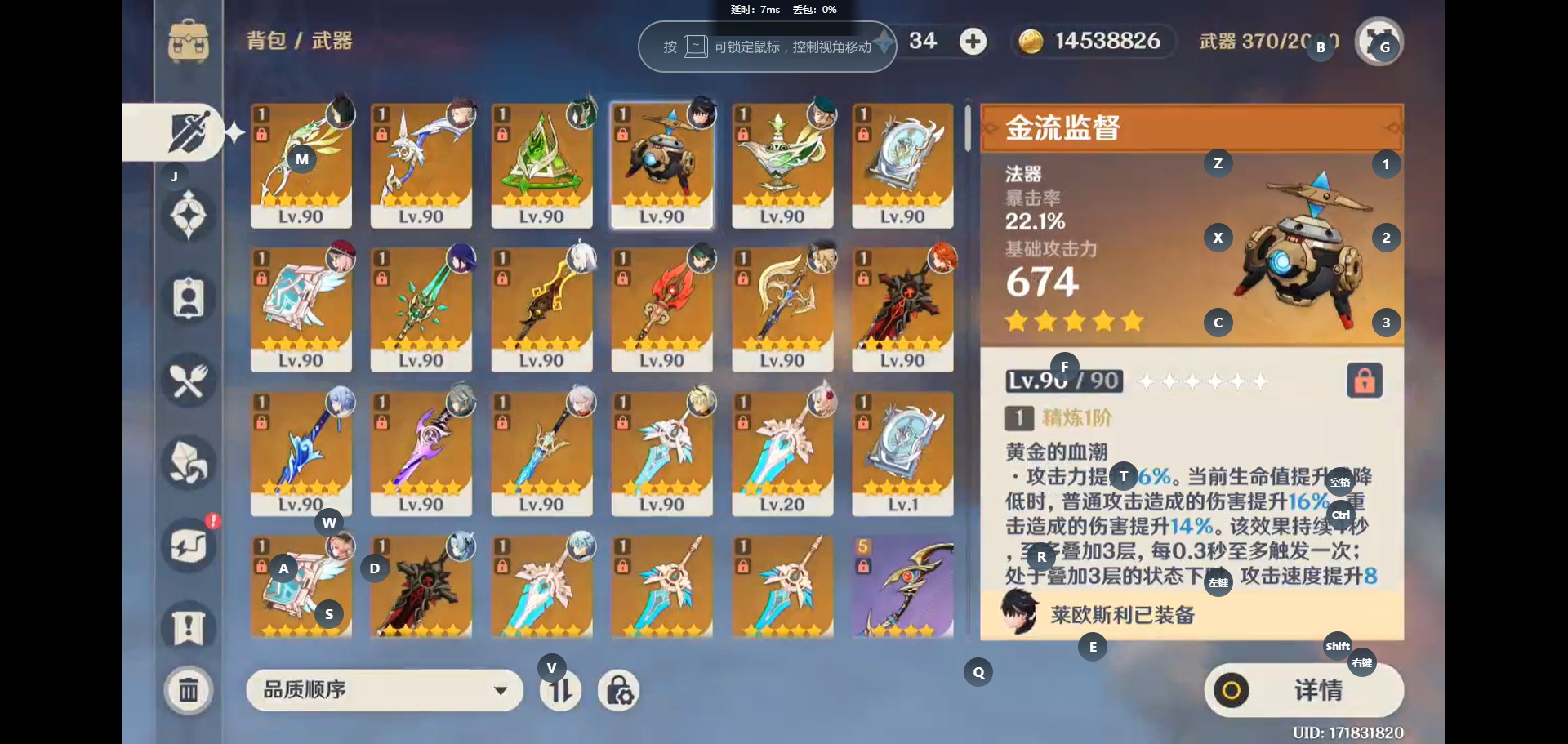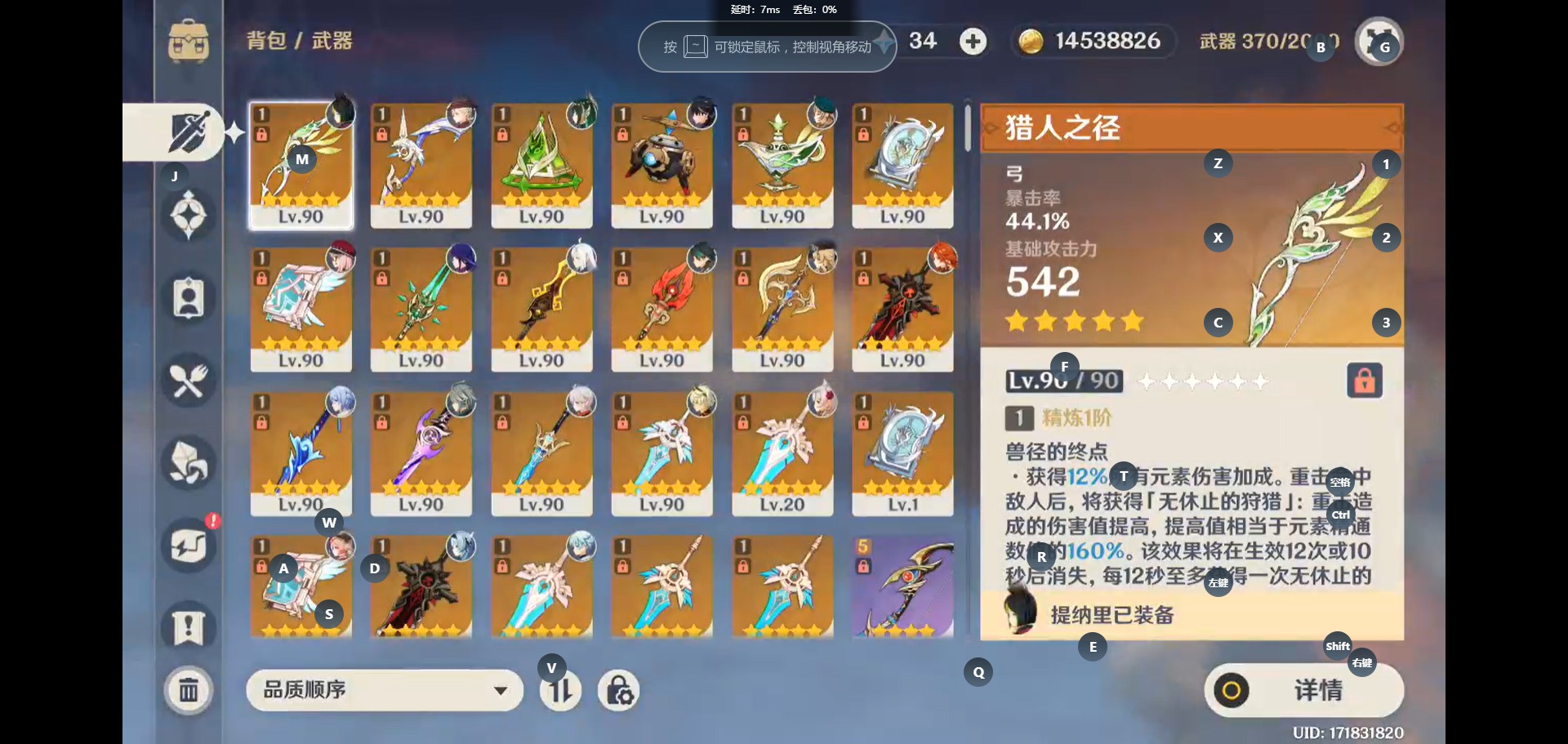 [14340051]【总黄数】:57 【冒险等级】:60 【6命金色角色】:满命迪卢克满命七七 【4命金色角色】:四命魈四命琴 【3命金色角色】:三命提纳里 【2命金色角色】:二命芙宁娜二命迪希雅二命莫娜 【1命金色角色】:一命玛薇卡一命希诺宁一命那维莱特一命艾尔海森一命钟离一命达达利亚一命刻晴 【0命金色角色】:奈芙尔玛拉妮闲云娜维娅莱欧斯利林尼白术流浪者纳西妲妮露赛诺夜兰神里绫人八重神子申鹤珊瑚宫心海雷电将军宵宫神里绫华枫原万叶优菈甘雨阿贝多可莉温迪 【1精武器】:真语秘匣裁断金流监督千夜浮梦波乱月白经津雾切之回光苍古自由之誓护摩之杖和璞鸢阿莫斯之弓贯虹之槊猎人之径狼的末路天空之傲天空之卷天空之刃四风原典