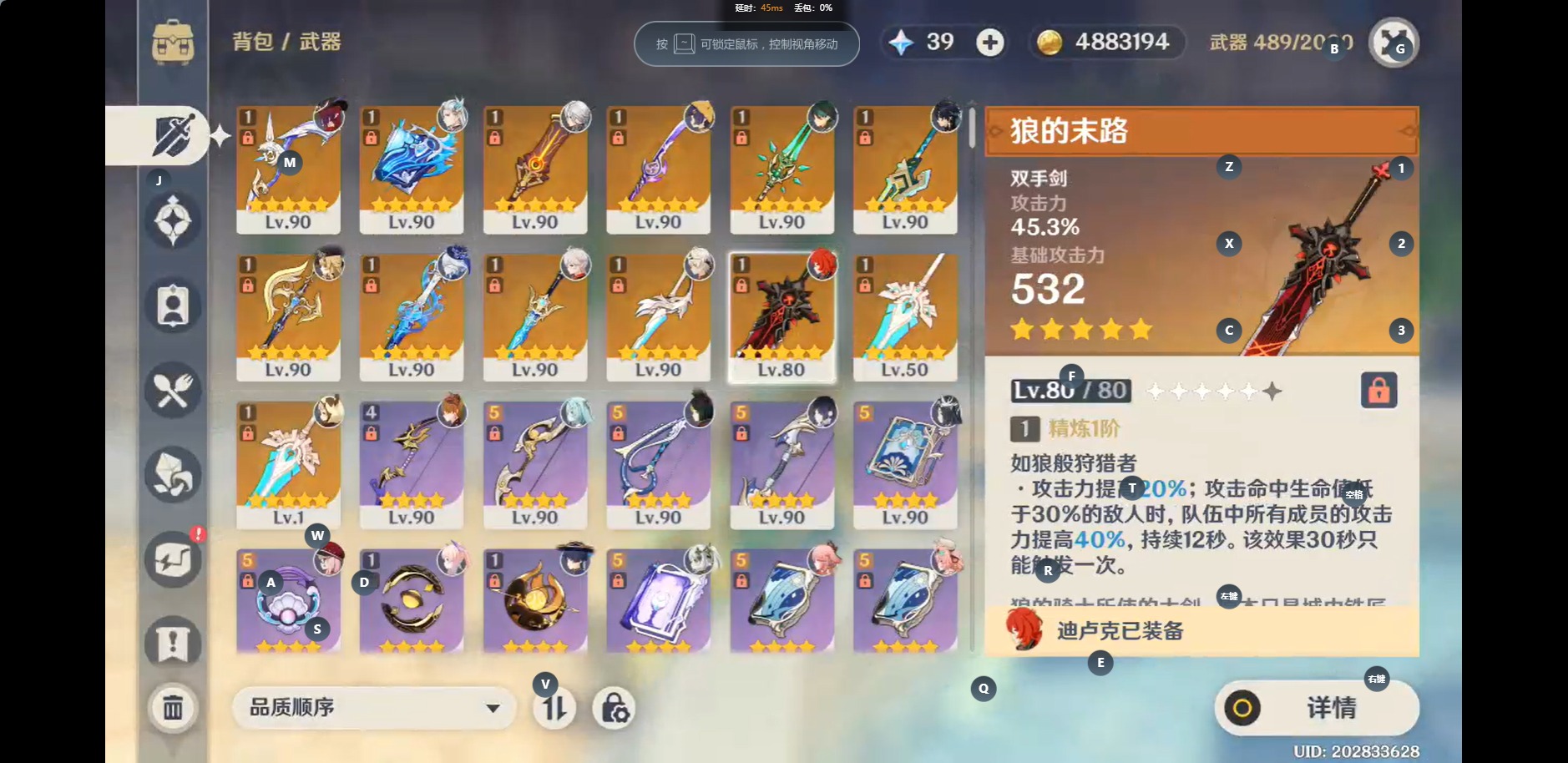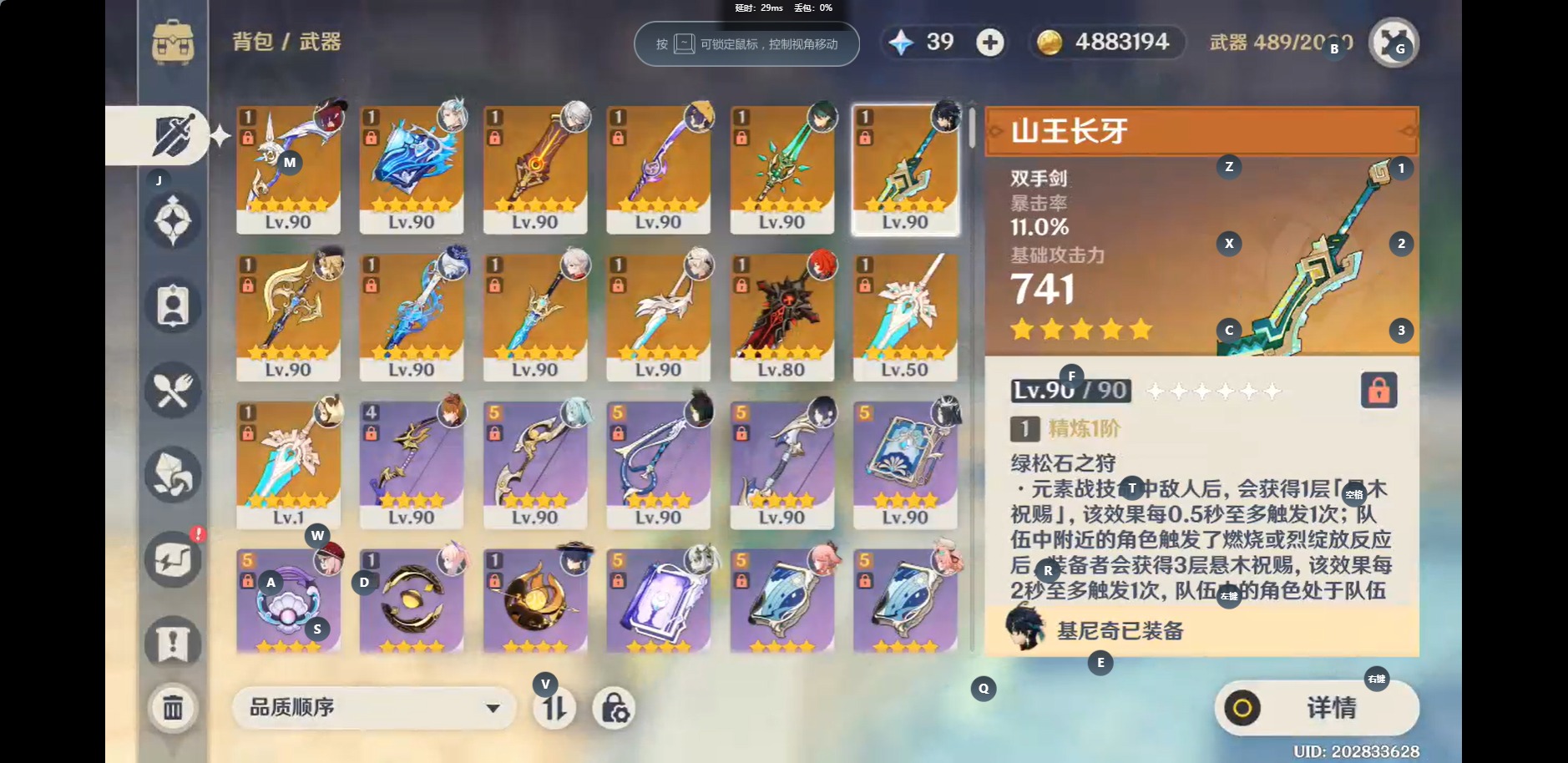 [14354211]【总黄数】:45 【冒险等级】:60 【5命金色角色】:五命提纳里五命七七 【2命金色角色】:二命迪卢克二命琴 【1命金色角色】:一命流浪者一命纳西妲一命魈一命刻晴一命莫娜 【0命金色角色】:菈乌玛瓦雷莎梦见月瑞希恰斯卡基尼奇玛拉妮阿蕾奇诺娜维娅芙宁娜那维莱特白术艾尔海森妮露赛诺夜兰神里绫人八重神子珊瑚宫心海雷电将军枫原万叶钟离达达利亚可莉 【1精武器】:山王长牙裁断静水流涌之辉万世流涌大典赤沙之杖薙草之稻光苍古自由之誓和璞鸢阿莫斯之弓狼的末路风鹰剑天空之傲