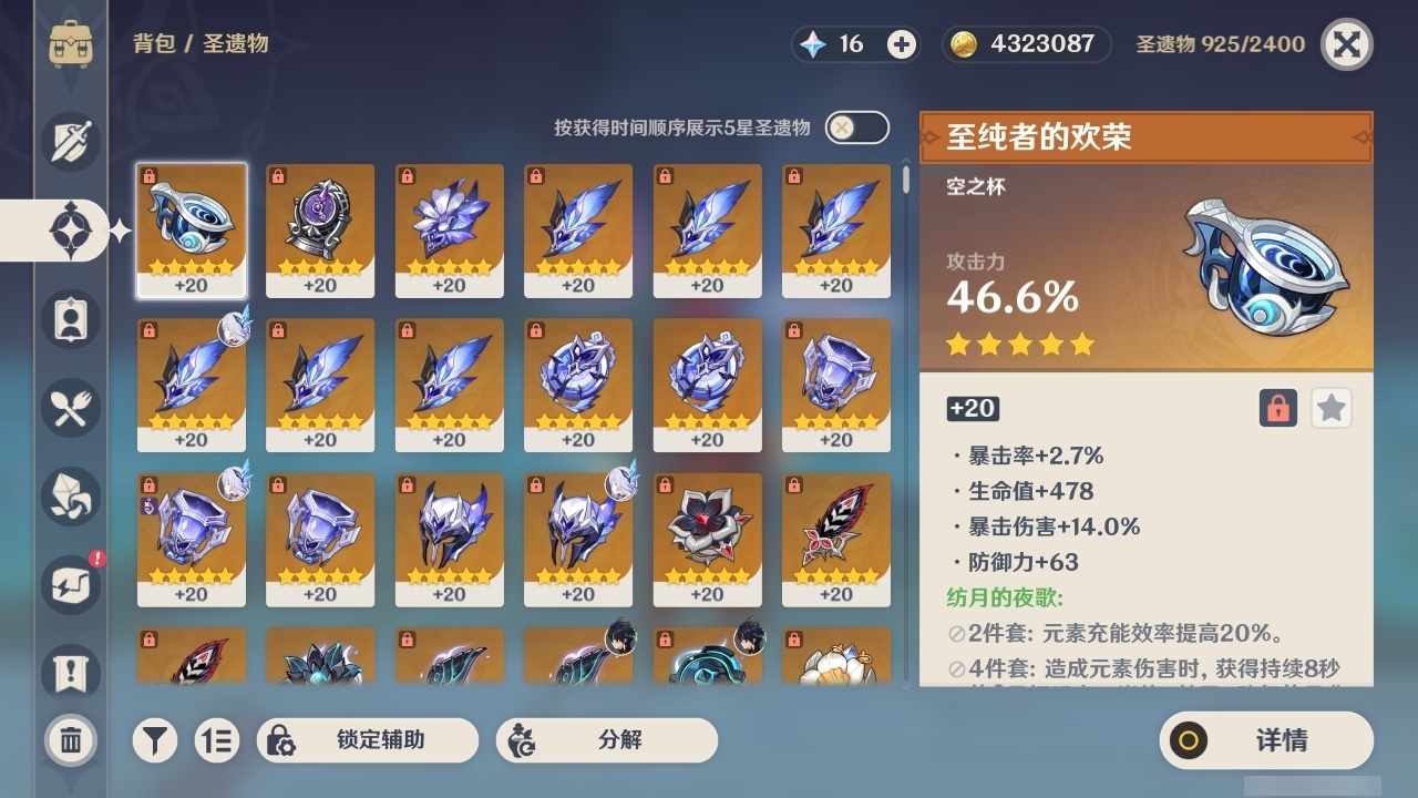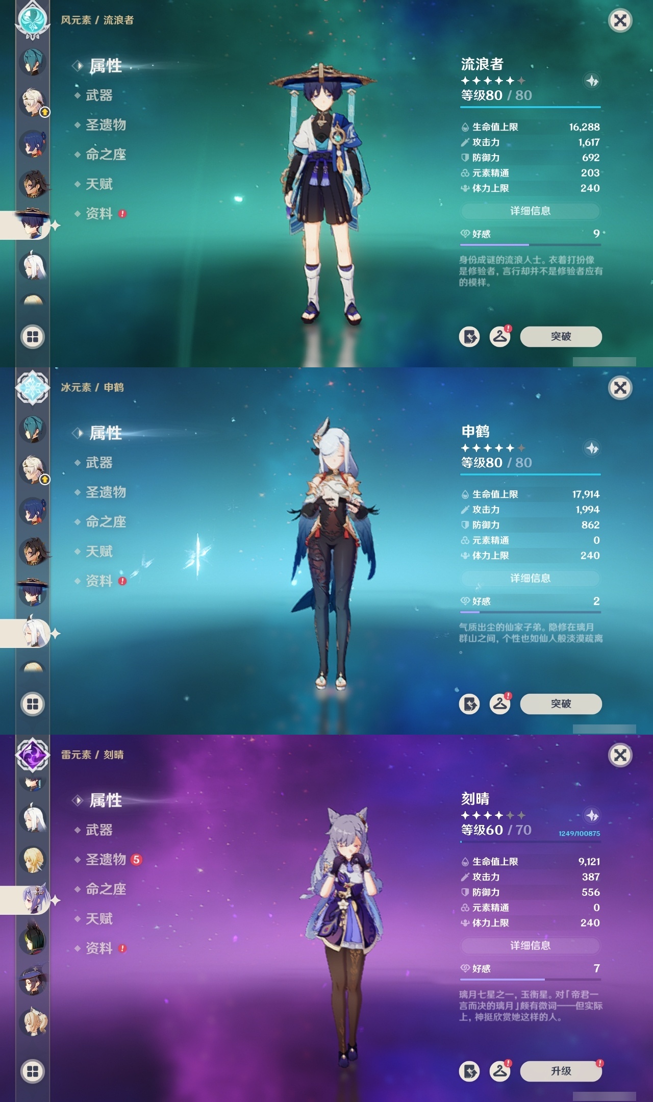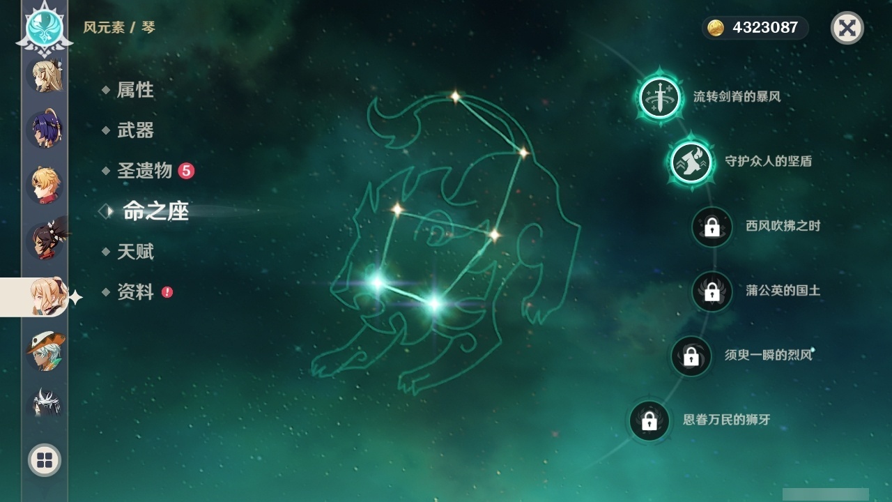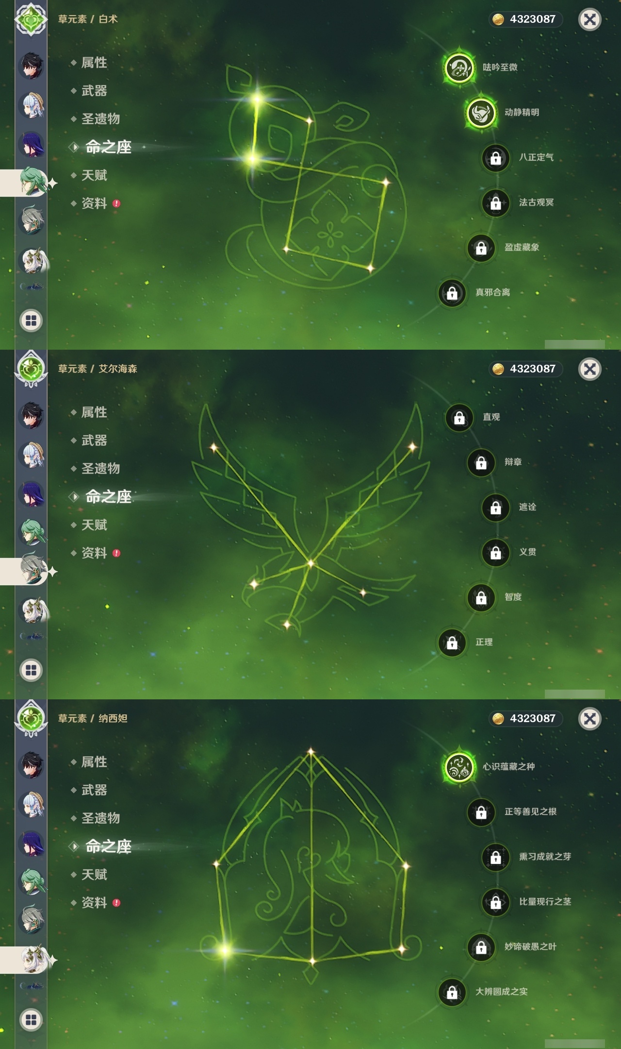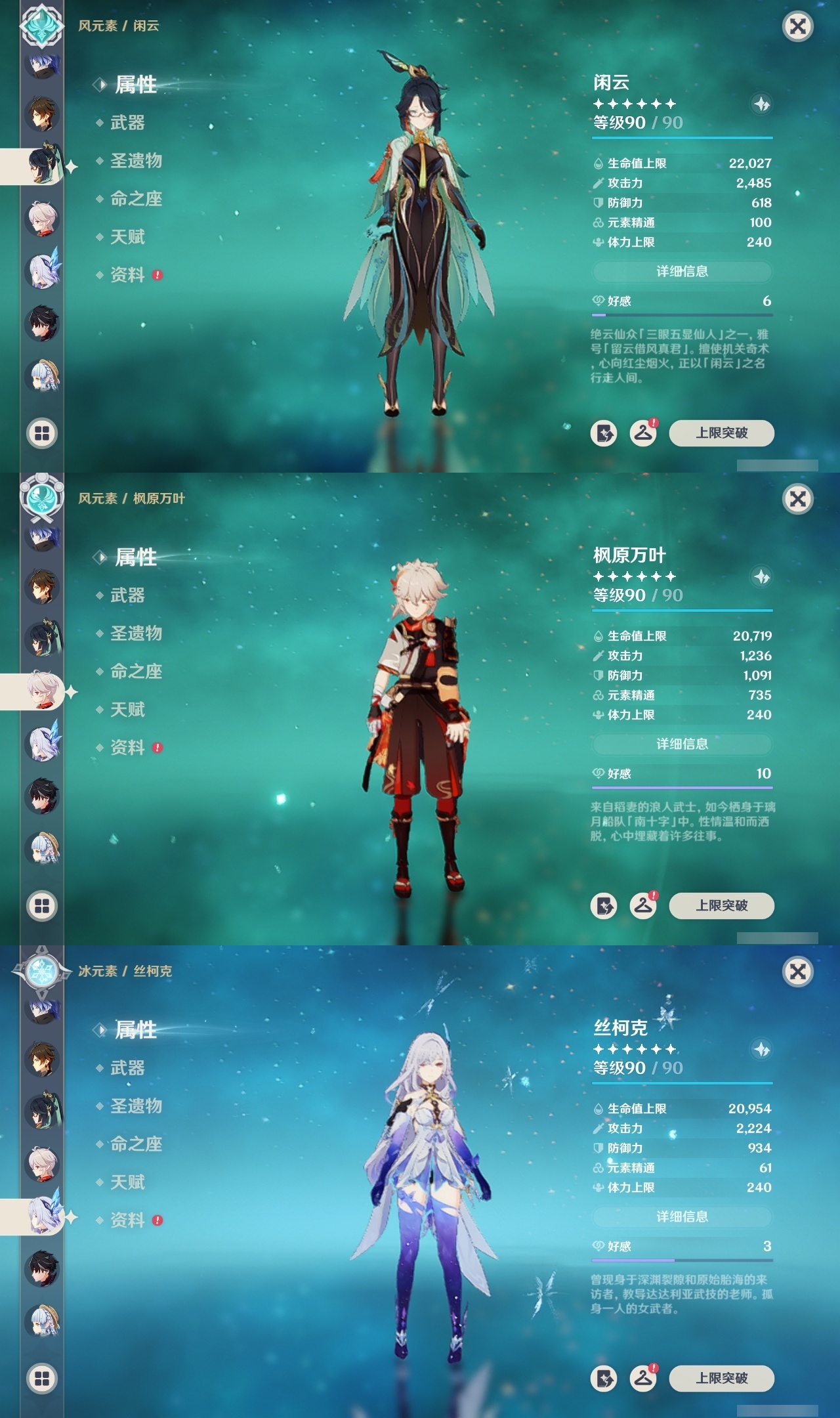 【原神】满命,冒险等级:60,五星数量:42,五星角色:迪卢克 6命魈 6命夜兰 6命提纳里 3命白术 2命刻晴 2命琴 2命七七 1命纳西妲 1命莫娜基尼奇珊瑚宫心海神里绫华迪希雅钟离申鹤神里绫人林尼那维莱特莱欧斯利芙宁娜闲云丝柯克菲林斯艾尔海森流浪者枫原万叶雷电将军__五星武器:和璞鸢 2精裁叶萃光 2精柔灯挽歌冲浪时光岩峰巡歌碧落之珑金流监督静水流涌之辉血染荒城阿莫斯之弓护摩之杖天空之卷天空之翼若水__四星角色:班尼特 6命行秋 6命香菱 6命久岐忍 6命珐露珊 6命凝光 6命砂糖 6命瑶瑶 6命米卡 6命坎蒂丝 6命多莉 6命芭芭拉 6命云堇 6命早柚 6命辛焱 6命罗莎莉亚 6命菲谢尔 6命北斗 6命赛索斯 6命迪奥娜 5命莱依拉 5命欧洛伦 5命五郎 5命雷泽 5命夏洛蒂 5命绮良良 4命柯莱 4命卡维 4命烟绯 4命诺艾尔 4命琳妮特 3命伊安珊 3命九条裟罗 2命鹿野院平藏 2命托马 2命重云 2命夏沃蕾 2命伊法 2命蓝砚 1命菲米尼 1命爱诺 1命卡齐娜嘉明