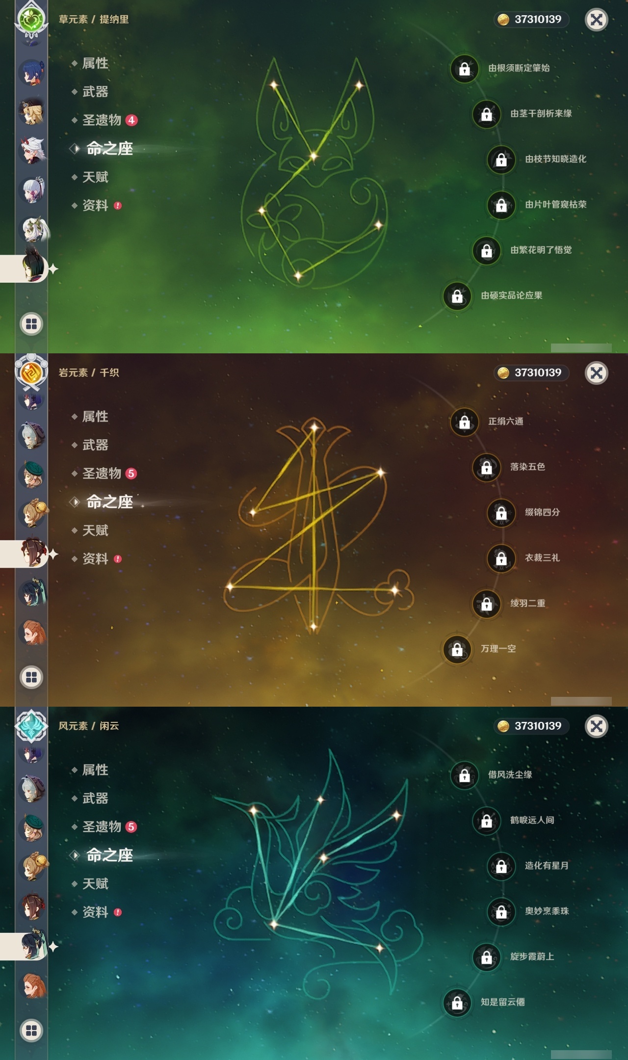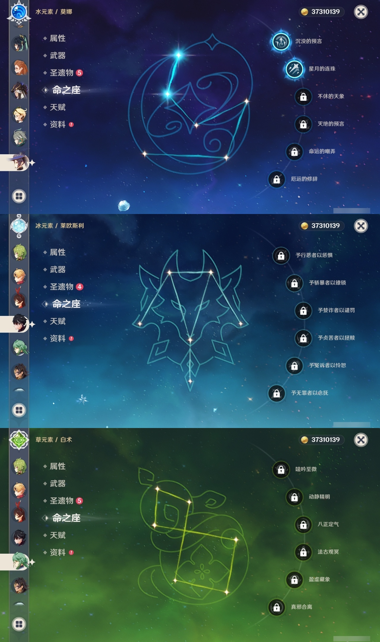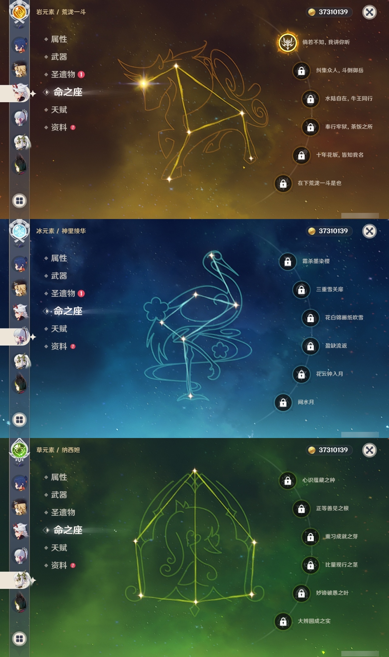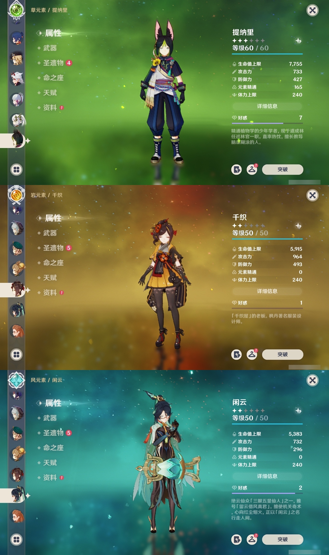 【原神】【lyys8919】冒险等级:60,五星数量:42,五星角色:七七 6命琴 5命八重神子 3命达达利亚 2命迪卢克 2命莫娜 2命刻晴 1命荒泷一斗 1命神里绫人 1命艾梅莉埃白术神里绫华温迪玛薇卡优菈迪希雅钟离林尼那维莱特莱欧斯利娜维娅提纳里闲云千织赛诺纳西妲艾尔海森流浪者枫原万叶魈可莉雷电将军__五星武器:阿莫斯之弓四风原典天空之傲天空之脊无工之剑薙草之稻光冬极白星神乐之真意波乱月白经津__四星角色:班尼特 6命行秋 6命香菱 6命鹿野院平藏 6命珐露珊 6命凝光 6命迪奥娜 6命砂糖 6命瑶瑶 6命莱依拉 6命多莉 6命芭芭拉 6命云堇 6命早柚 6命托马 6命五郎 6命烟绯 6命重云 6命辛焱 6命诺艾尔 6命罗莎莉亚 6命雷泽 6命菲谢尔 6命北斗 6命琳妮特 6命久岐忍 5命坎蒂丝 5命柯莱 5命九条裟罗 4命米卡 2命菲米尼 2命卡维 1命嘉明 1命埃洛伊绮良良欧洛伦夏洛蒂夏沃蕾伊法赛索斯